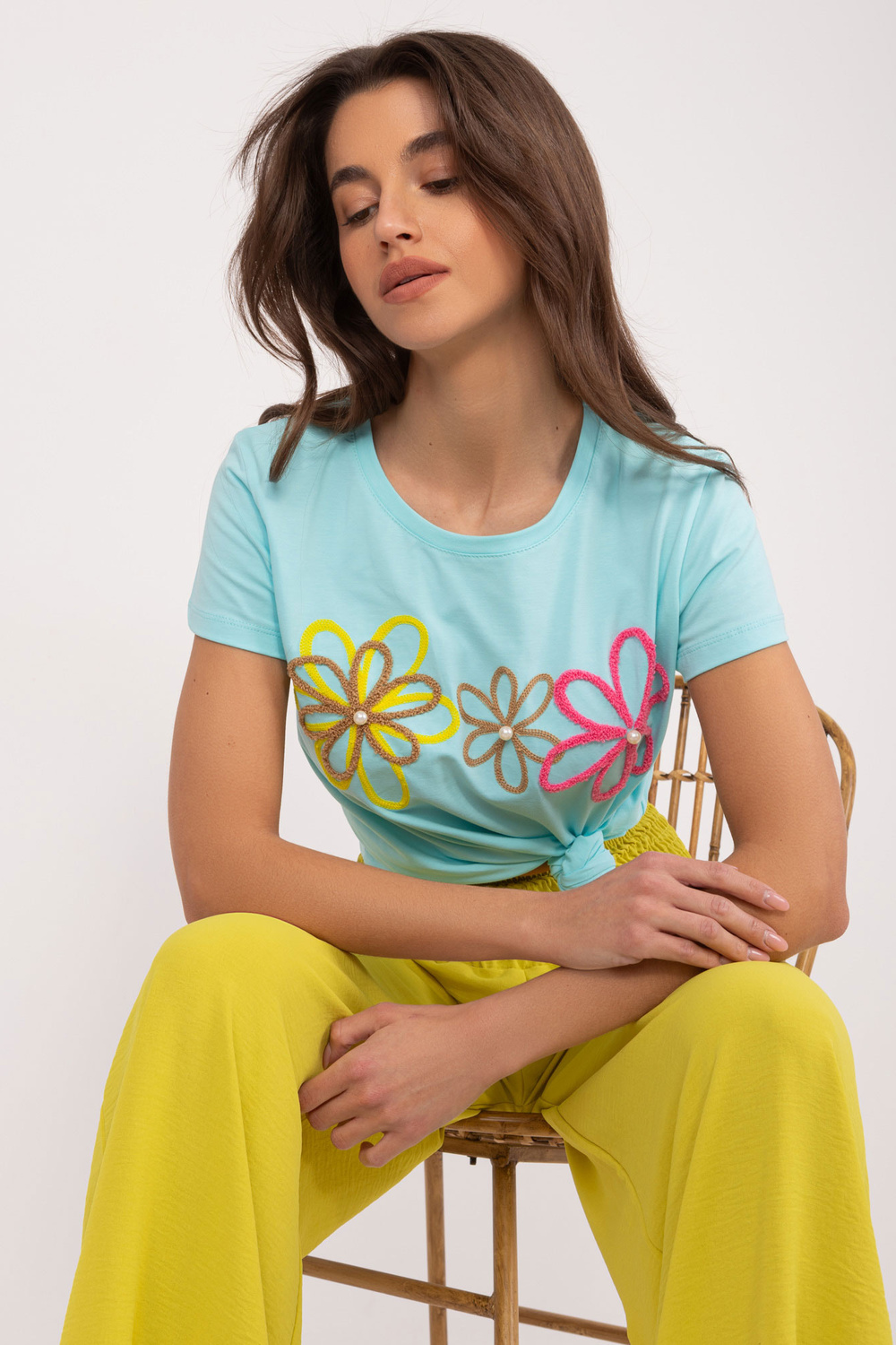 T-krekla izmēri S/M izmērā mērot plakanu: platums zem padusēm - 46 cm, kopējais garums - 62 cm.