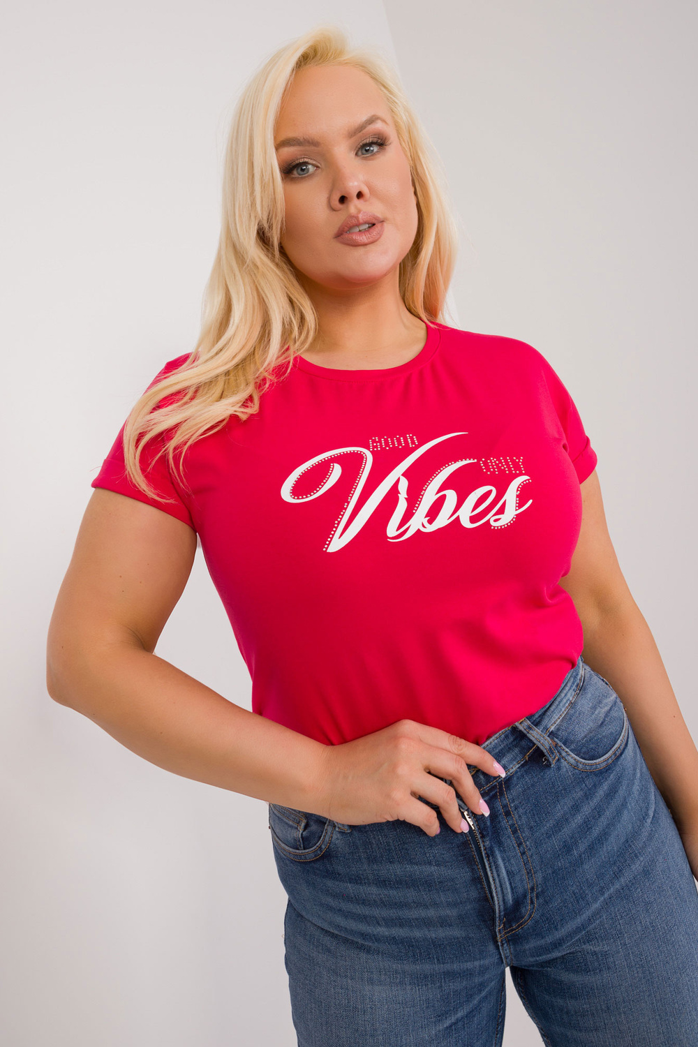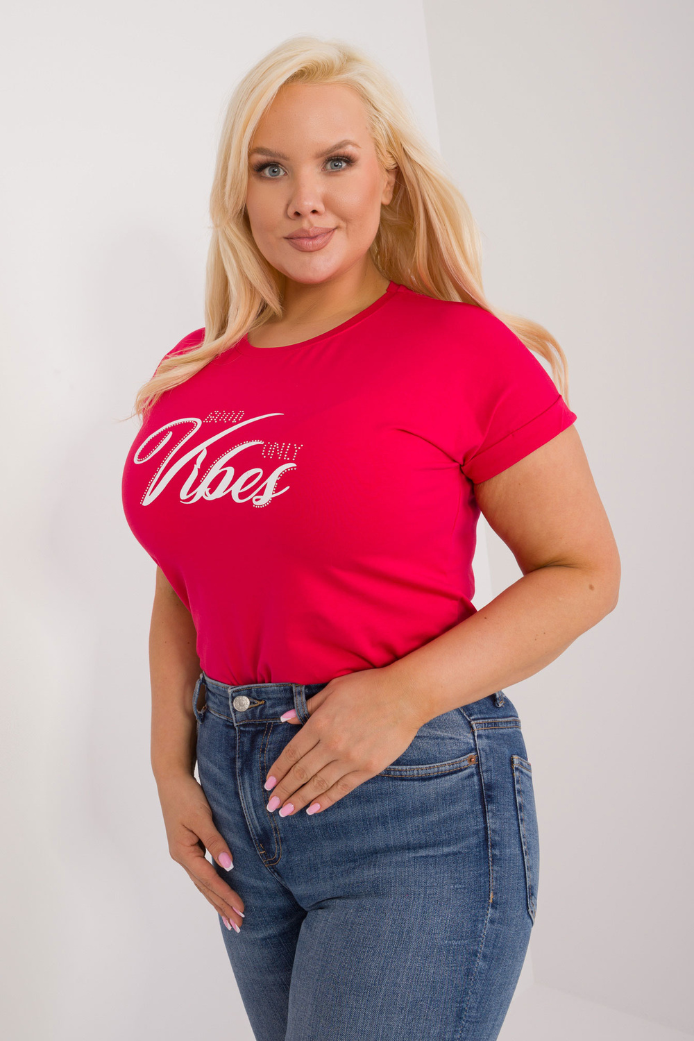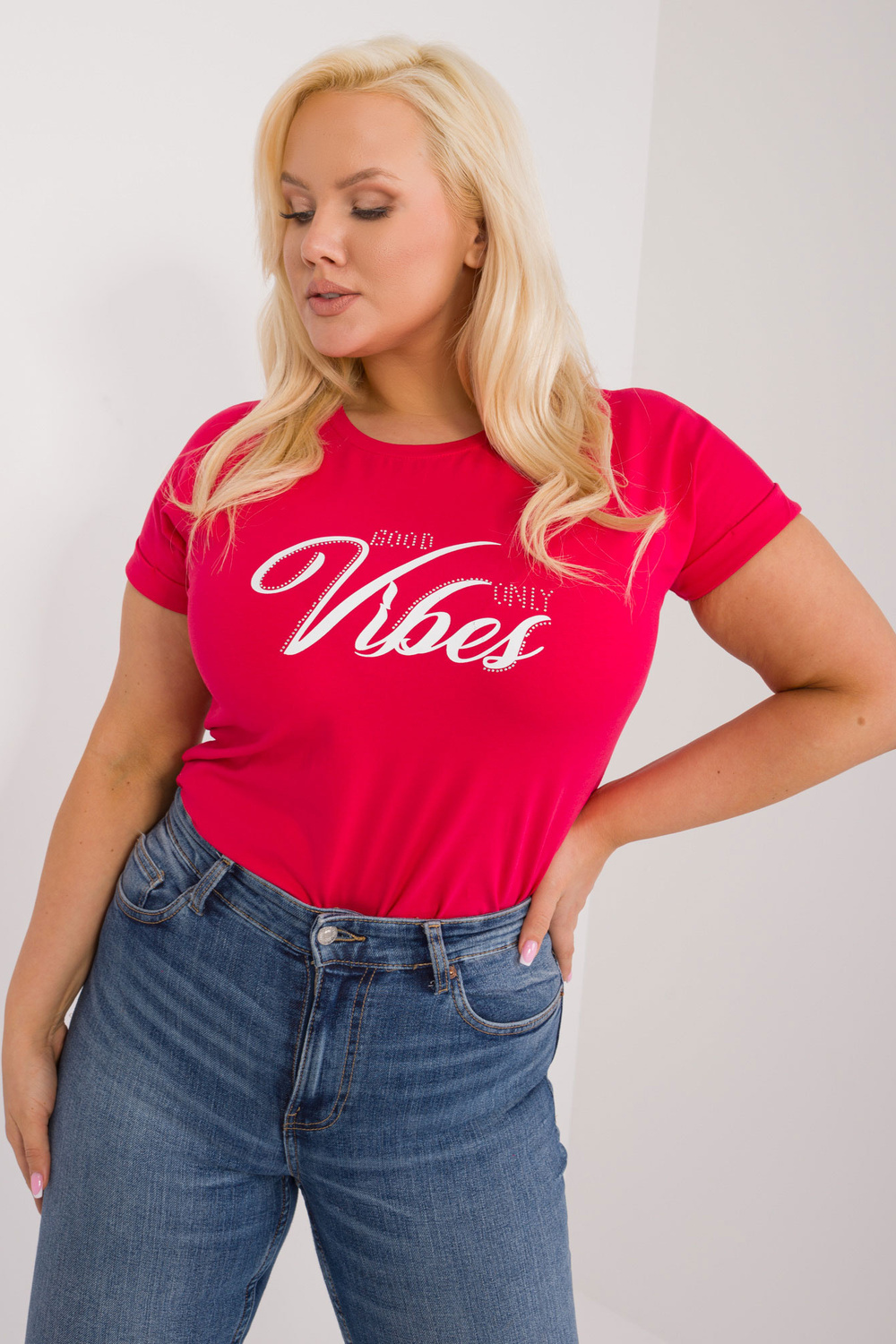 Viena izmēra T-krekla izmēri mērīti plakaniski: paduses platums - 51 cm, kopējais garums - 63 cm.