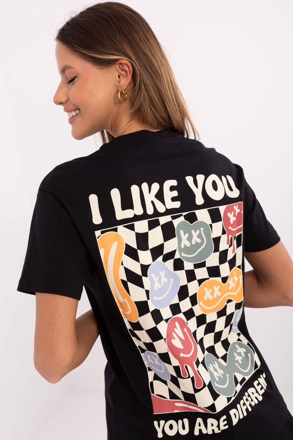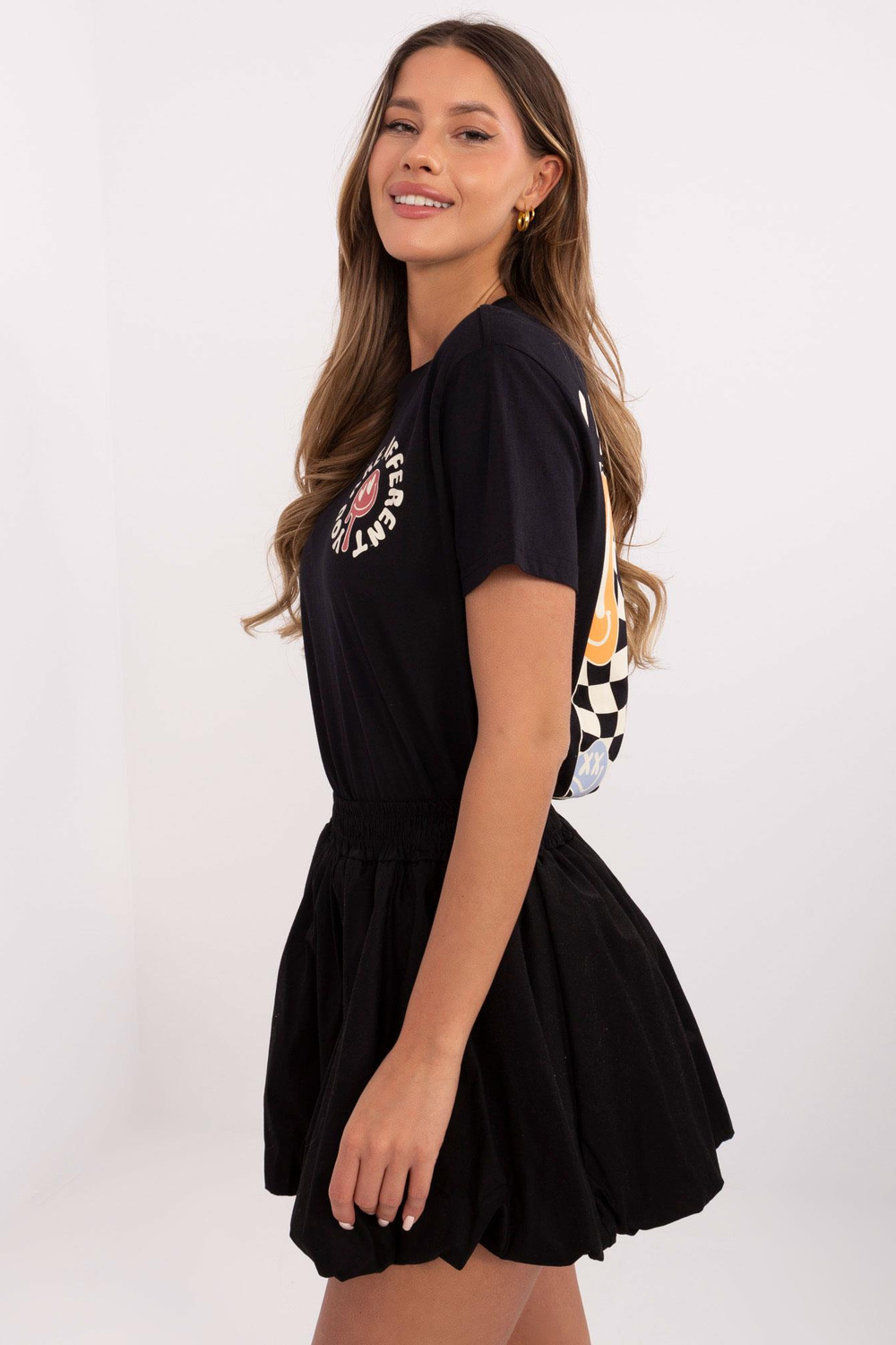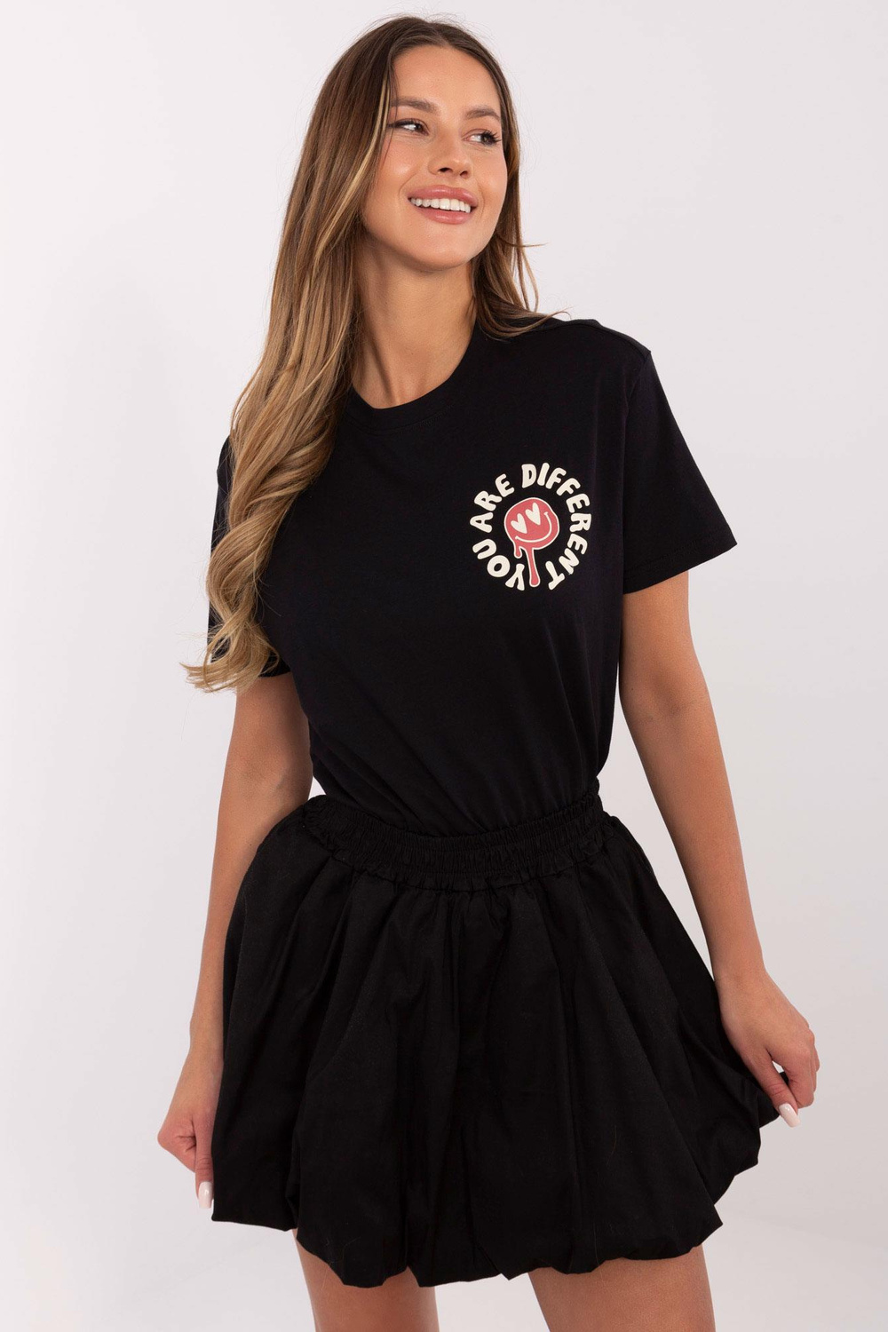 T-krekla izmēri S izmērā, mērot plakanu: platums zem padusēm - 52 cm, piedurknes garums - 20 cm, kopējais garums - 6 cm