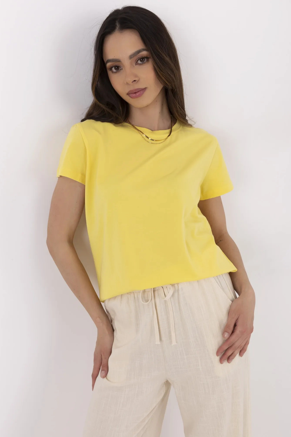 T-krekla izmēri S izmērā, mērot plakanu: platums zem padusēm - 50 cm, piedurknes garums - 16 cm līdz 6 cm.