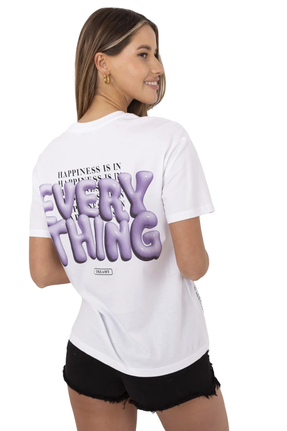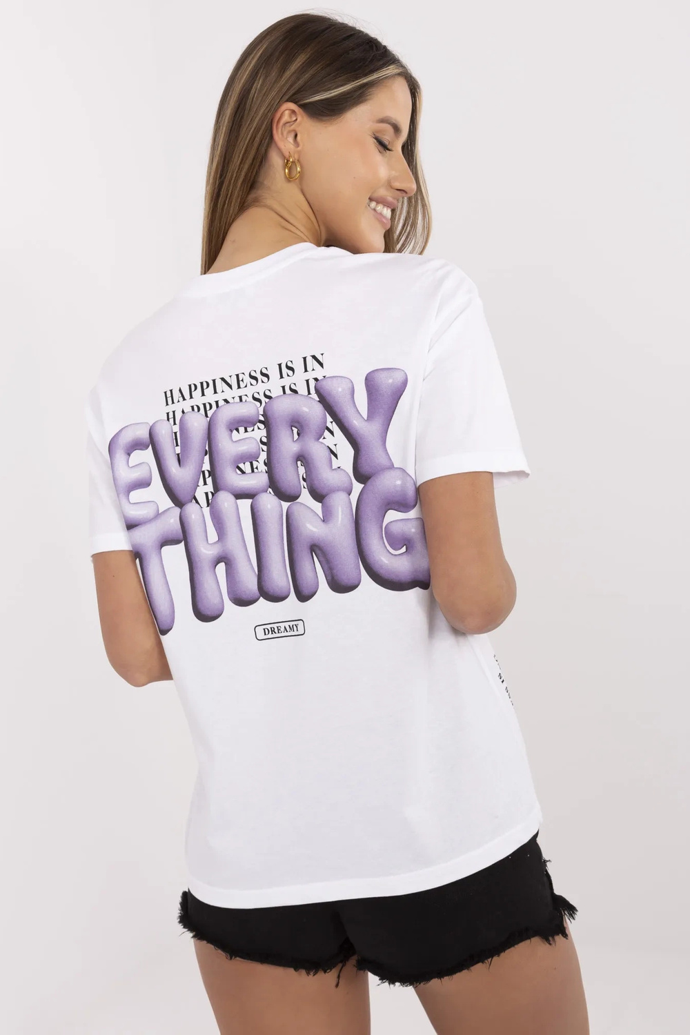 T-krekla izmēri S izmērā, mērot plakaniski: platums zem padusēm - 52 cm, piedurknes garums - 18 cm (no vīles), gurnu platums - 55 cm, kopējais garums - 65 cm.