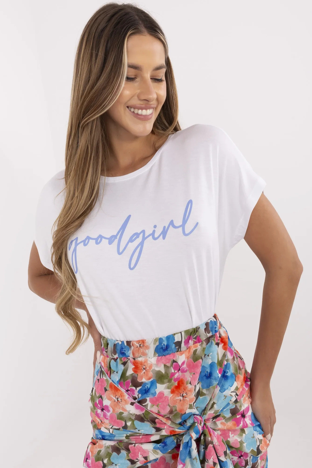 T-krekla izmēri S izmērā, mērot plakaniski: platums zem padusēm - 58 cm, piedurknes garums - 24 cm (no vīles), gurnu platums - 50 cm, kopējais garums - 65 cm.