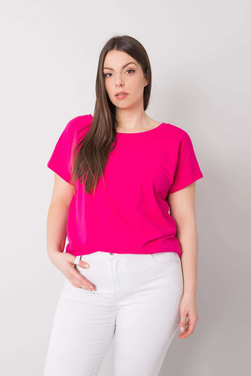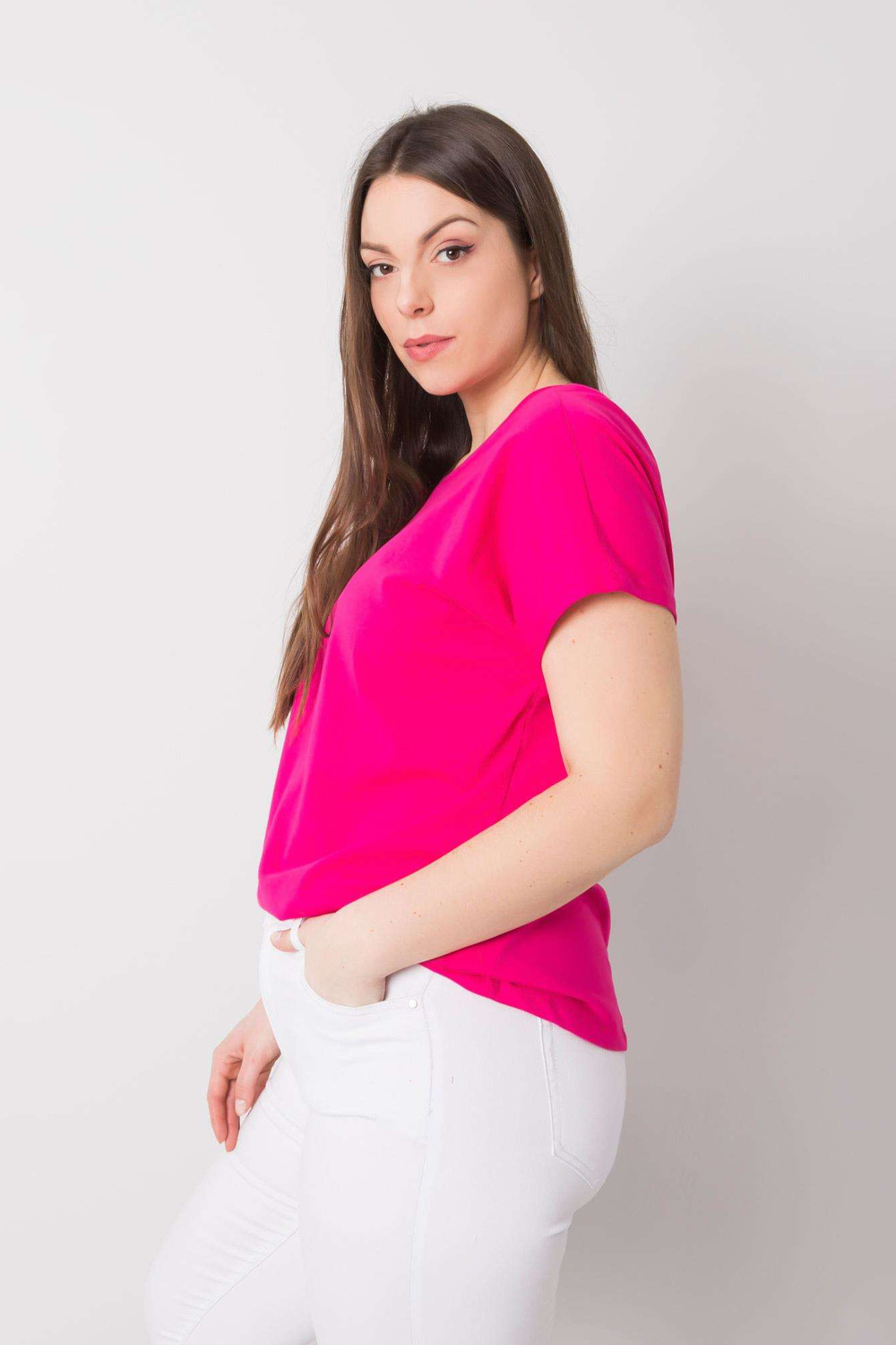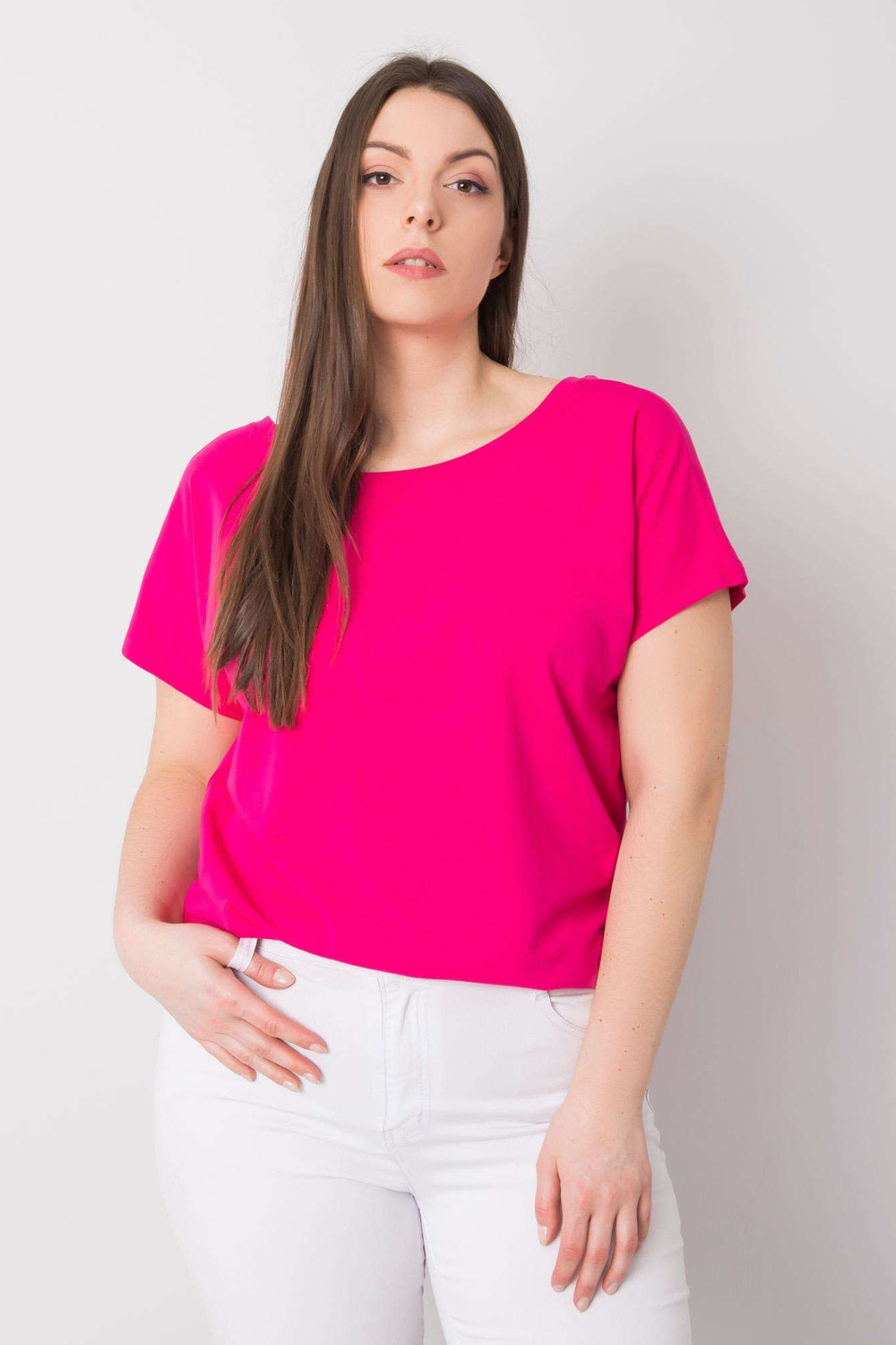 Fuksijas krāsas kokvilnas T-krekls lielos izmēros.