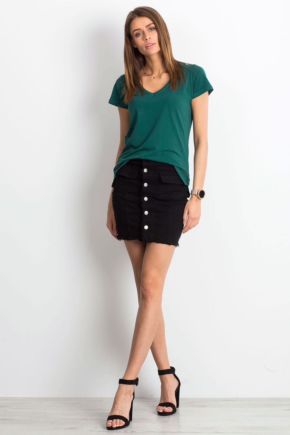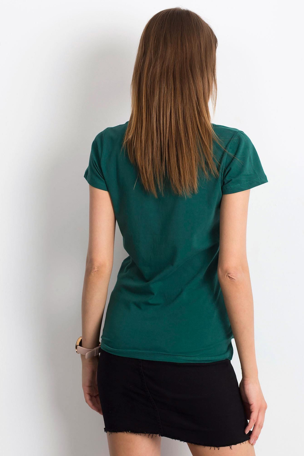 Tumši zaļas krāsas T veida izgriezuma T-krekls.