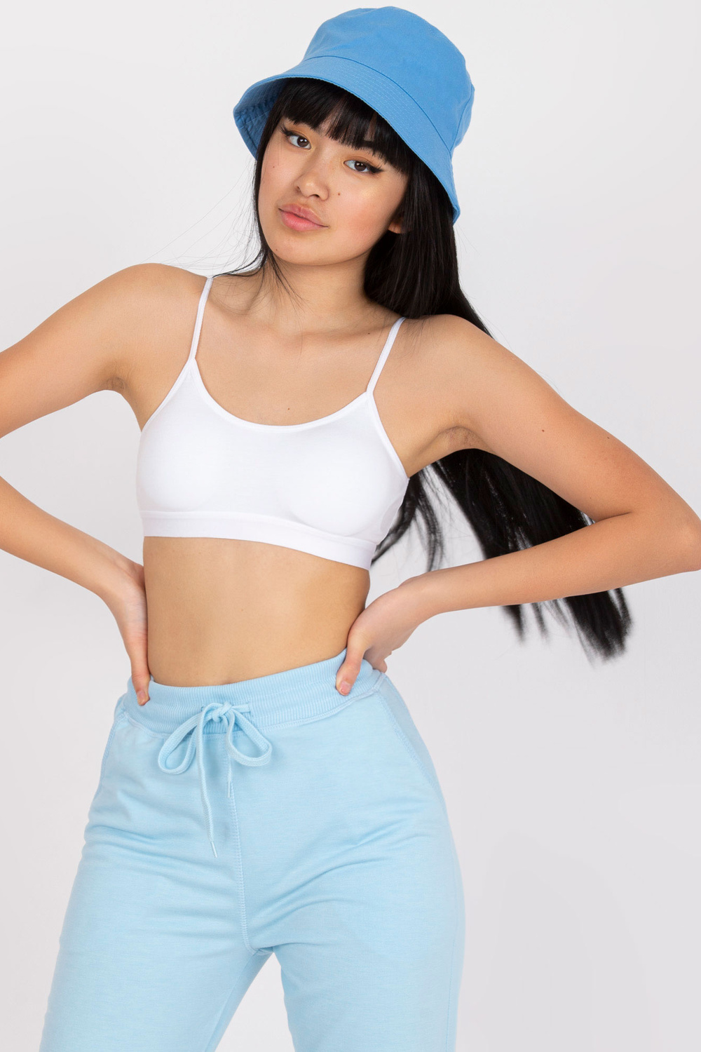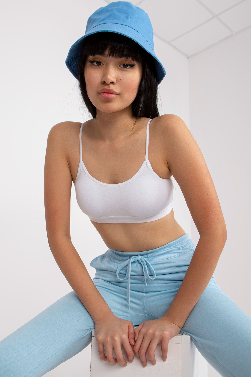 Sieviešu balts īss tops ar plānām lencēm.