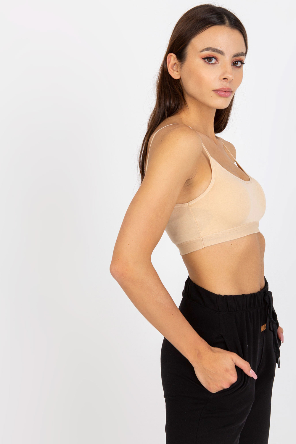 Bēšs sporta tops ar lencēm.