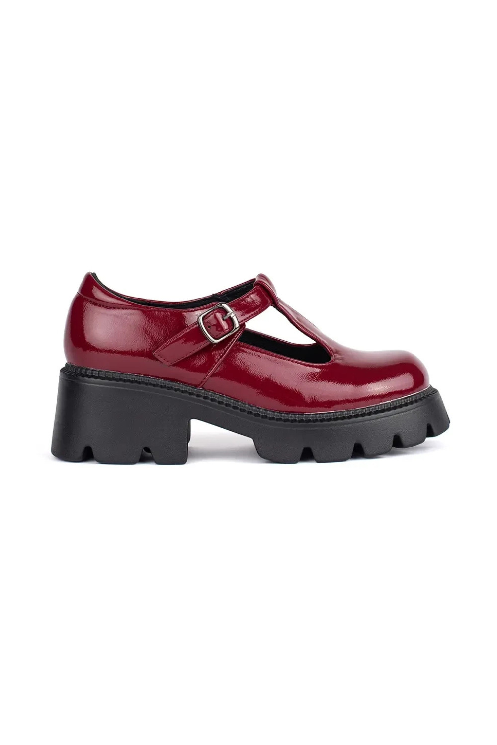 bordo krāsas lakots Sieviešu zābaki ar platformu