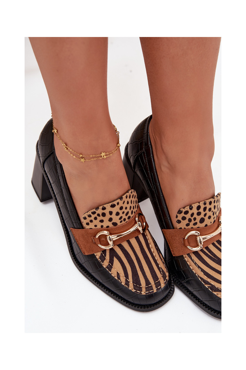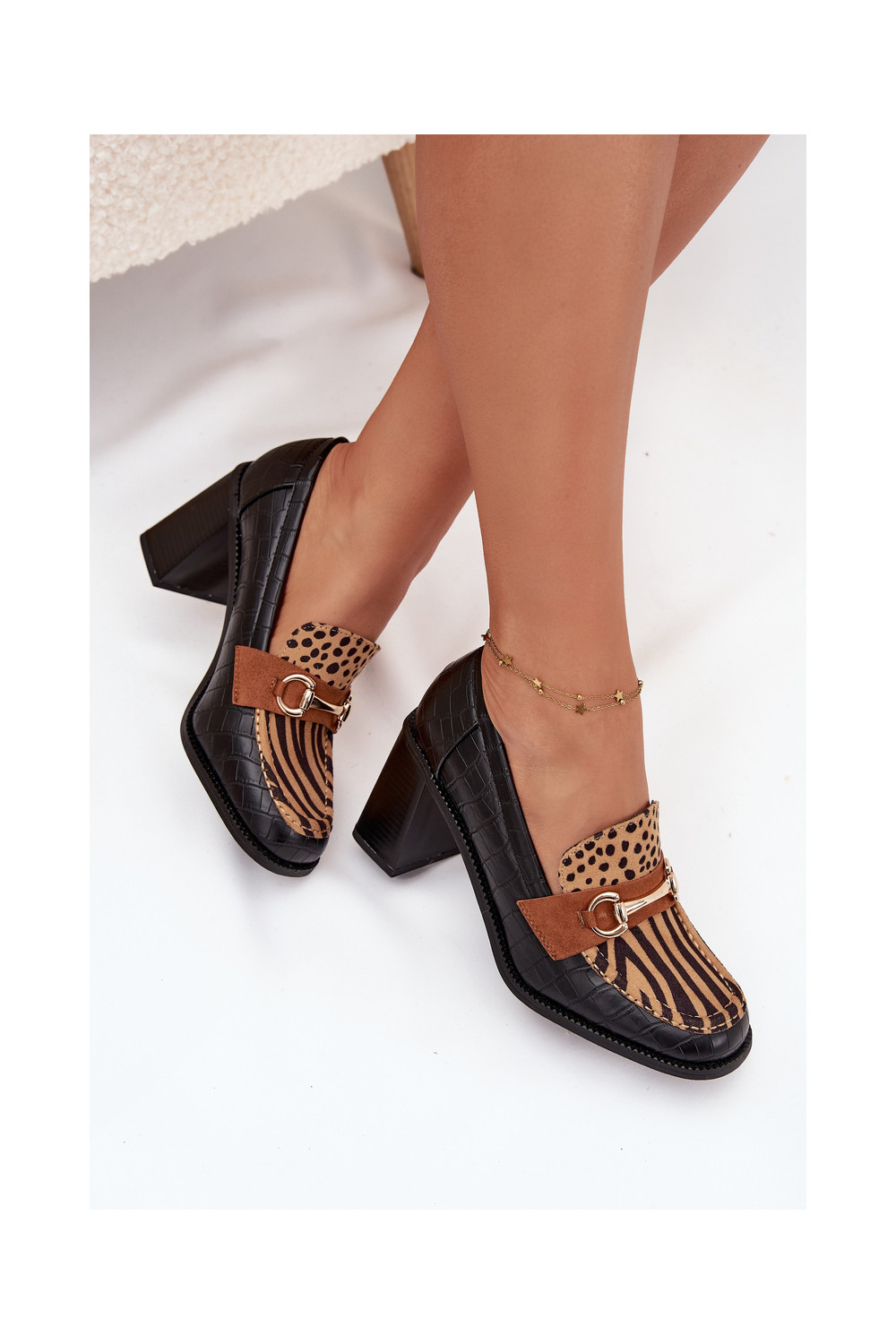 Sieviešu augstpapēžu kurpes ar iedobēm un zelta krāsas detaļām, melnas un smilšu krāsā, Novella