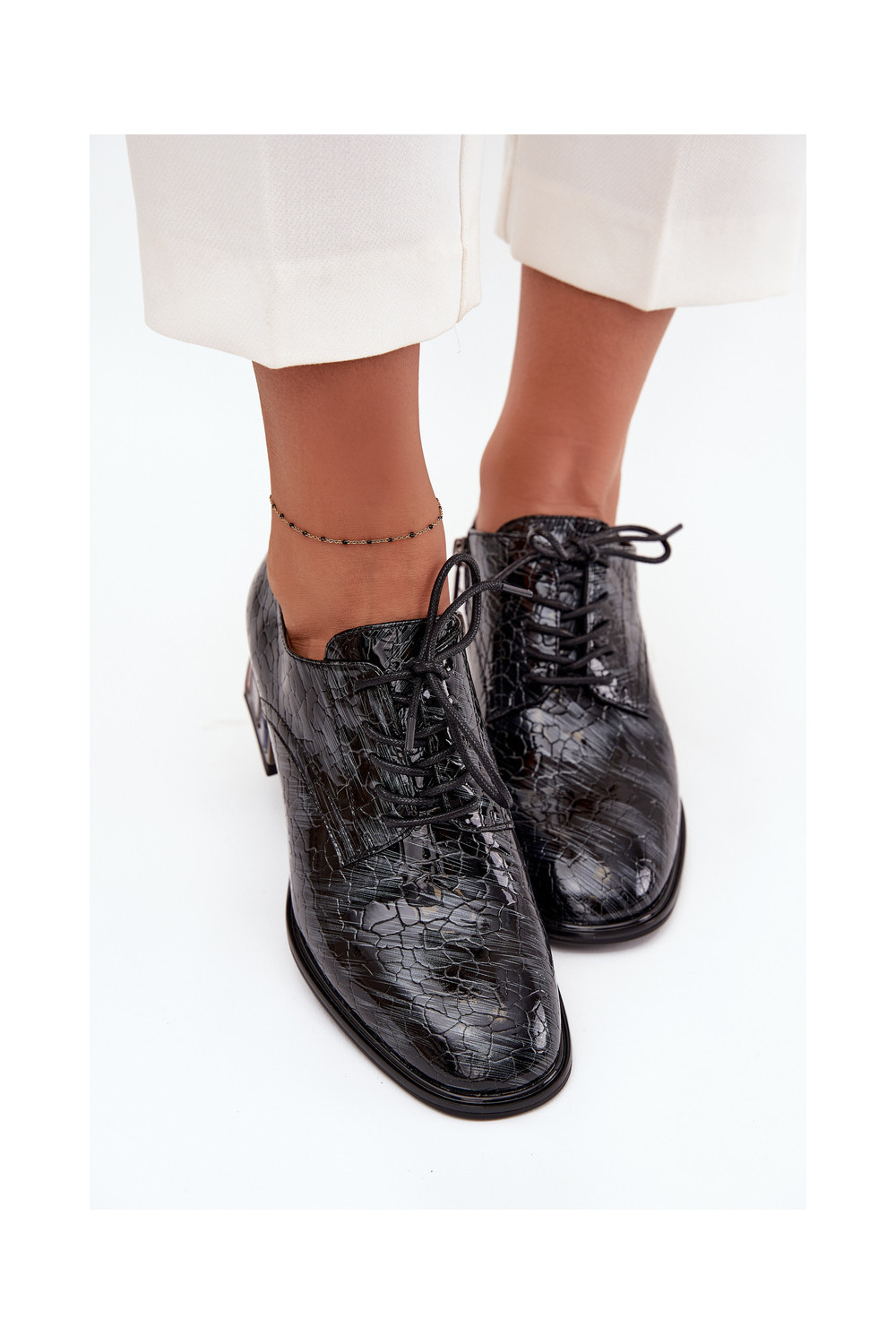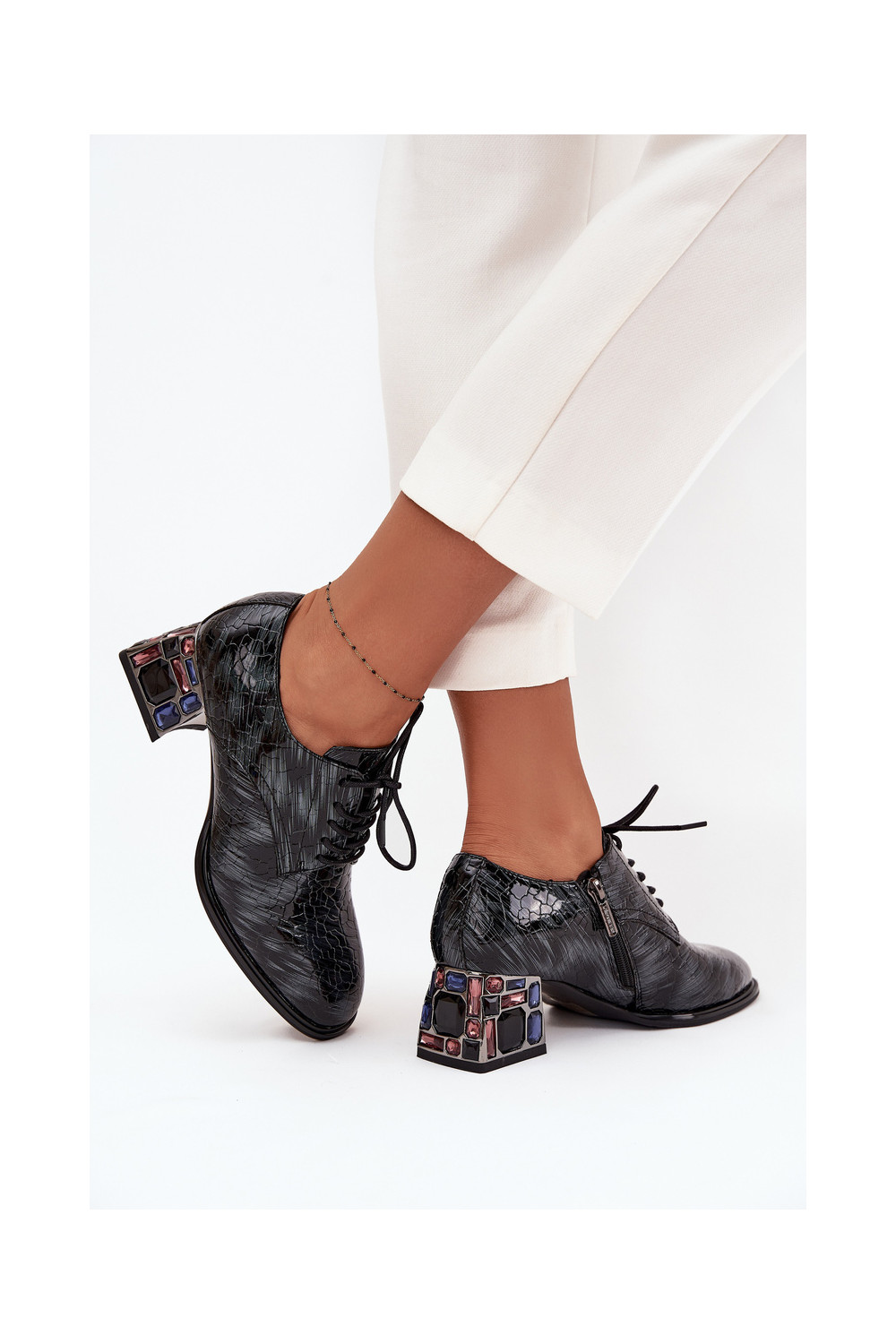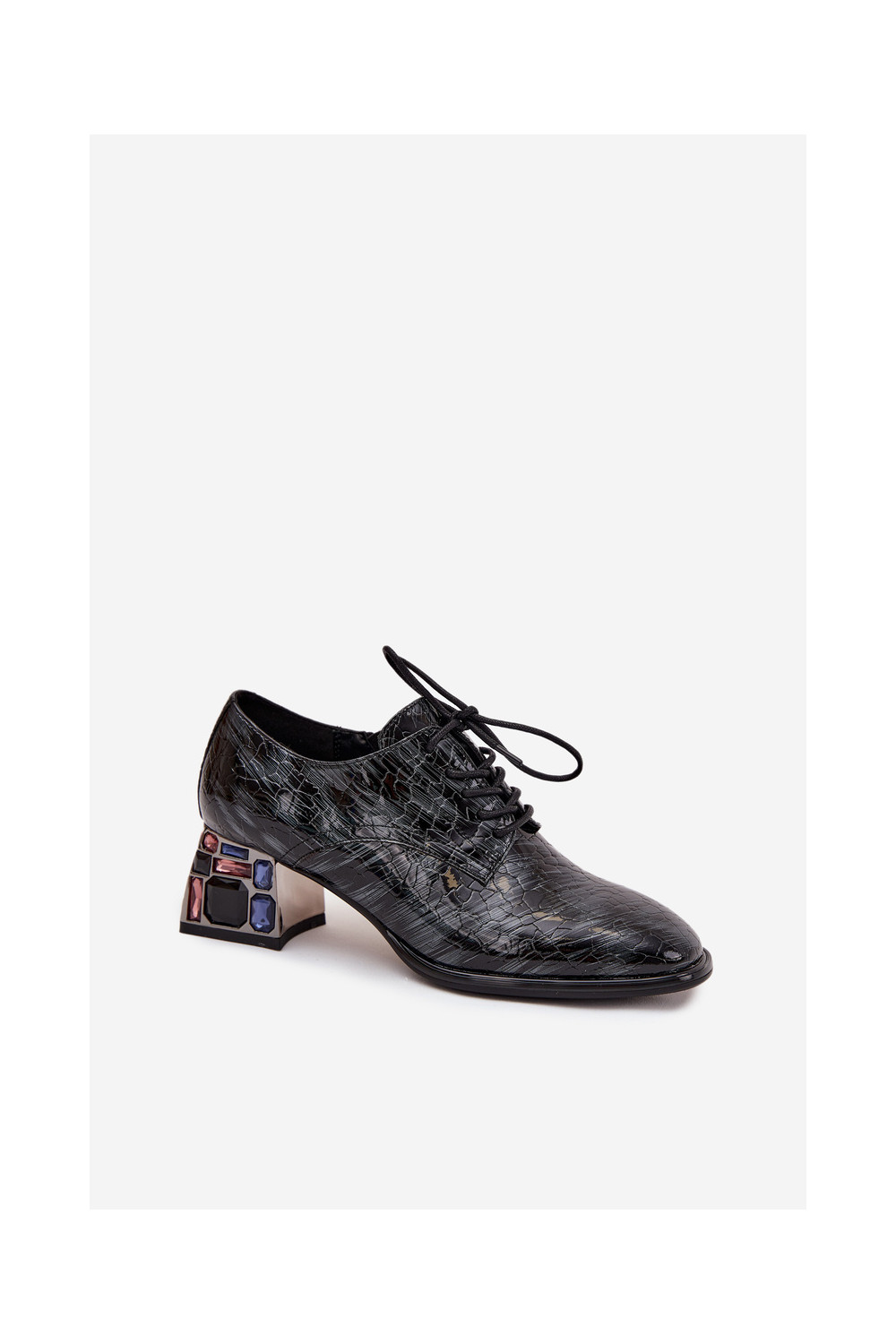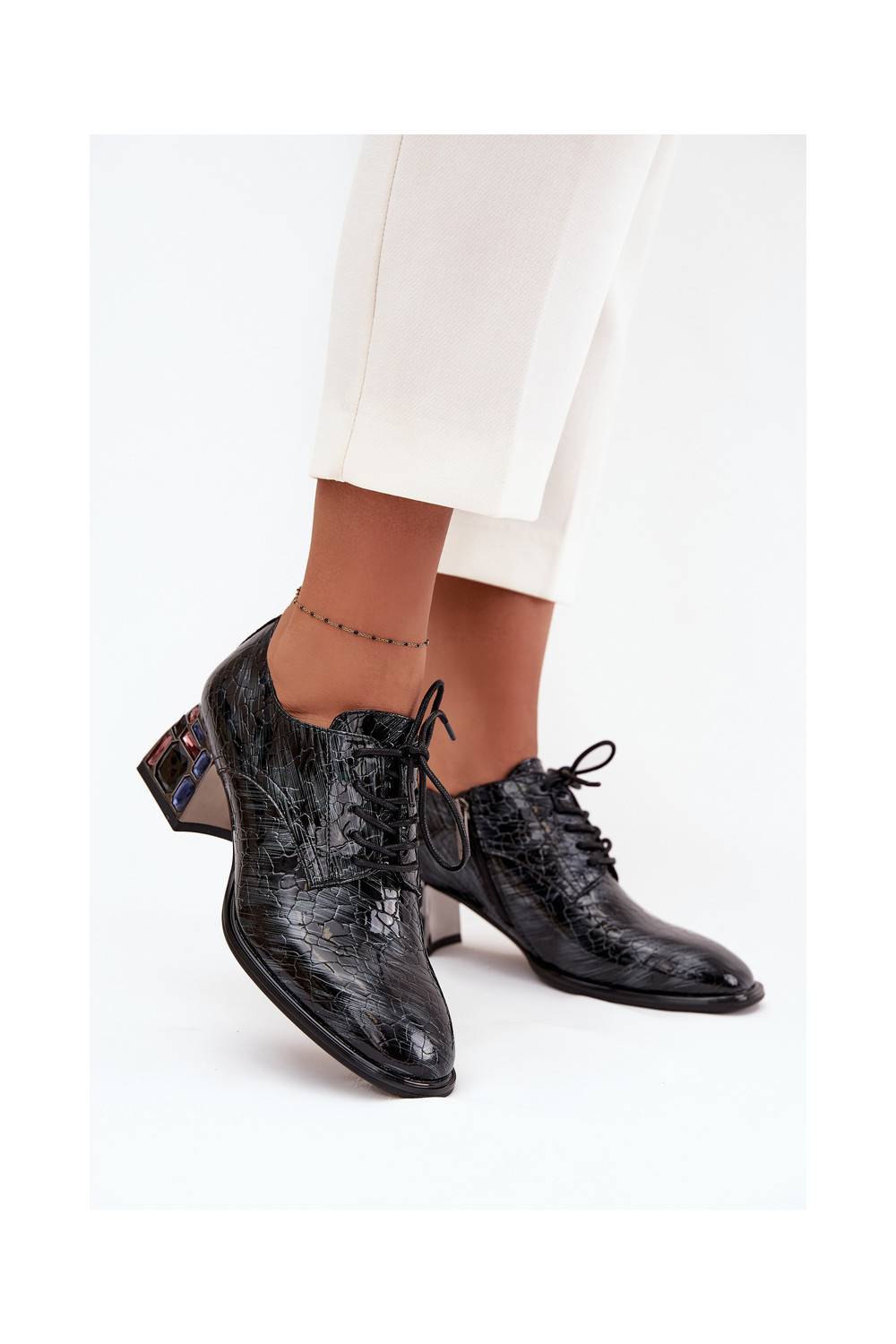 Lakuoti dabīgās ādas sieviešu puszābaki ar papēžiem un spīdošām acīm Artiker 57C0072 pelēkā krāsā