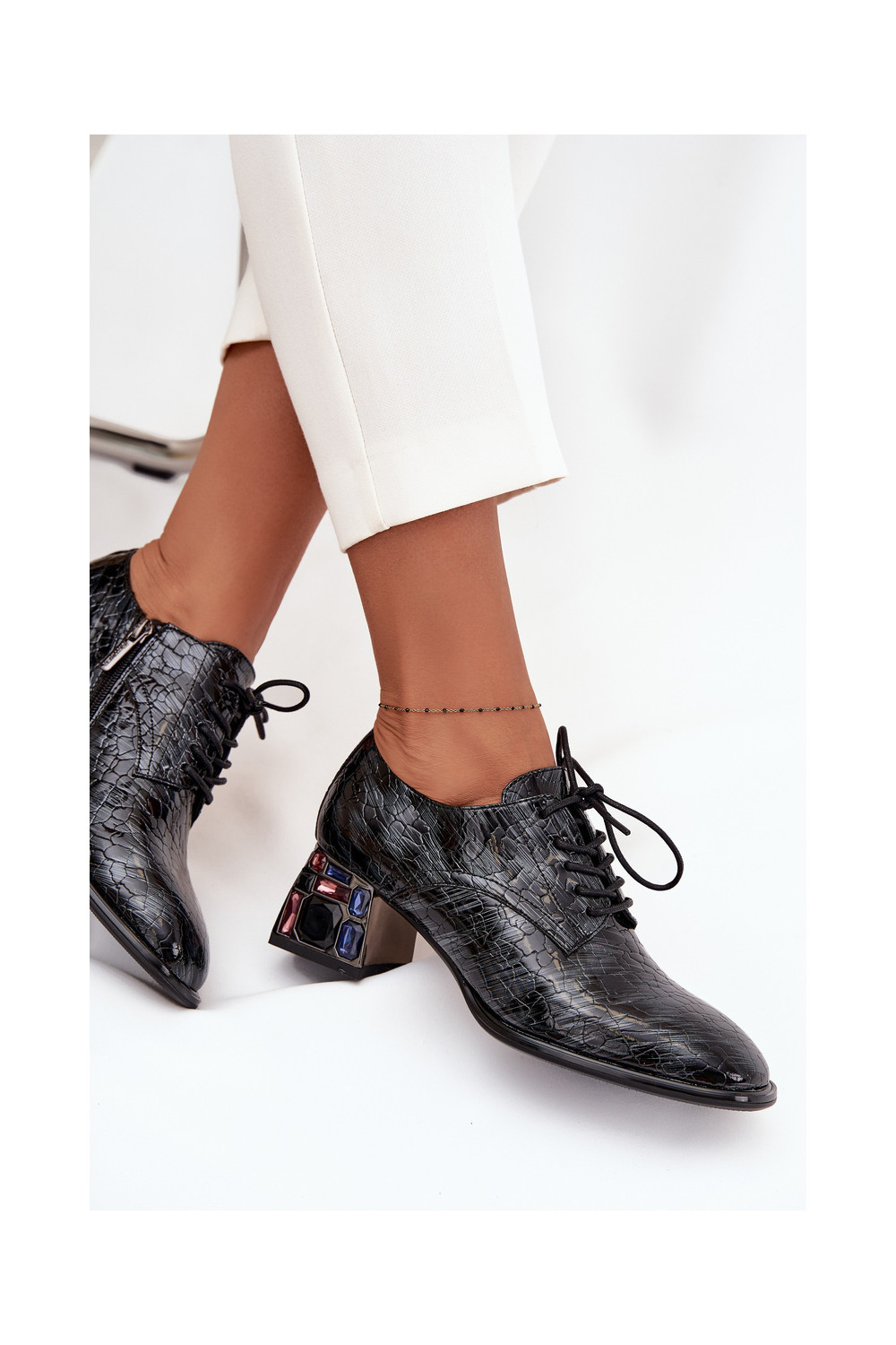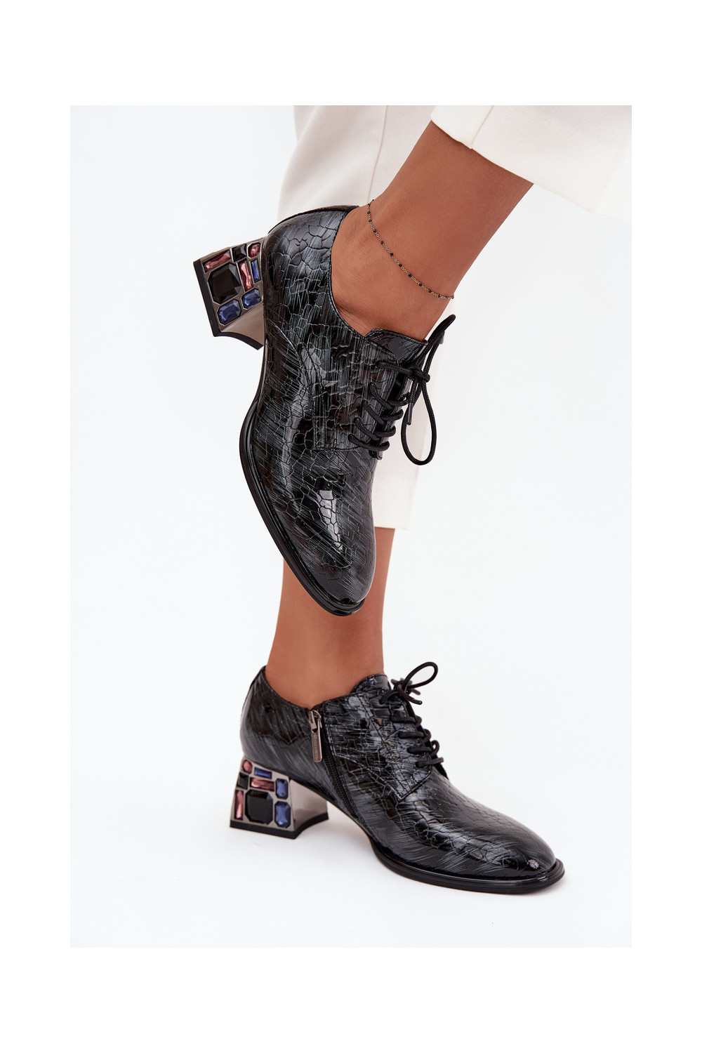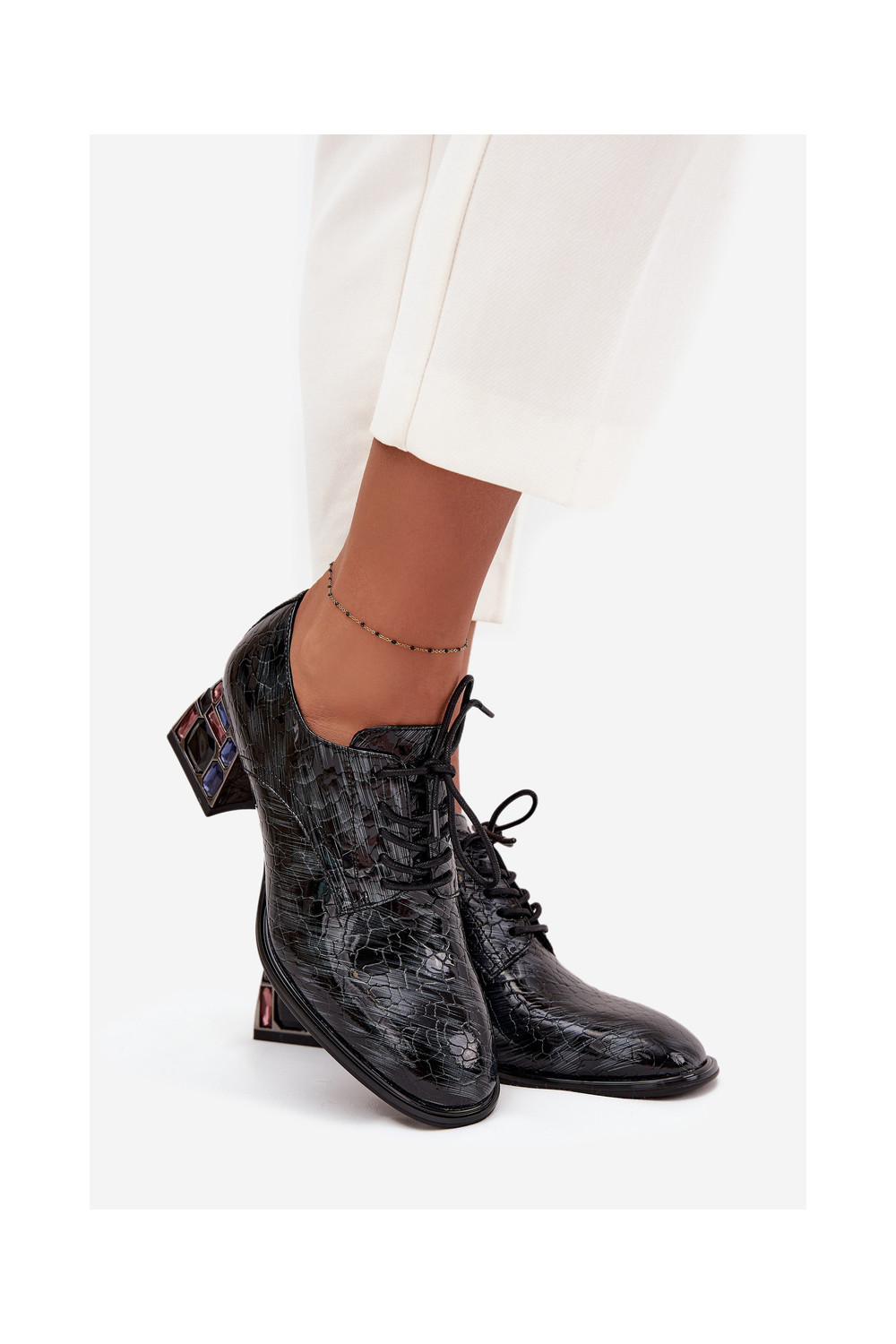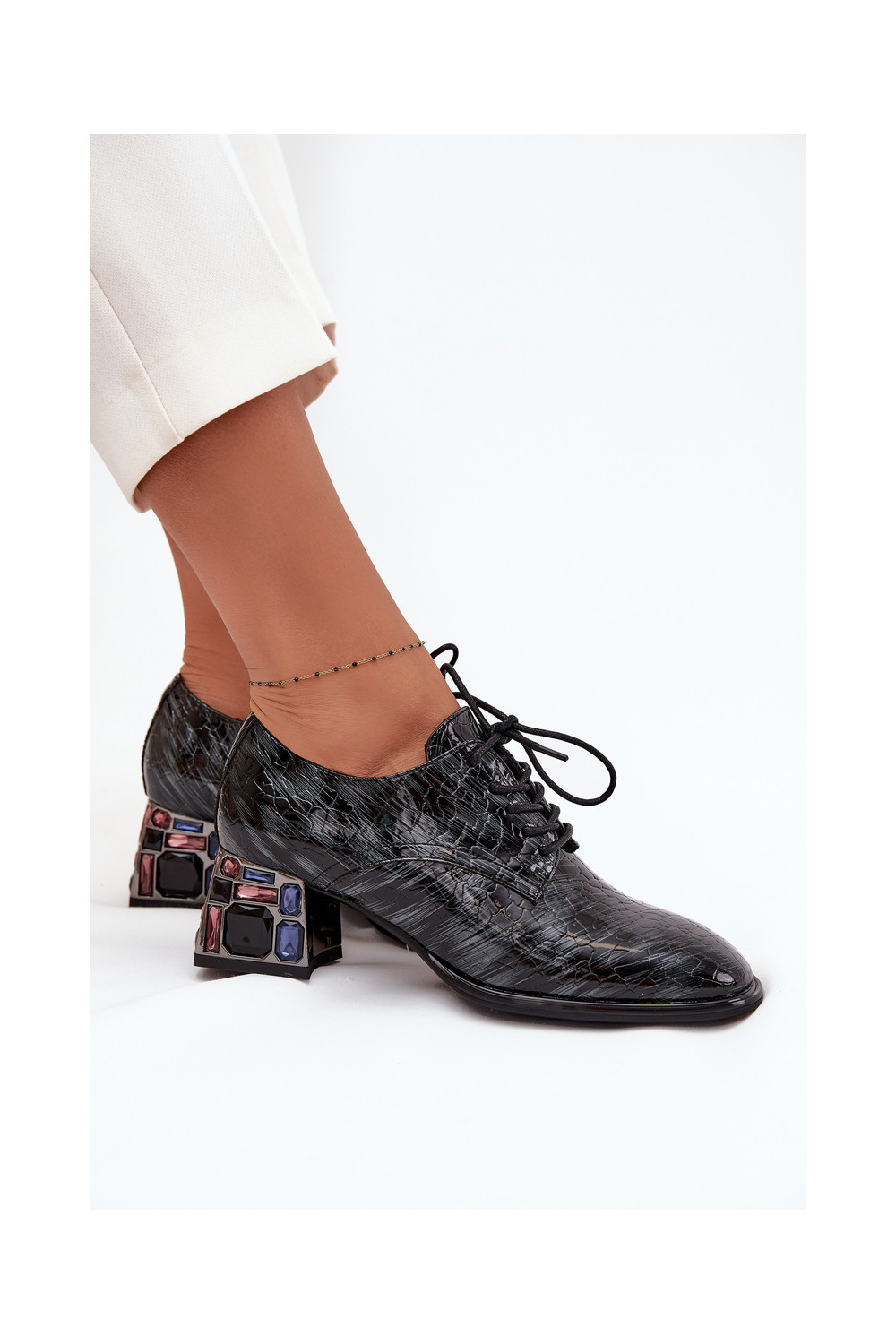 Lakuoti dabīgās ādas sieviešu puszābaki ar papēžiem un spīdošām acīm Artiker 57C0072 pelēkā krāsā