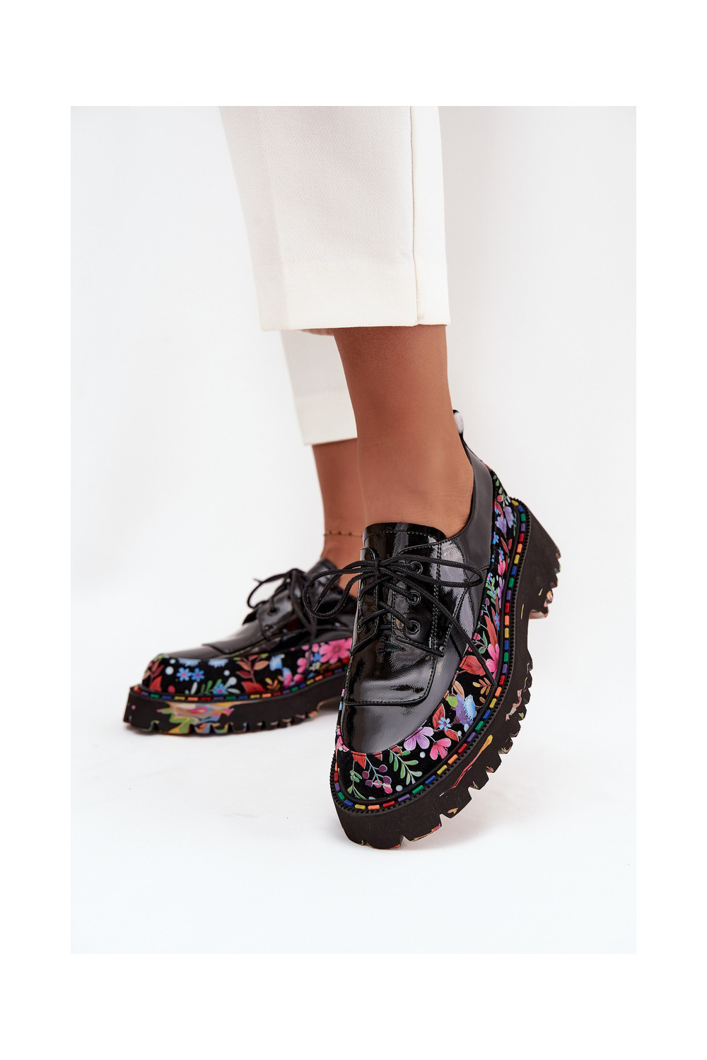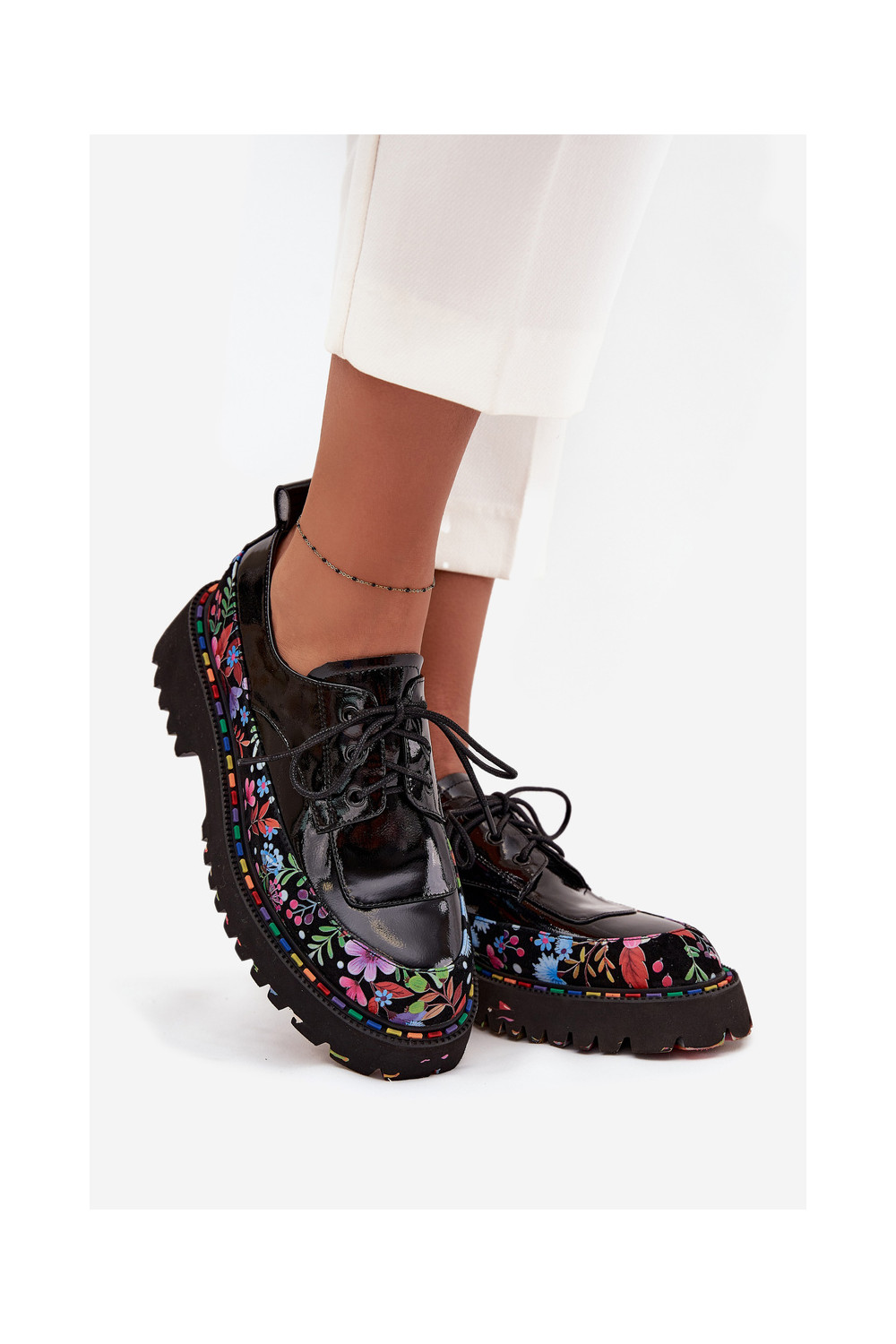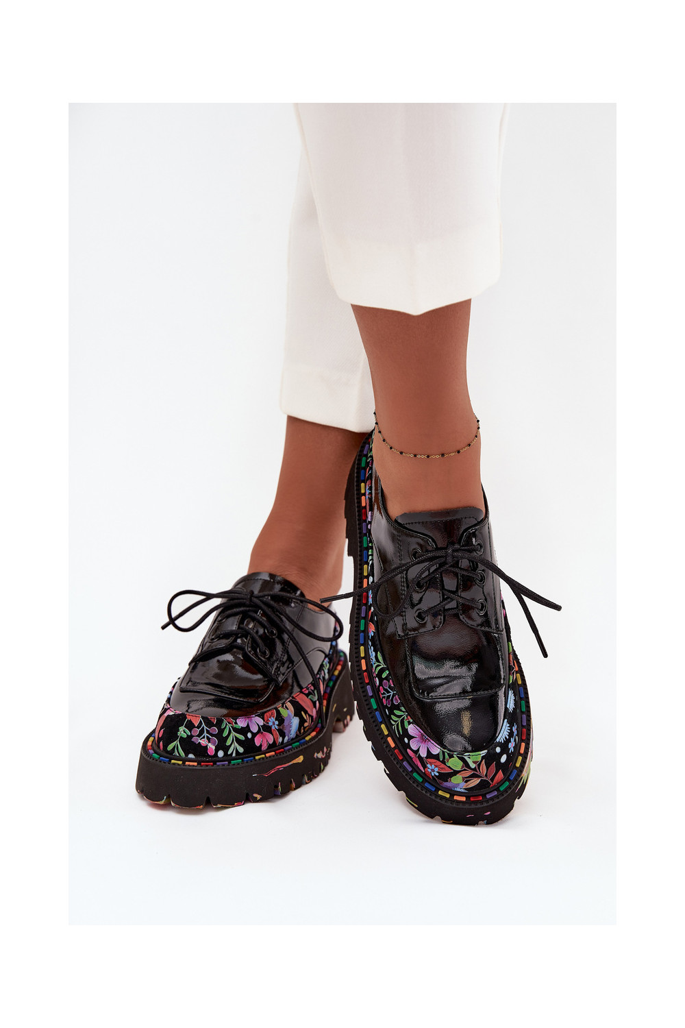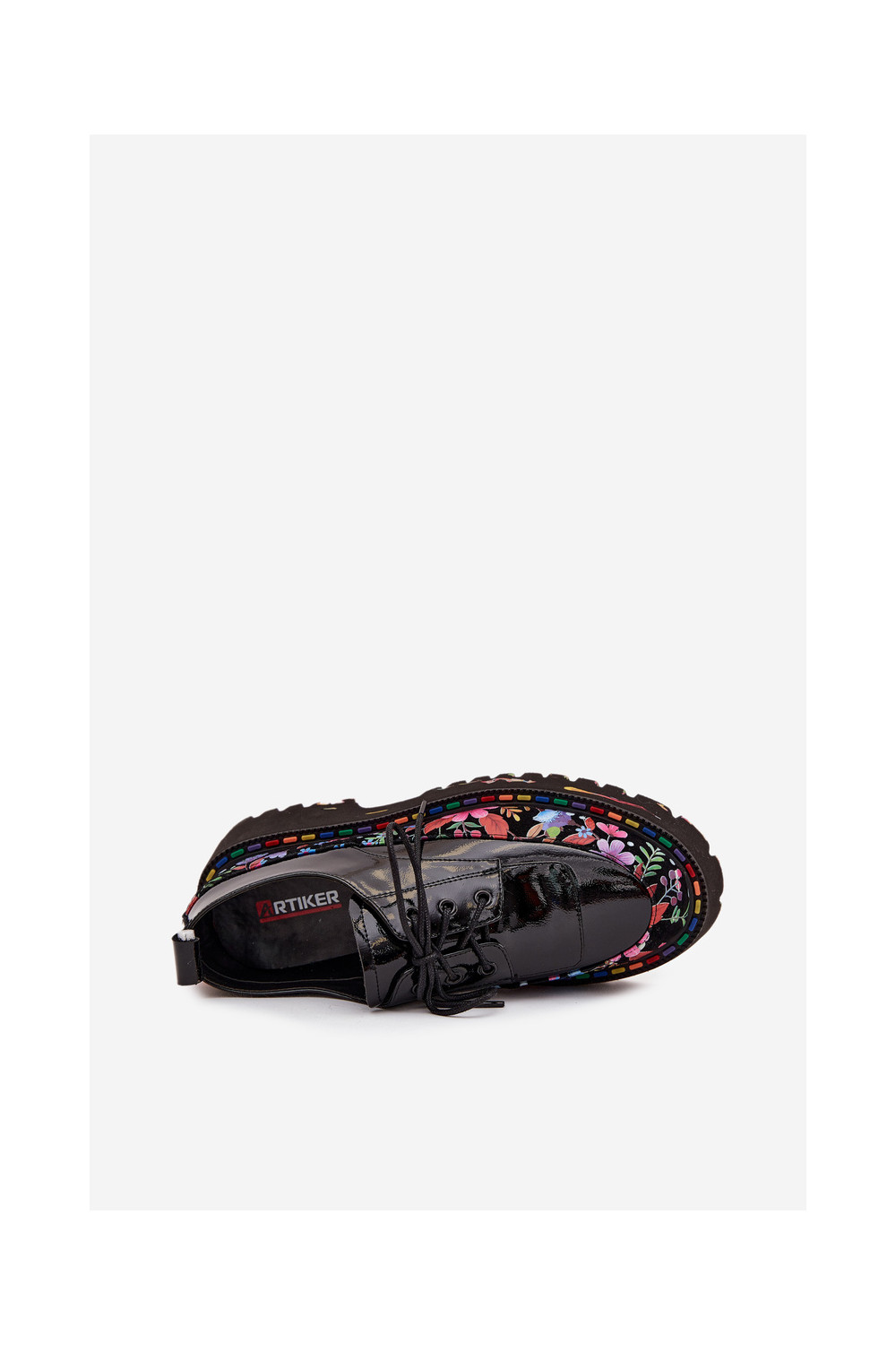 Dabīgās ādas apavi ar lakota efekta un rakstiem Artiker 57C0174 melnā krāsā