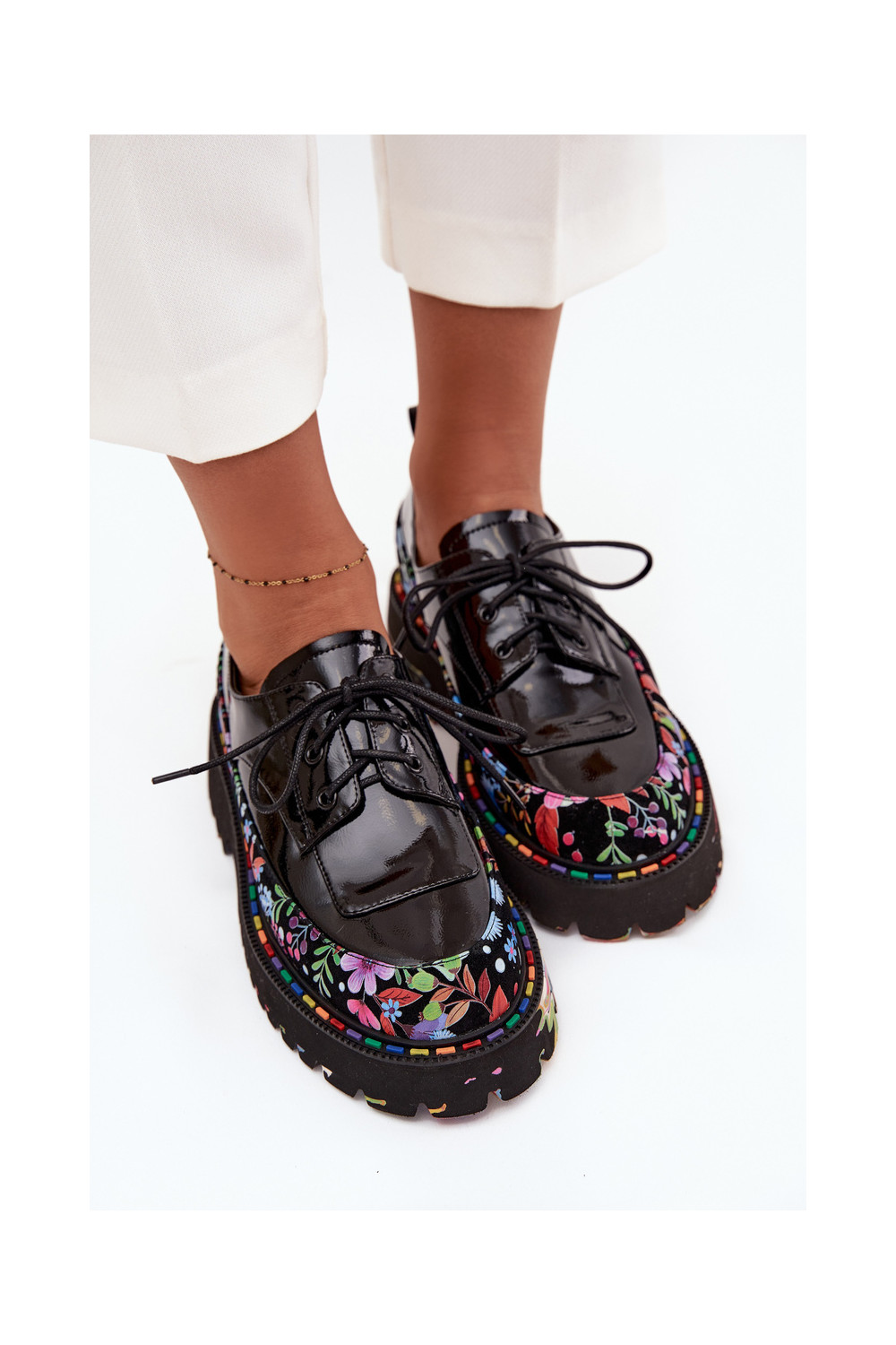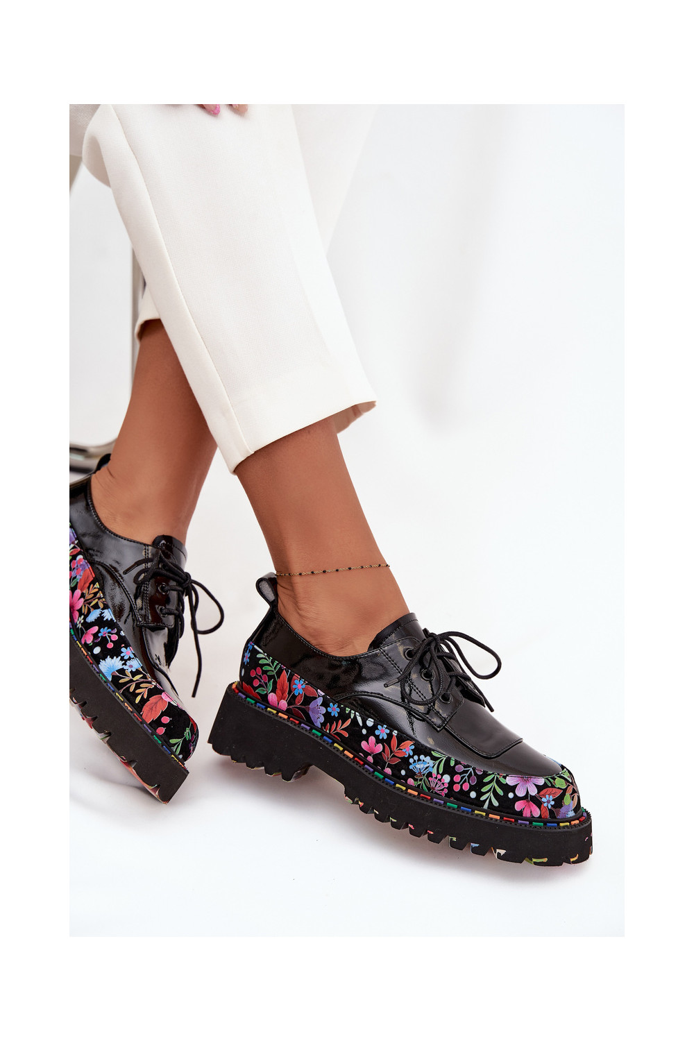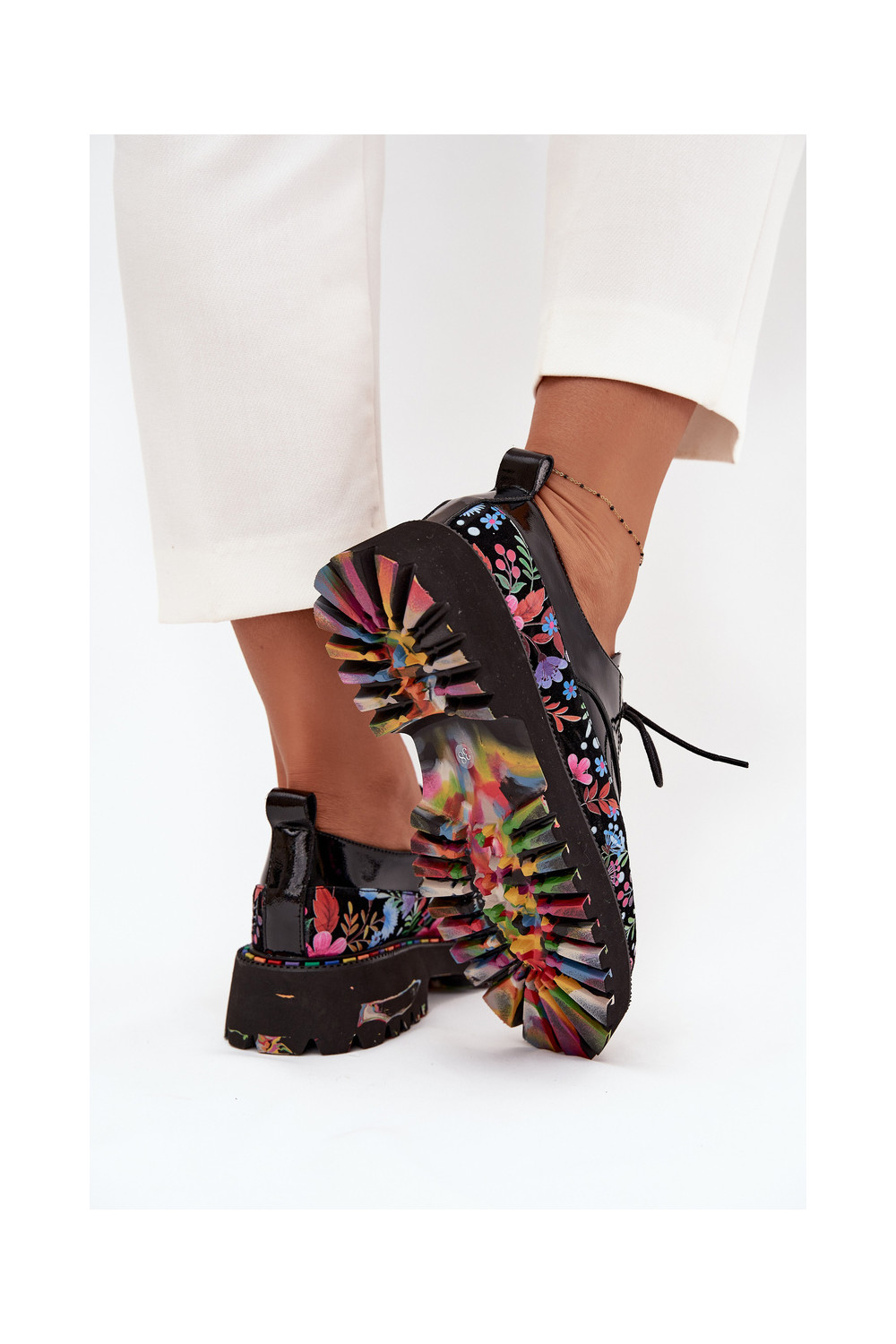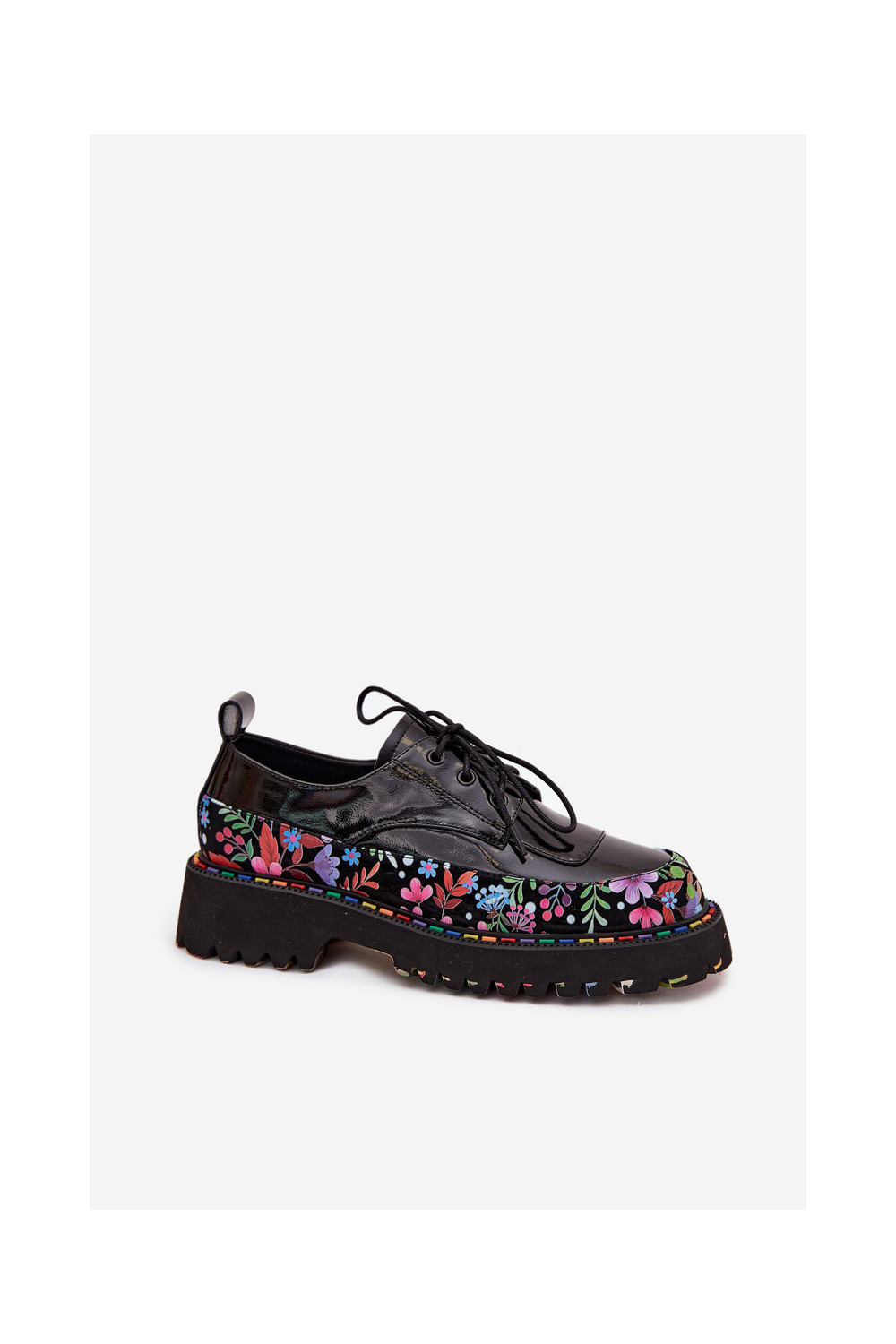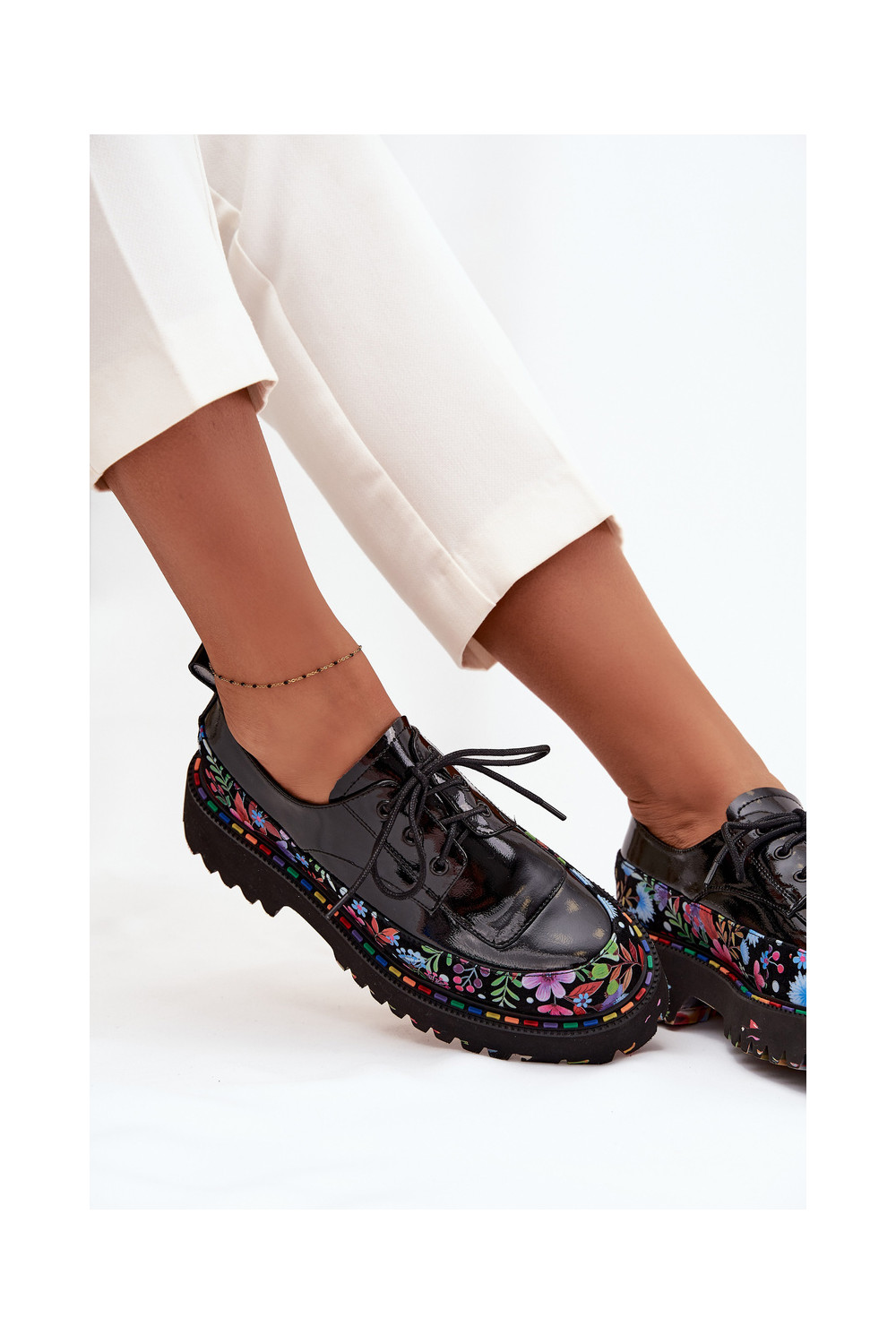 Dabīgās ādas apavi ar lakota efekta un rakstiem Artiker 57C0174 melnā krāsā