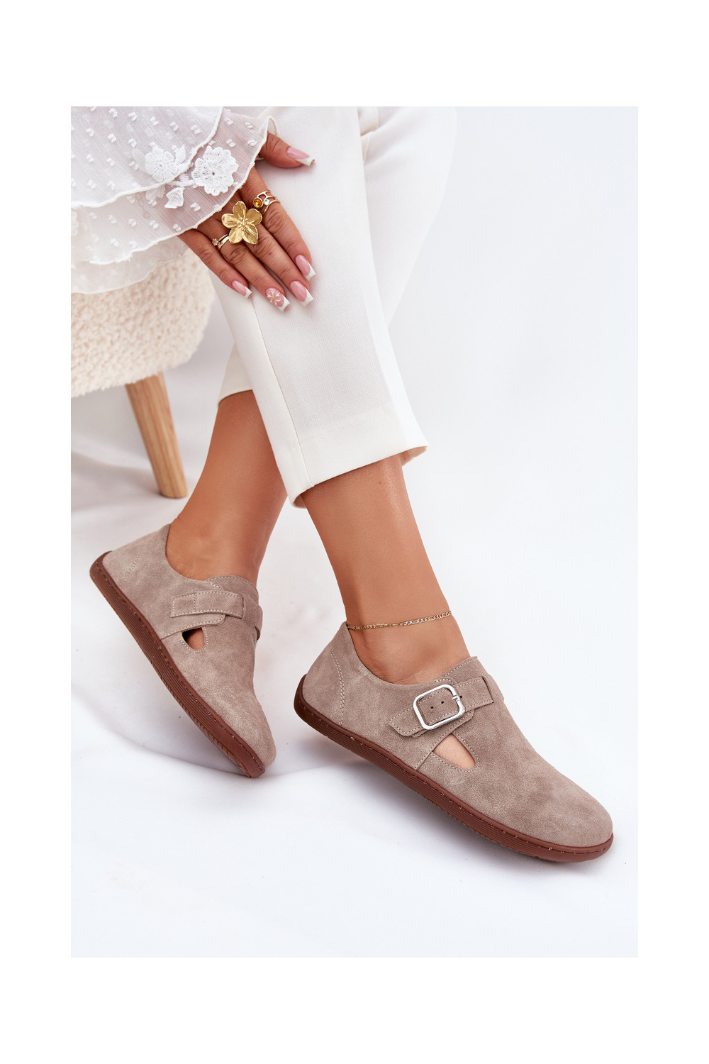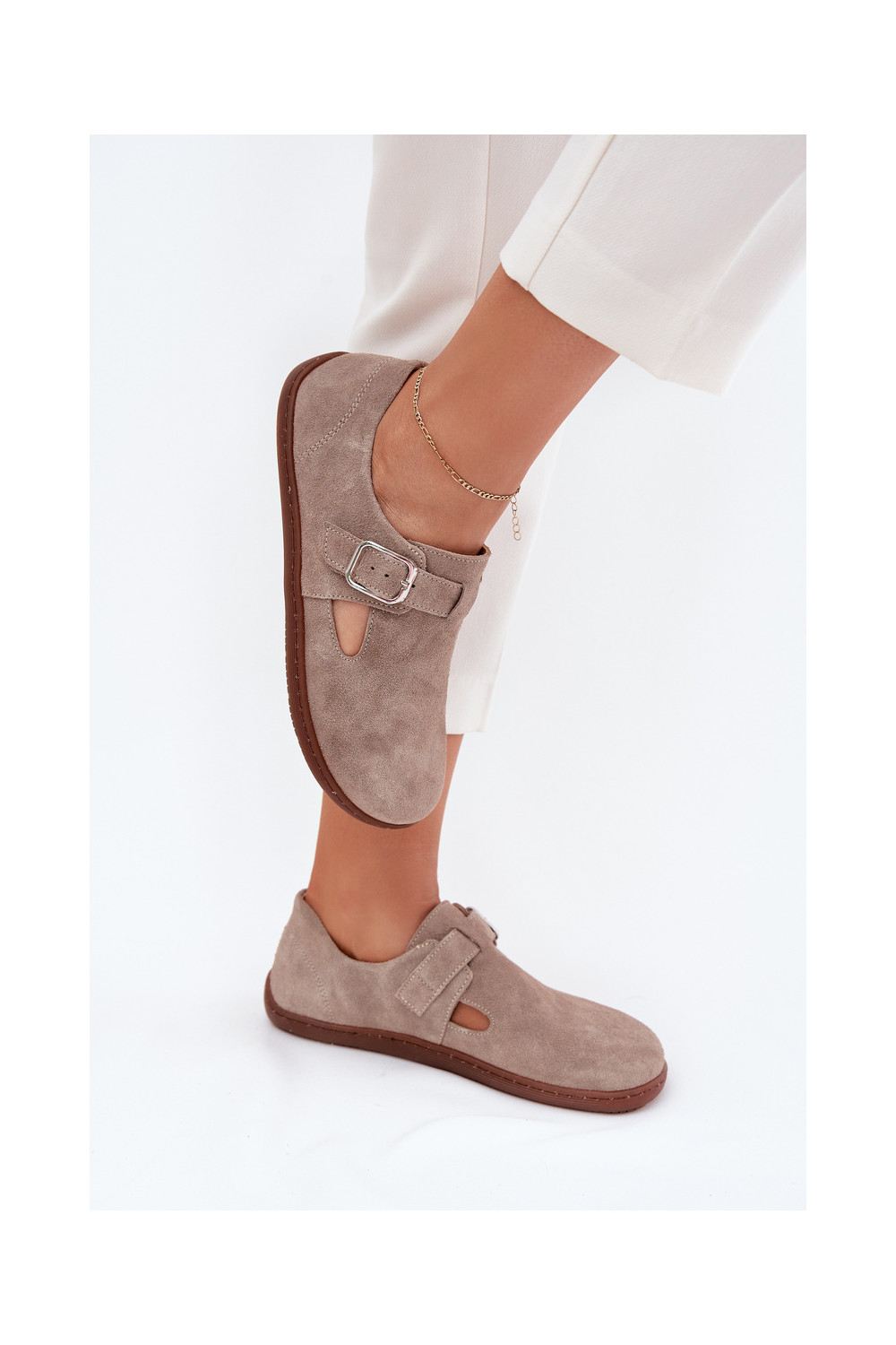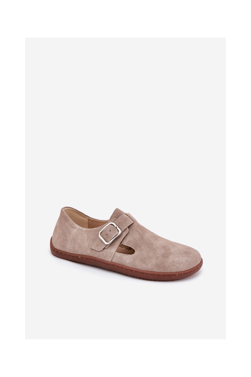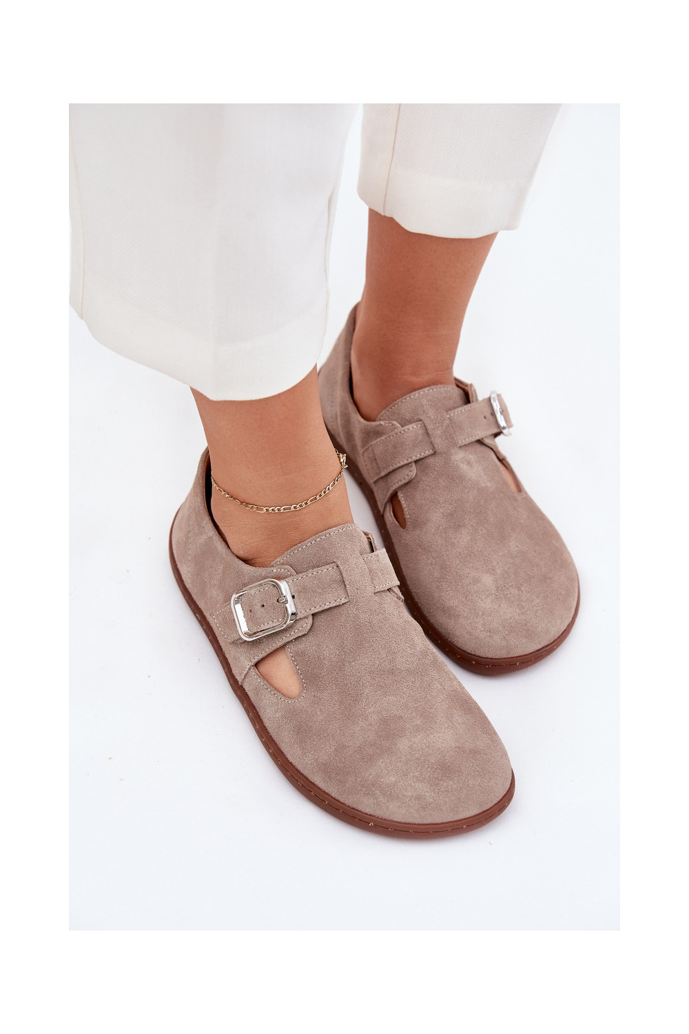 Zamša zābaki Barefoot sievietēm ar sprādzēm, smilšu krāsā Zazoo N1261