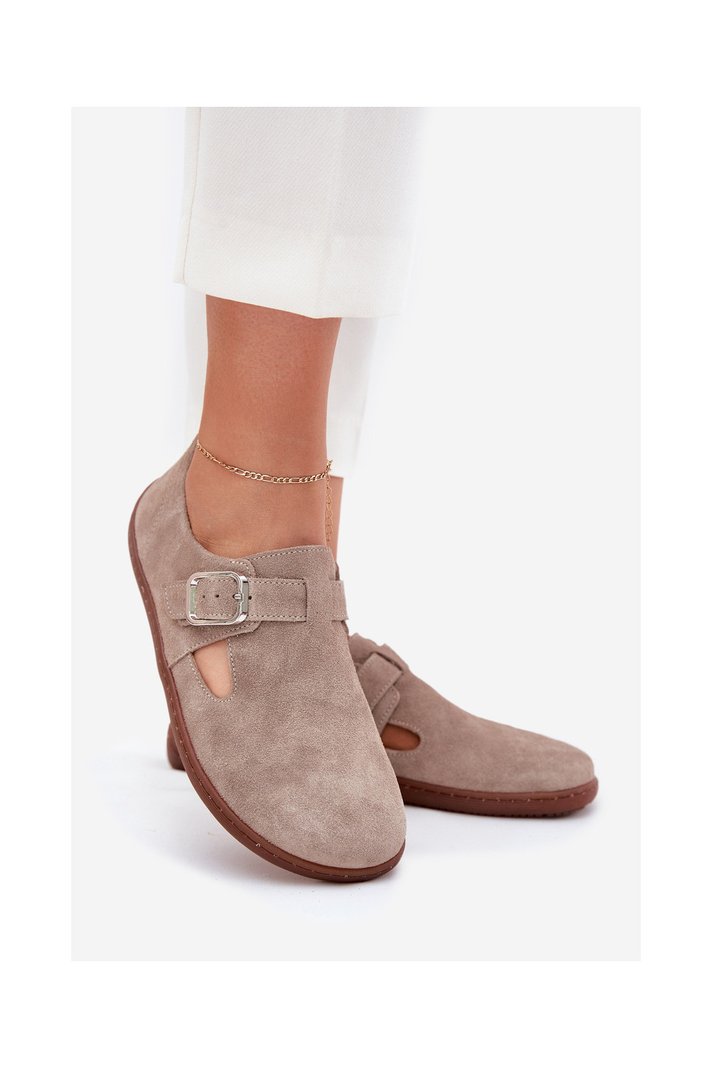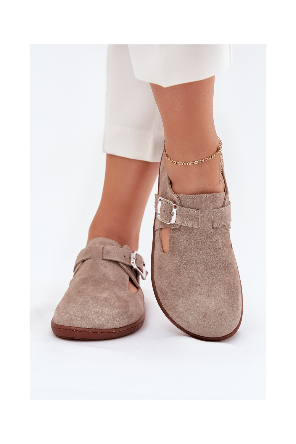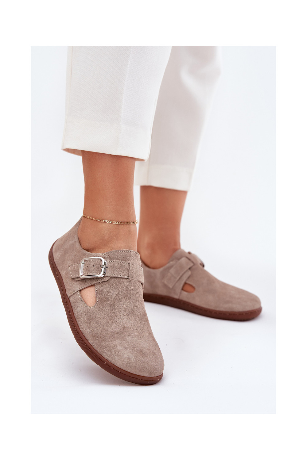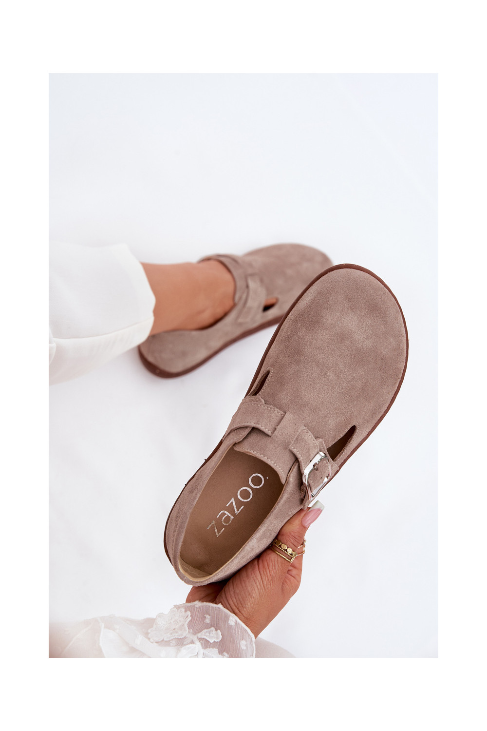 Zamša zābaki Barefoot sievietēm ar sprādzēm, smilšu krāsā Zazoo N1261