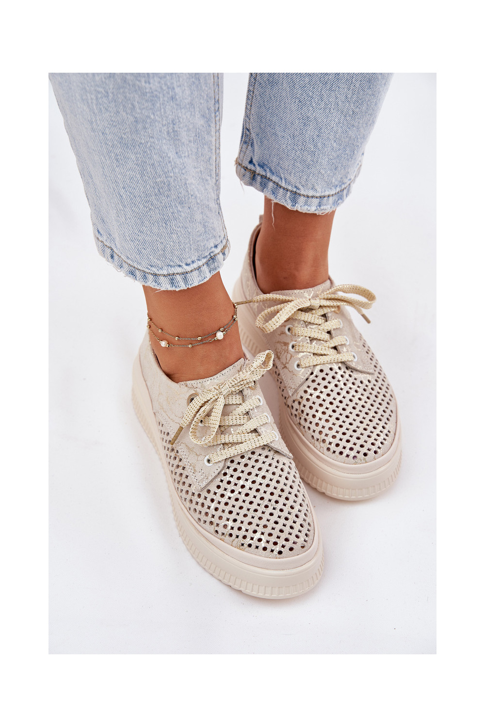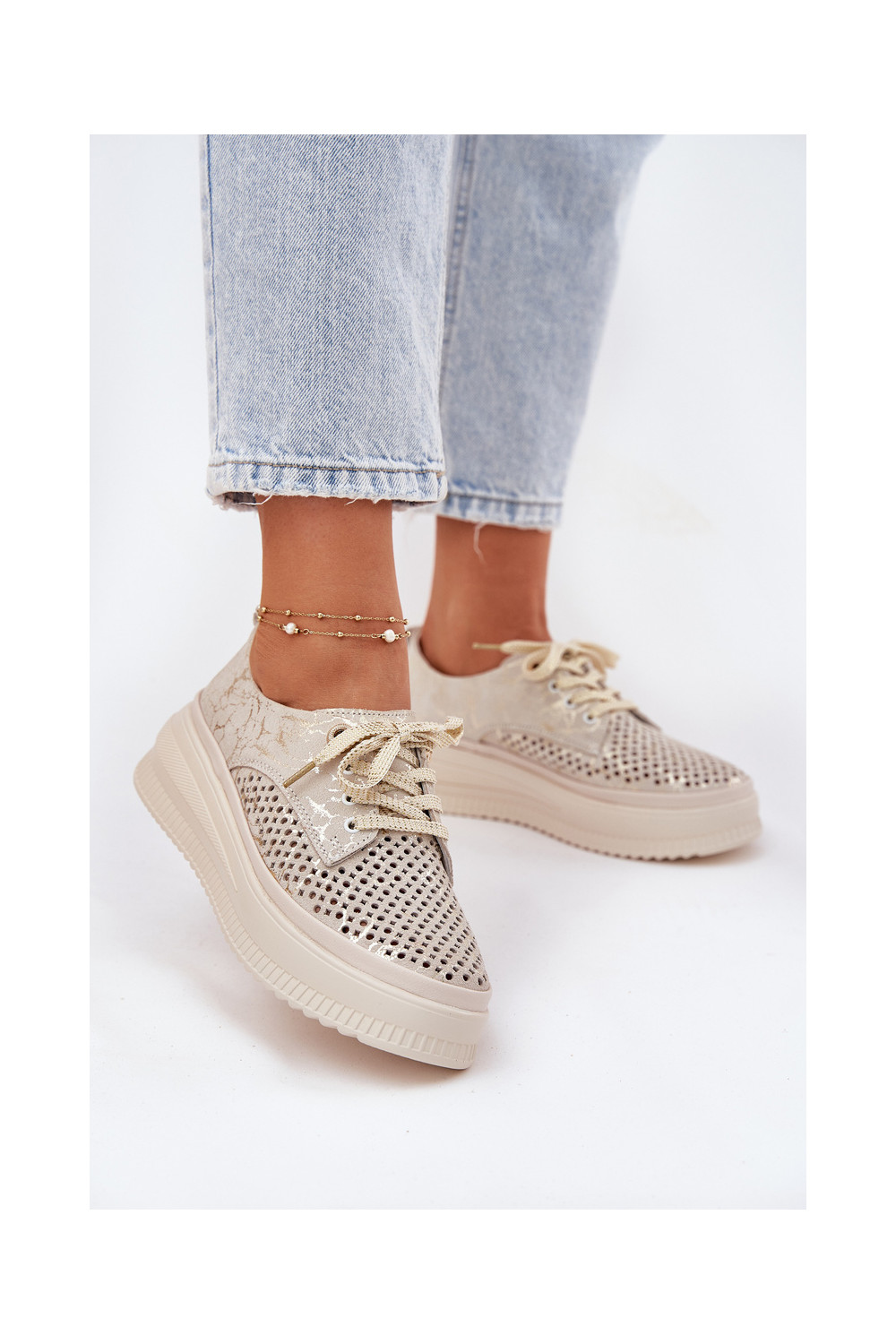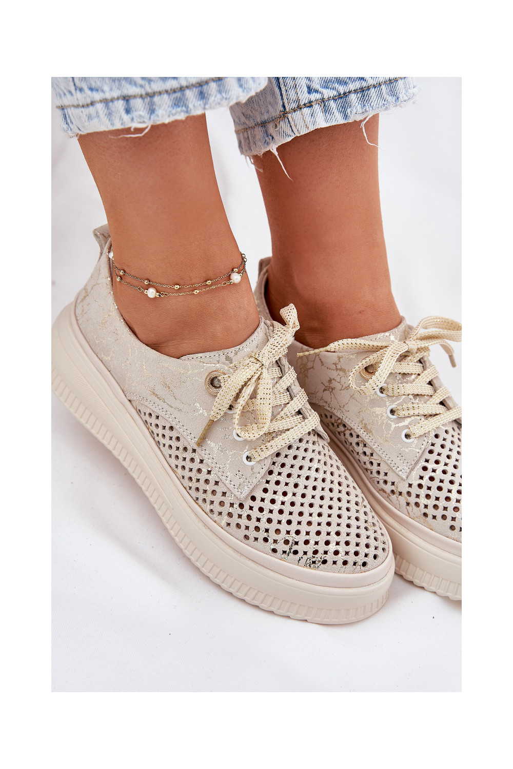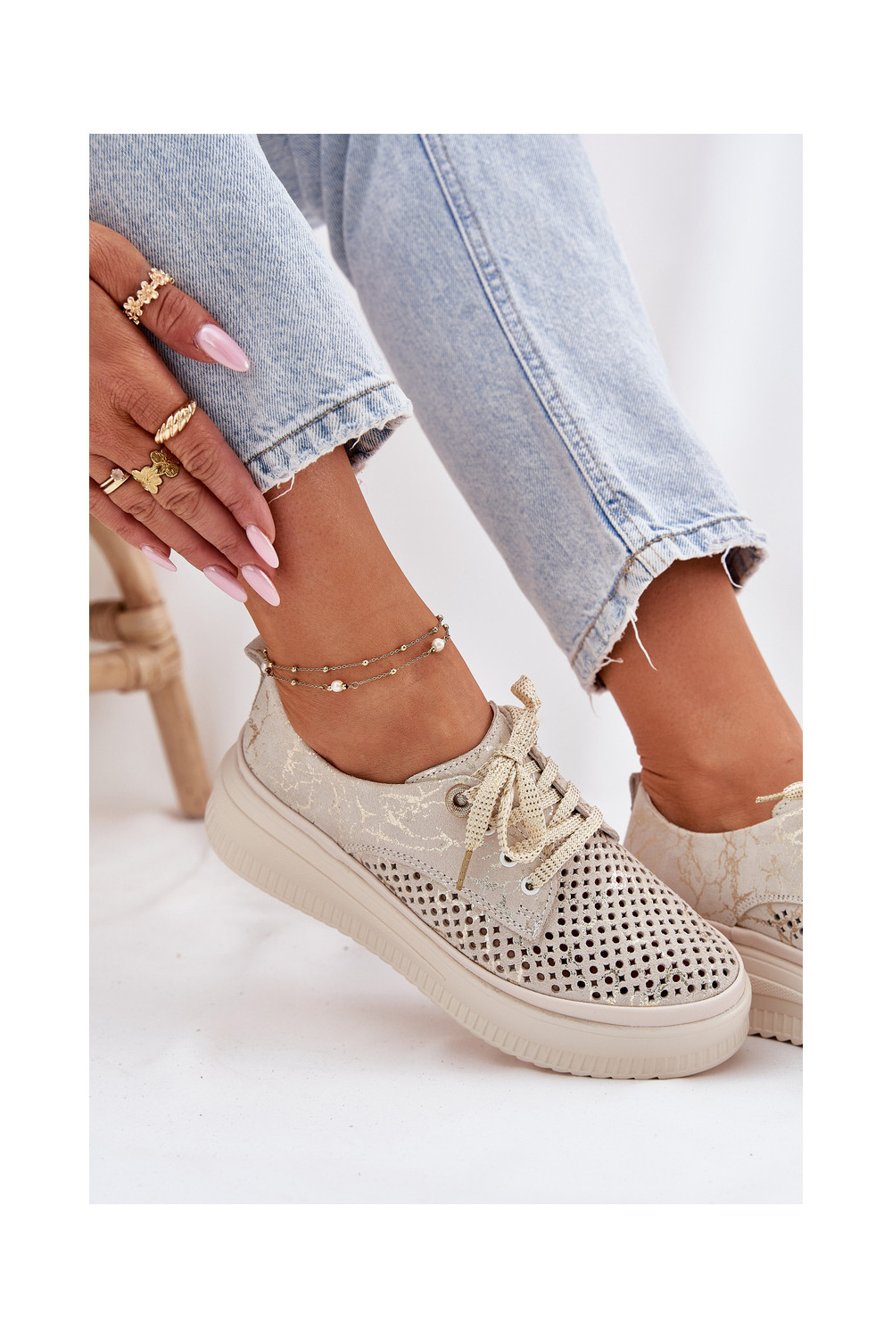 Ažūra zamšādas apavi Sieviešu ar platformu Artiker 56C2108 smilšu krāsas-Zelta krāsas