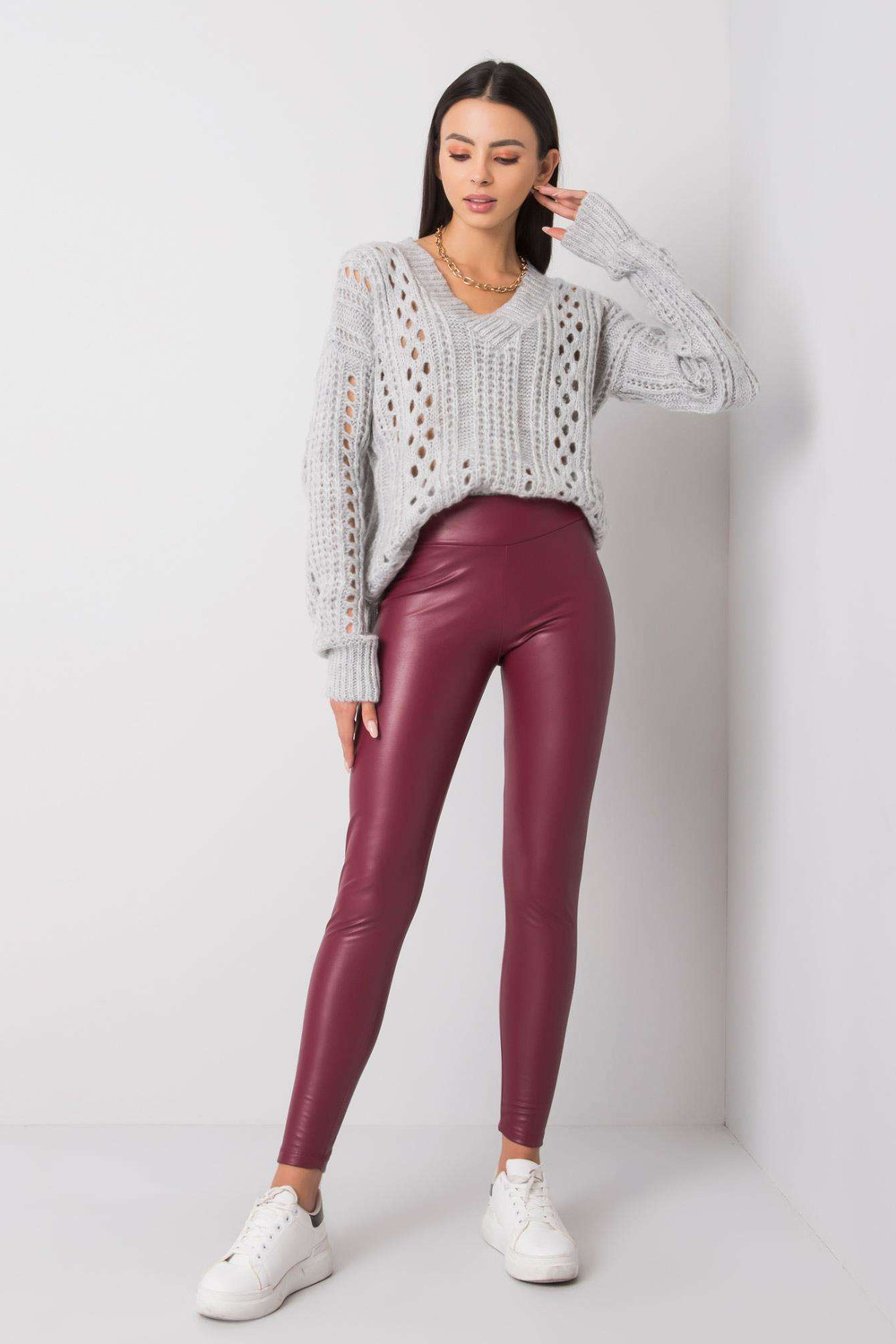 Burgundila ādas legingi no Braiena RUE PARIS .