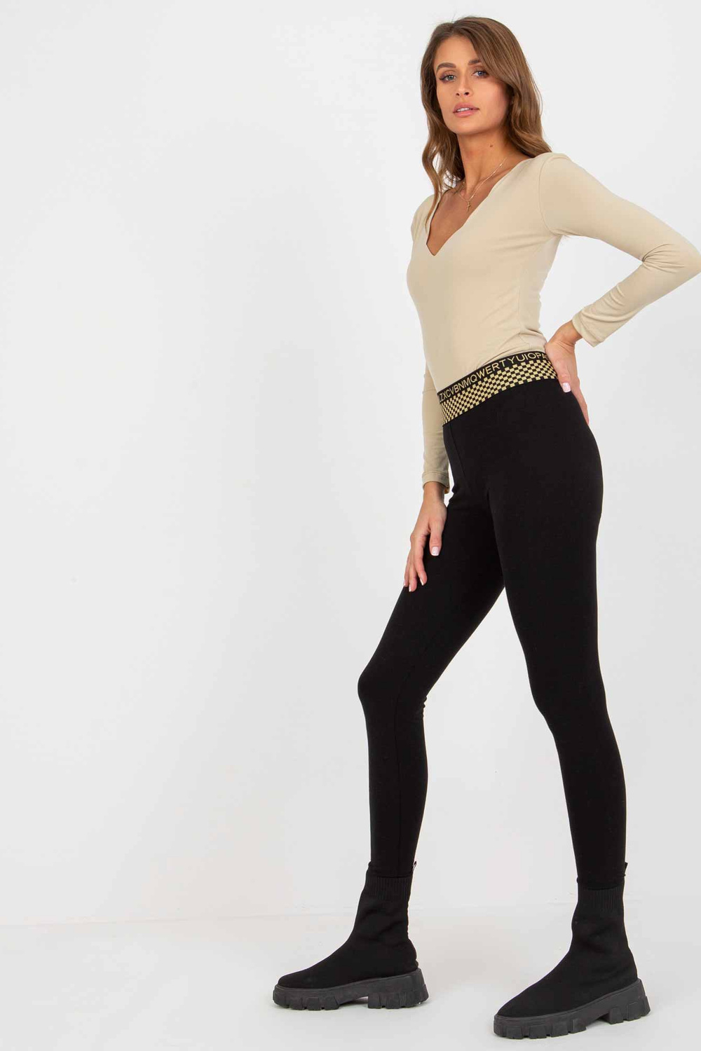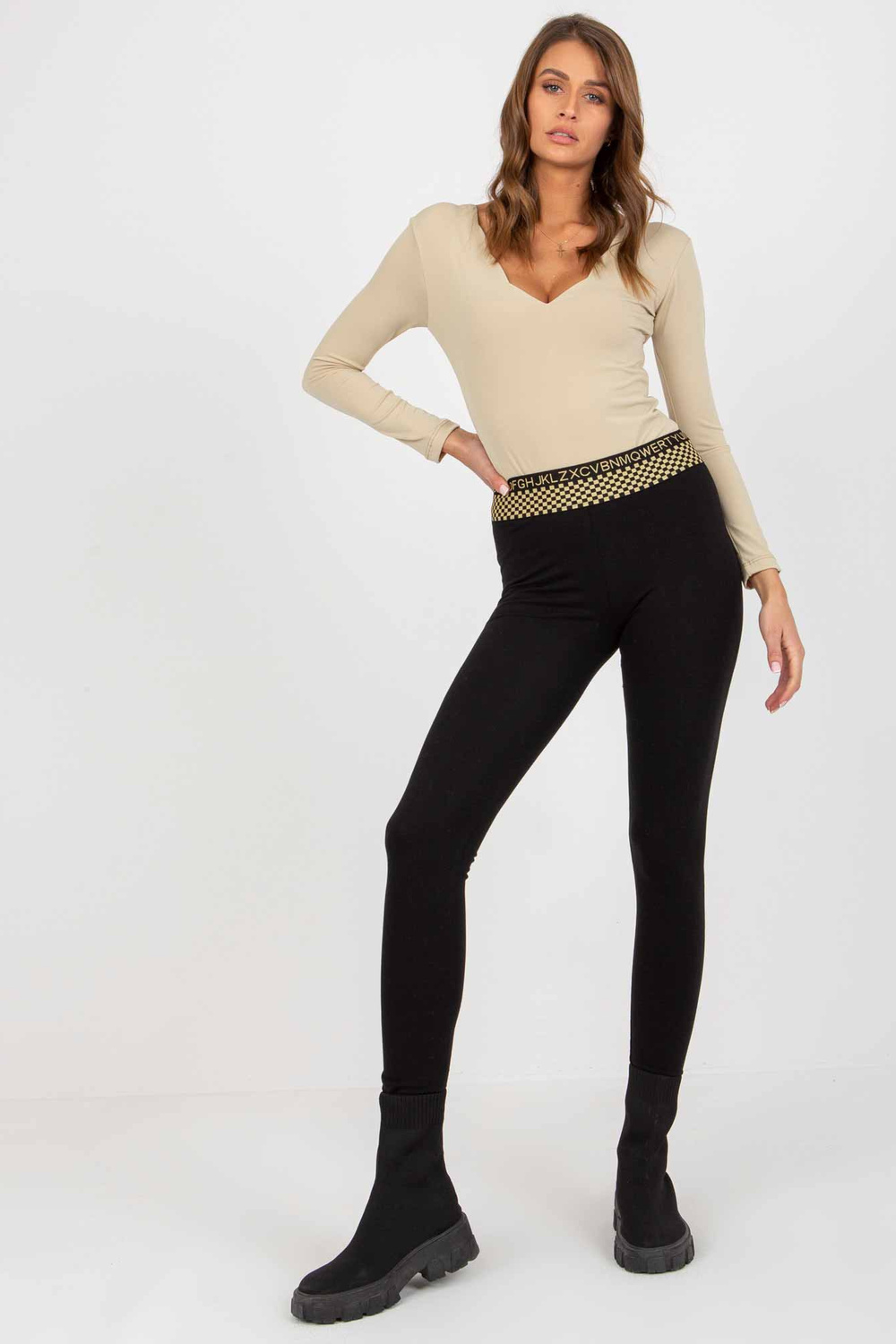 Melni sieviešu ikdienas legingi ar elastīgu jostasvietu. Produkta kods: RV-LG-8448.86 dominējošais raksts: gluds Stils: ikdienišķs gadījums: ikdienišķs, pastaigā, ārpus pilsētas Modele valkā S izmēru. Modeļa izmēri: augstums 175 cm, krūtis 84 cm, viduklis