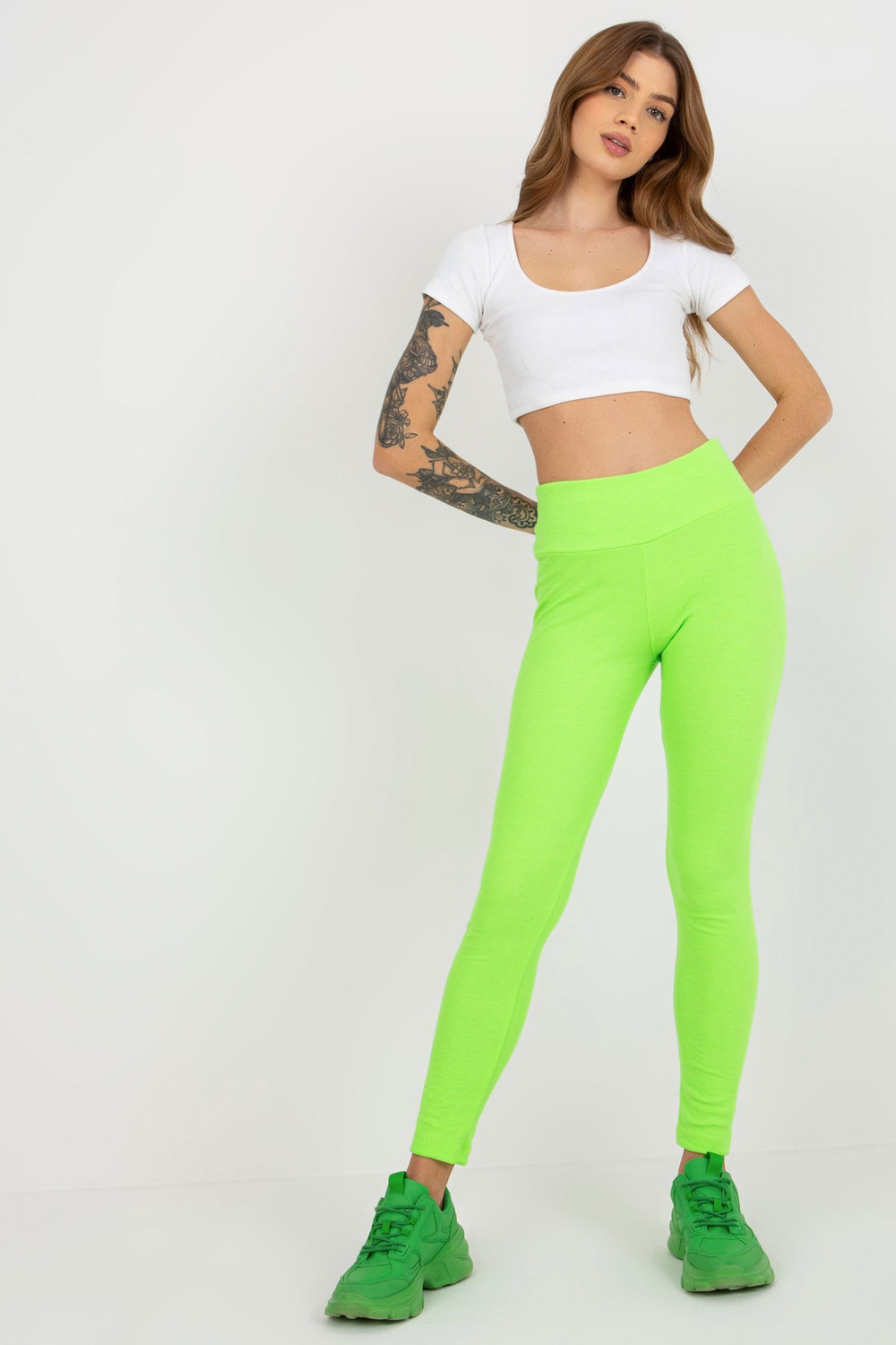 Fluo zaļi rievoti legingi ar augstu vidukli.