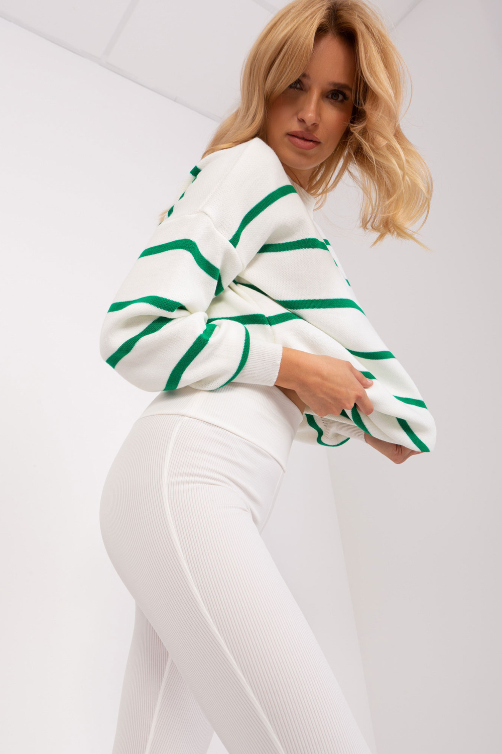 Modele valkā vienu izmēru. Modeļa izmēri: augums 175 cm, krūtis 90 cm, viduklis 66 cm, gurni 94 cm.