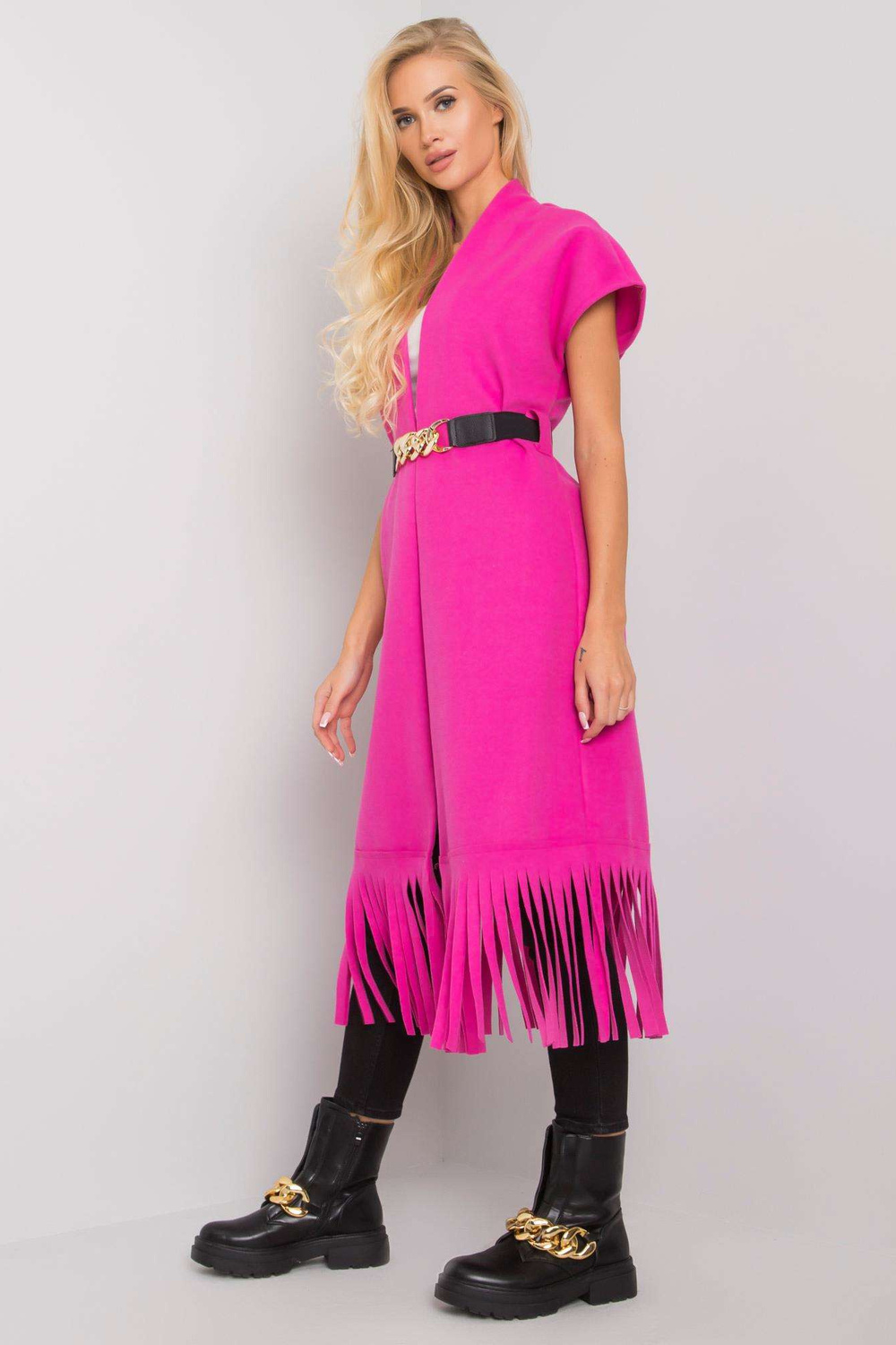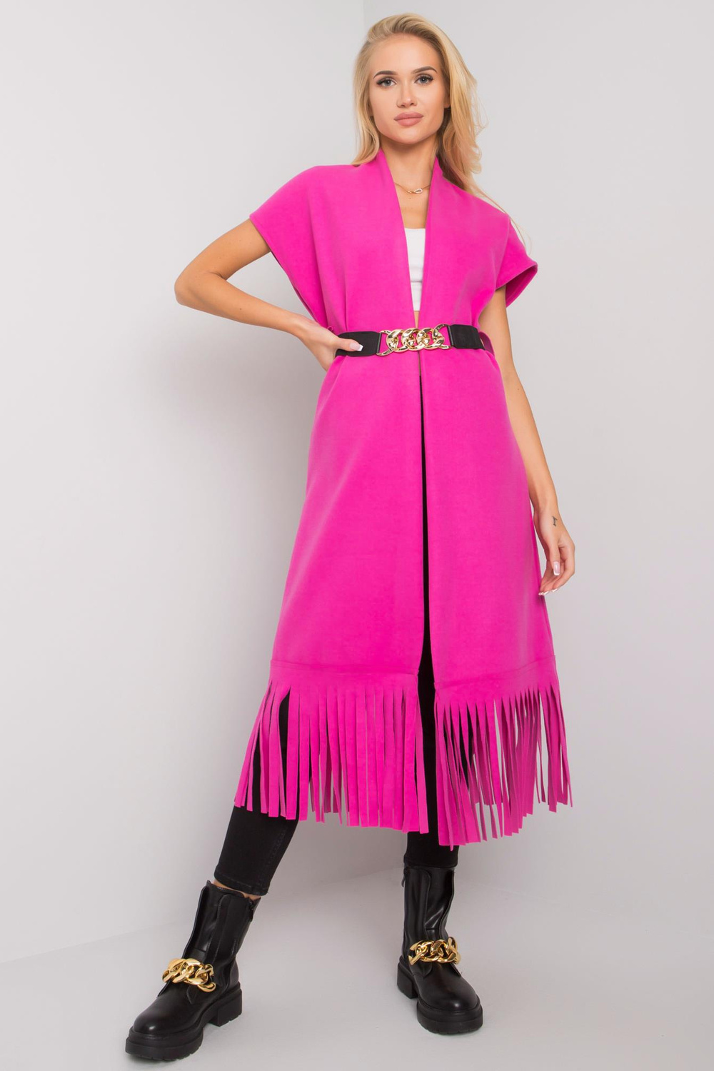 Modele valkā viena izmēra izmēru. Modeļa izmēri: augums 175 cm, krūtis 84 cm, viduklis 62 cm, gurni 93 cm.