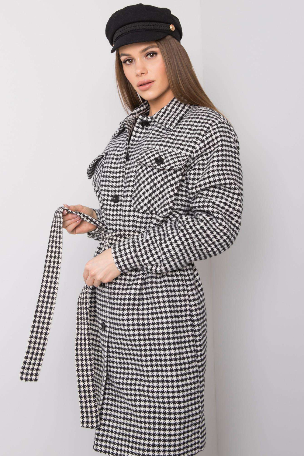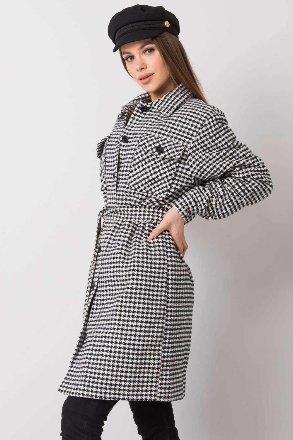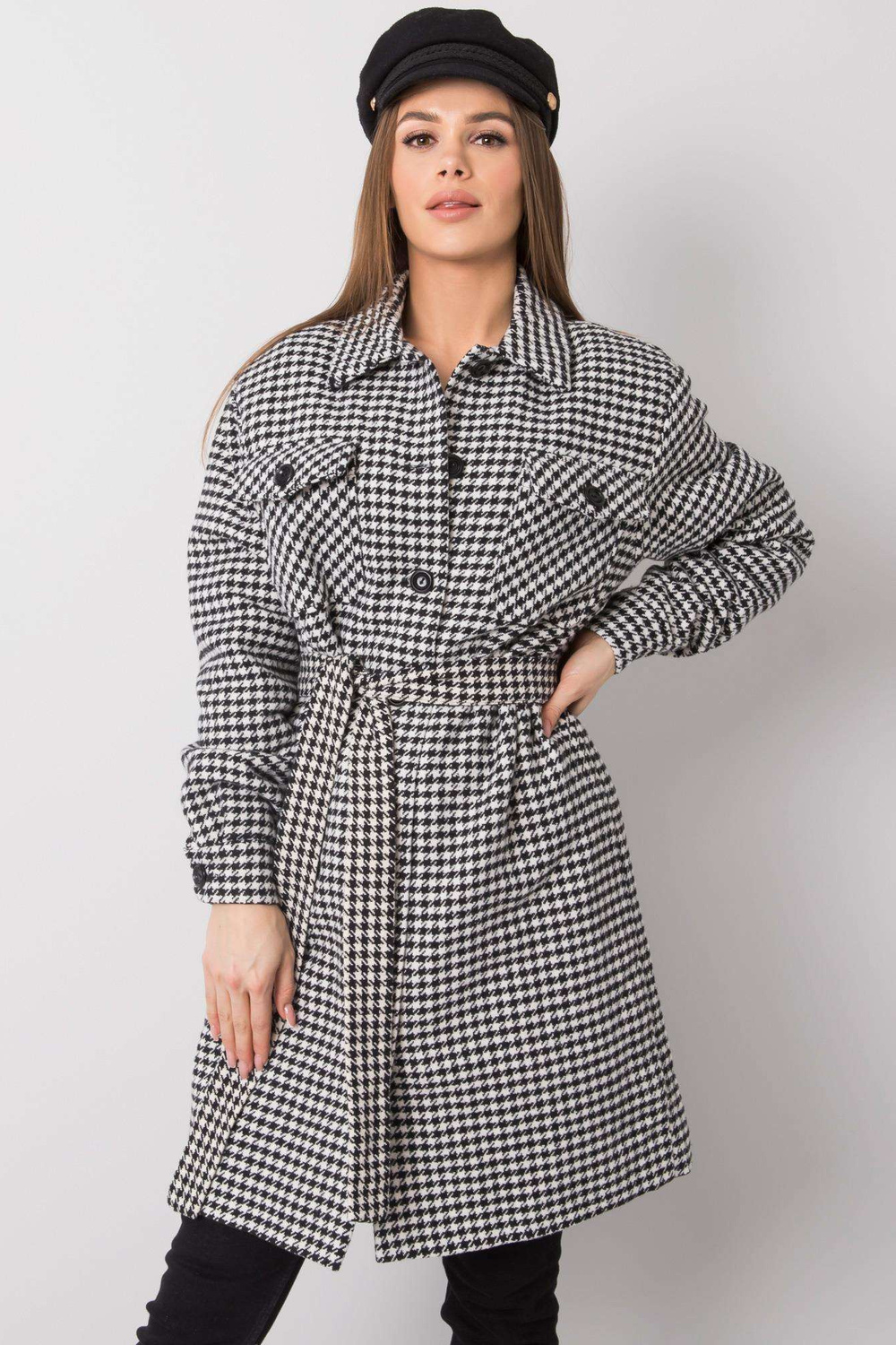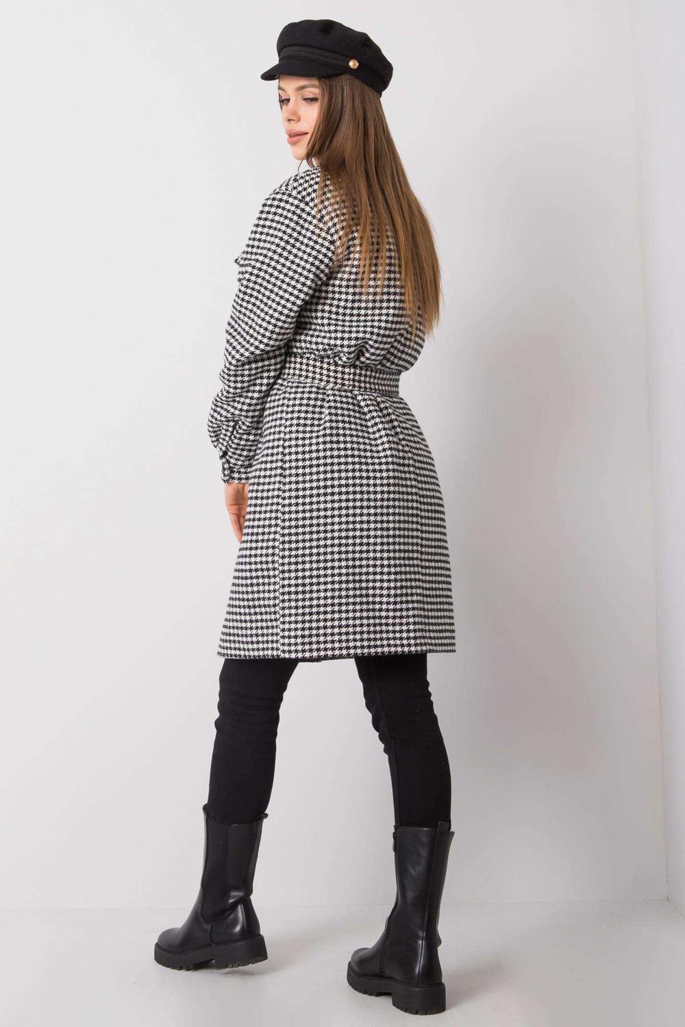 36. izmēra mēteļa izmēri, mērīti plakanā stāvoklī: paduses platums — 53 cm, kopējais garums - 93 cm, piedurknes garums - 64 cm