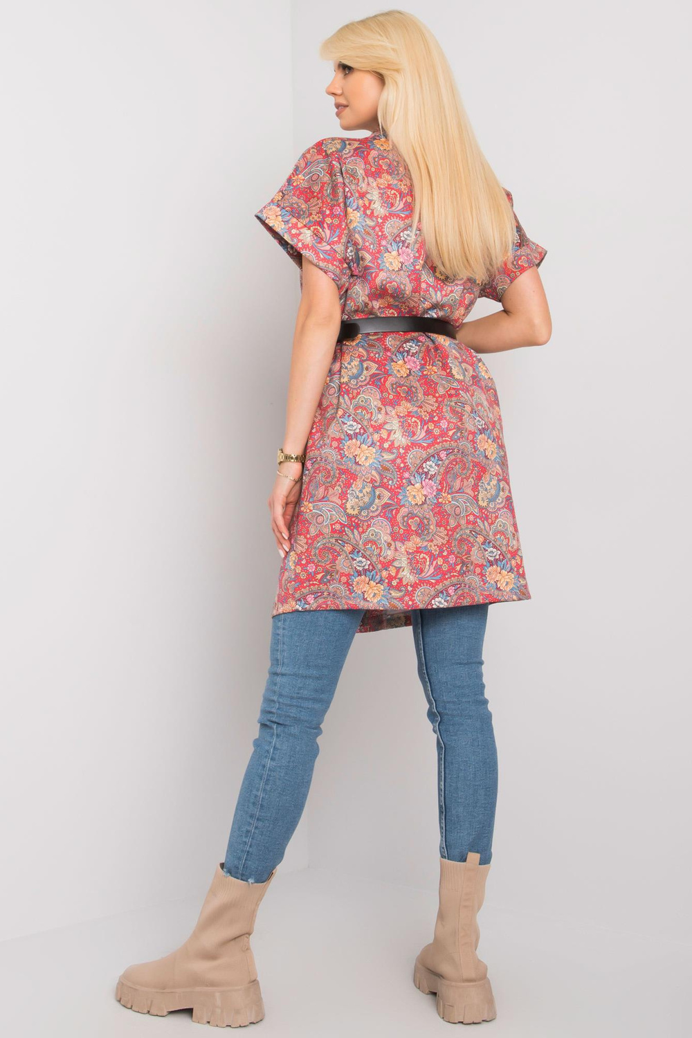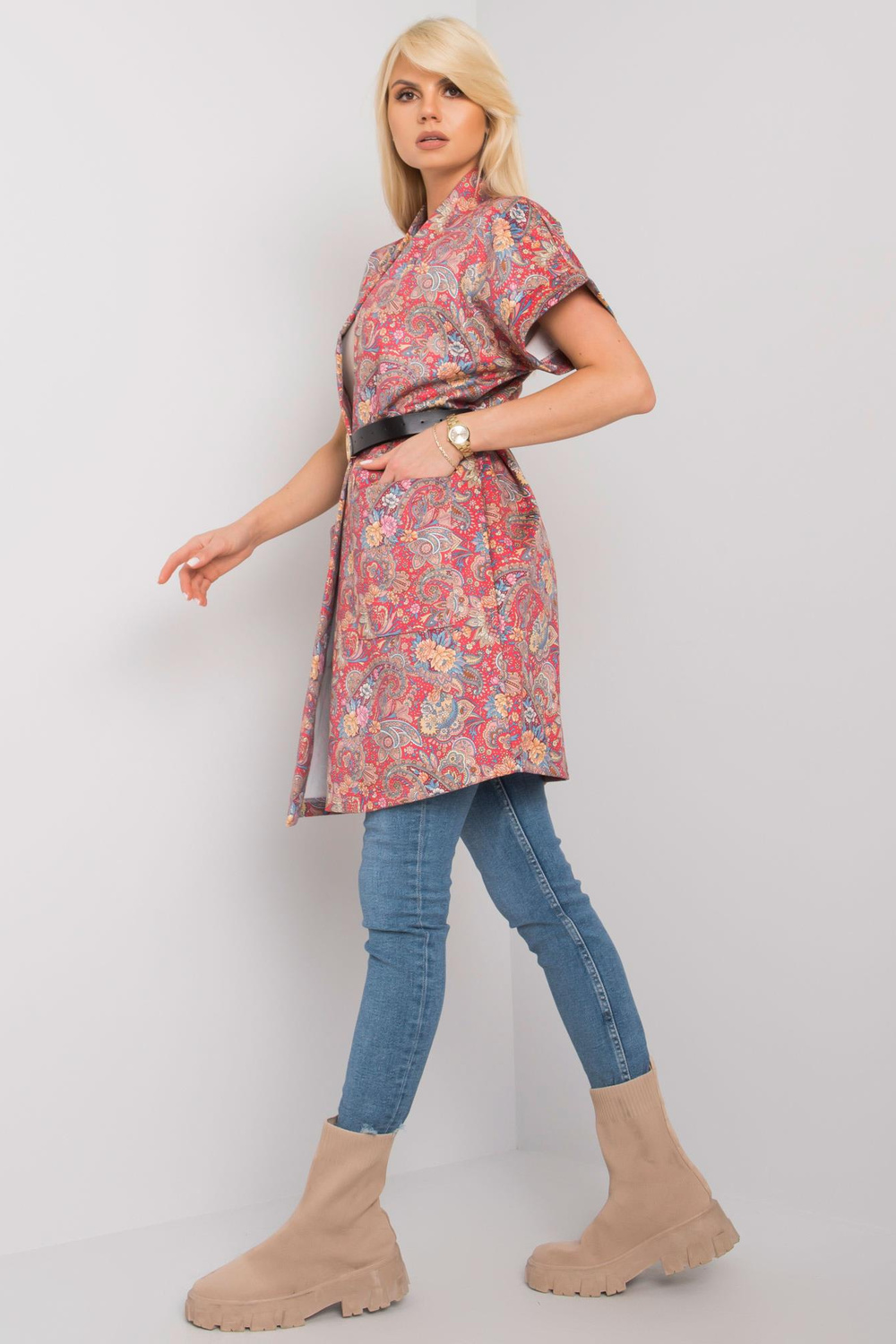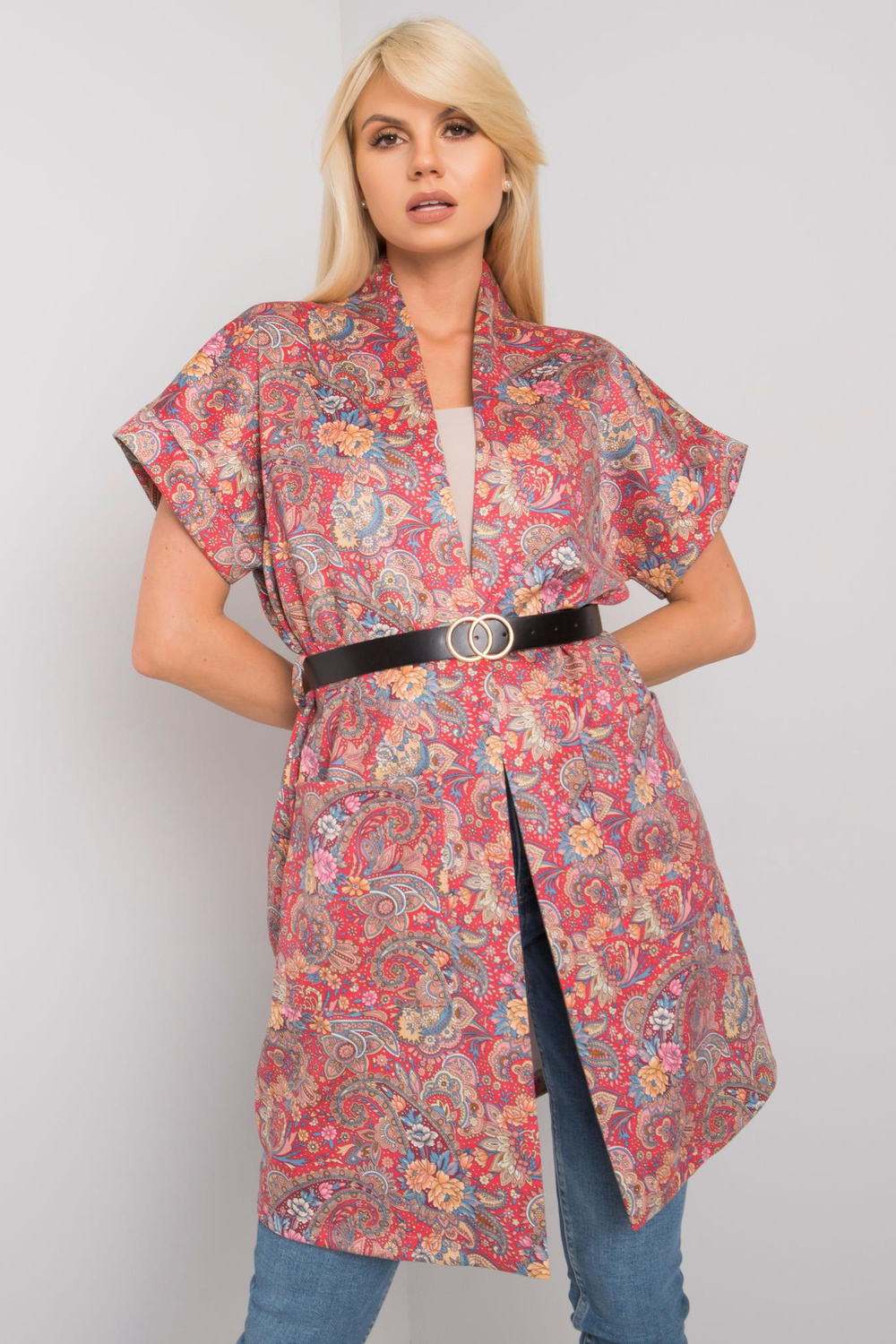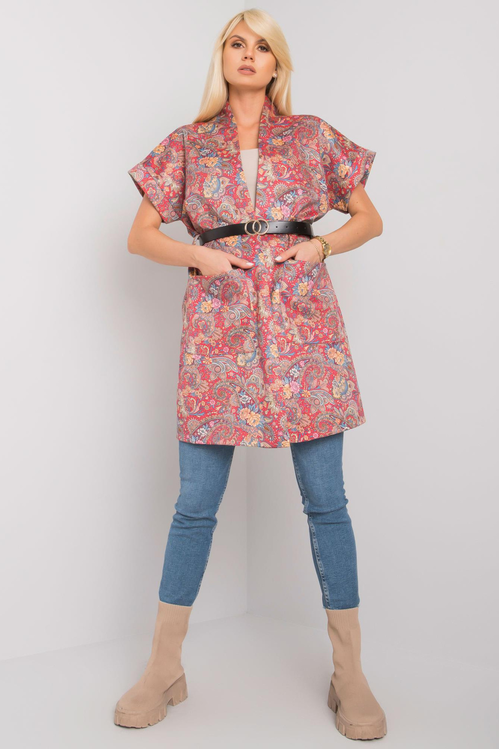 Sonja sarkans mētelis ar īsām piedurknēm. Aksesuāri: siksniņa, kabatas materiālssastāvs: 95% poliesters, 5% elastāns mazgāšanas metode: mazgāšana veļasmašīnā 30°C Modelis valkā vienu izmēru. Modeļa izmēri: augstums 175 cm, krūtis 85 cm, viduklis 63 cm, gurni 95 cm.