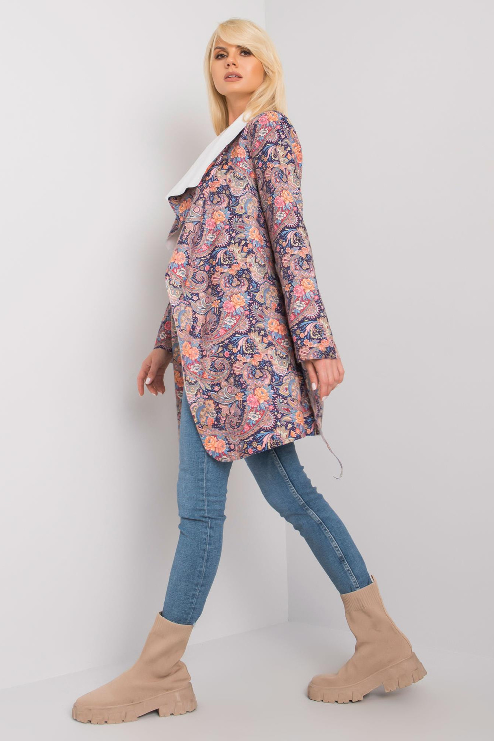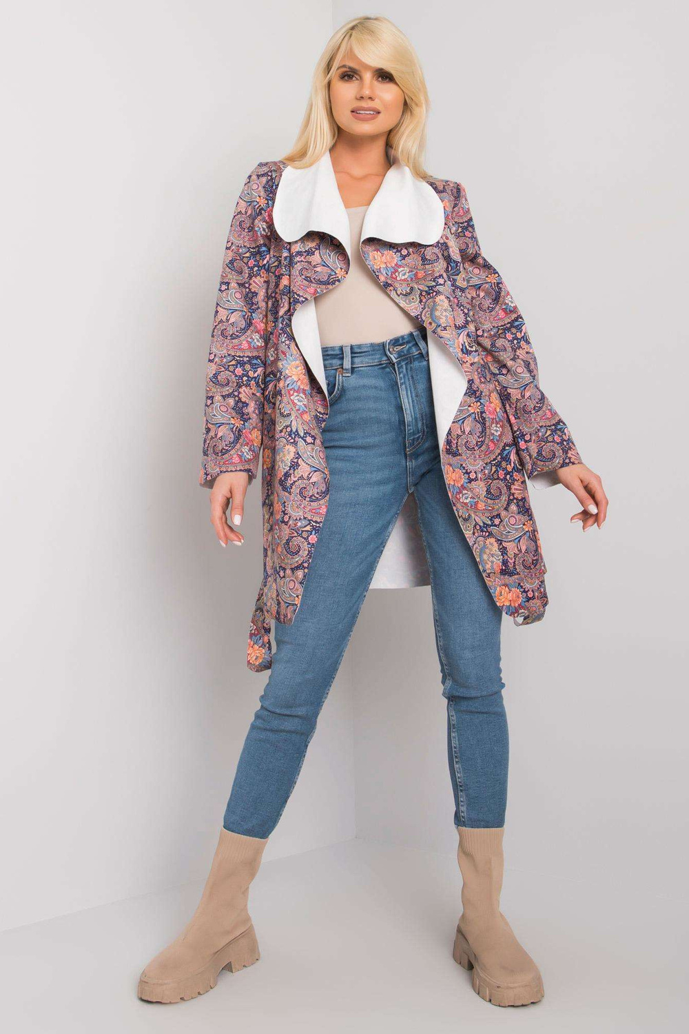 Sieviešu mētelis ar purpursarkaniem rakstiem Aggie. ekstras: siksniņas materiālssastāvs: 95% poliesters, 5% elastāns mazgāšanas metode: veļas mašīna 30°C. Modelis valkā viena izmēra izmēru. Modeļa izmēri: augums 175 cm, krūtis 85 cm, viduklis 63 cm, gurni 95 cm. Viena izmēra mētelis