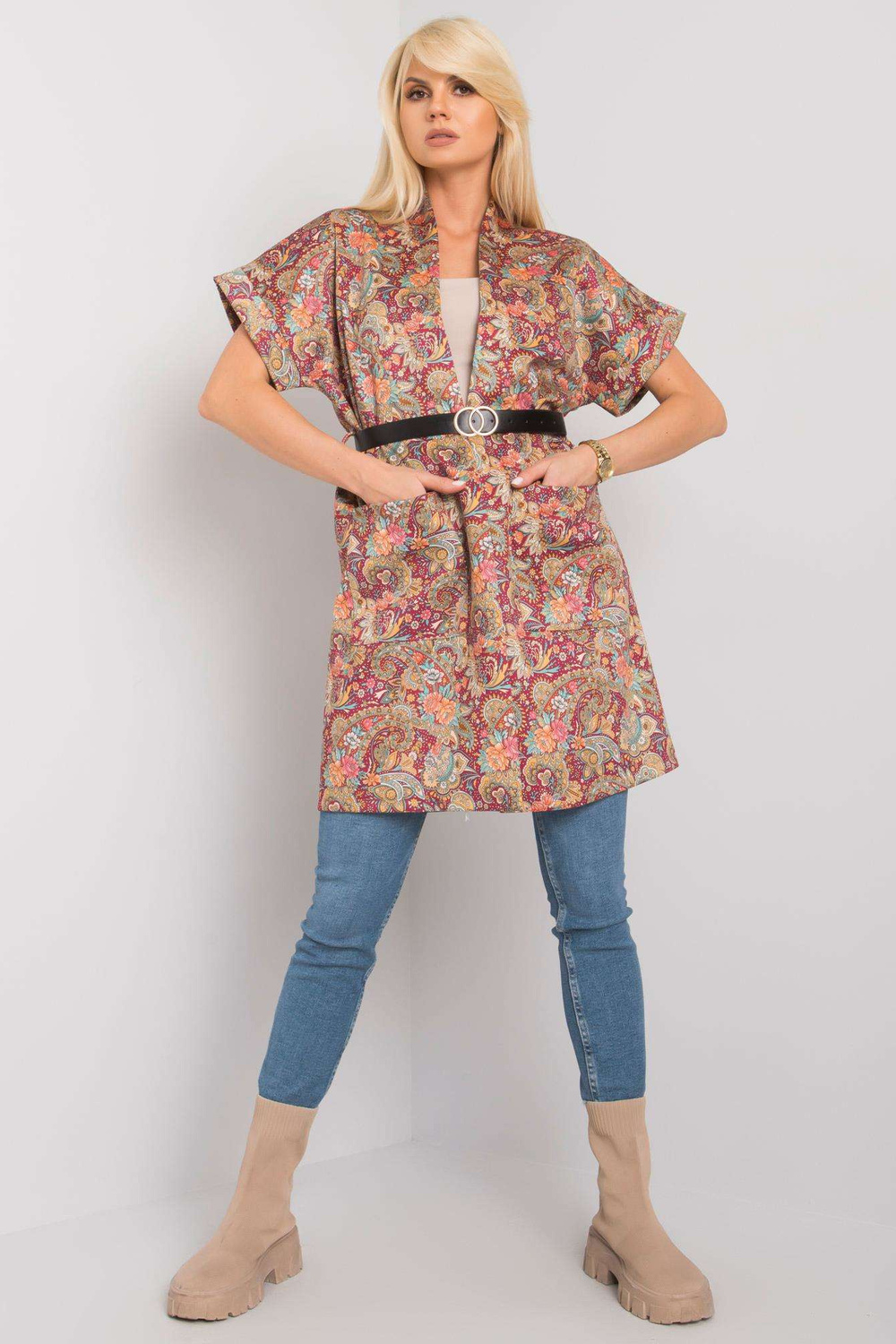 Burgundijas mētelis ar īsām piedurknēm Sonja.