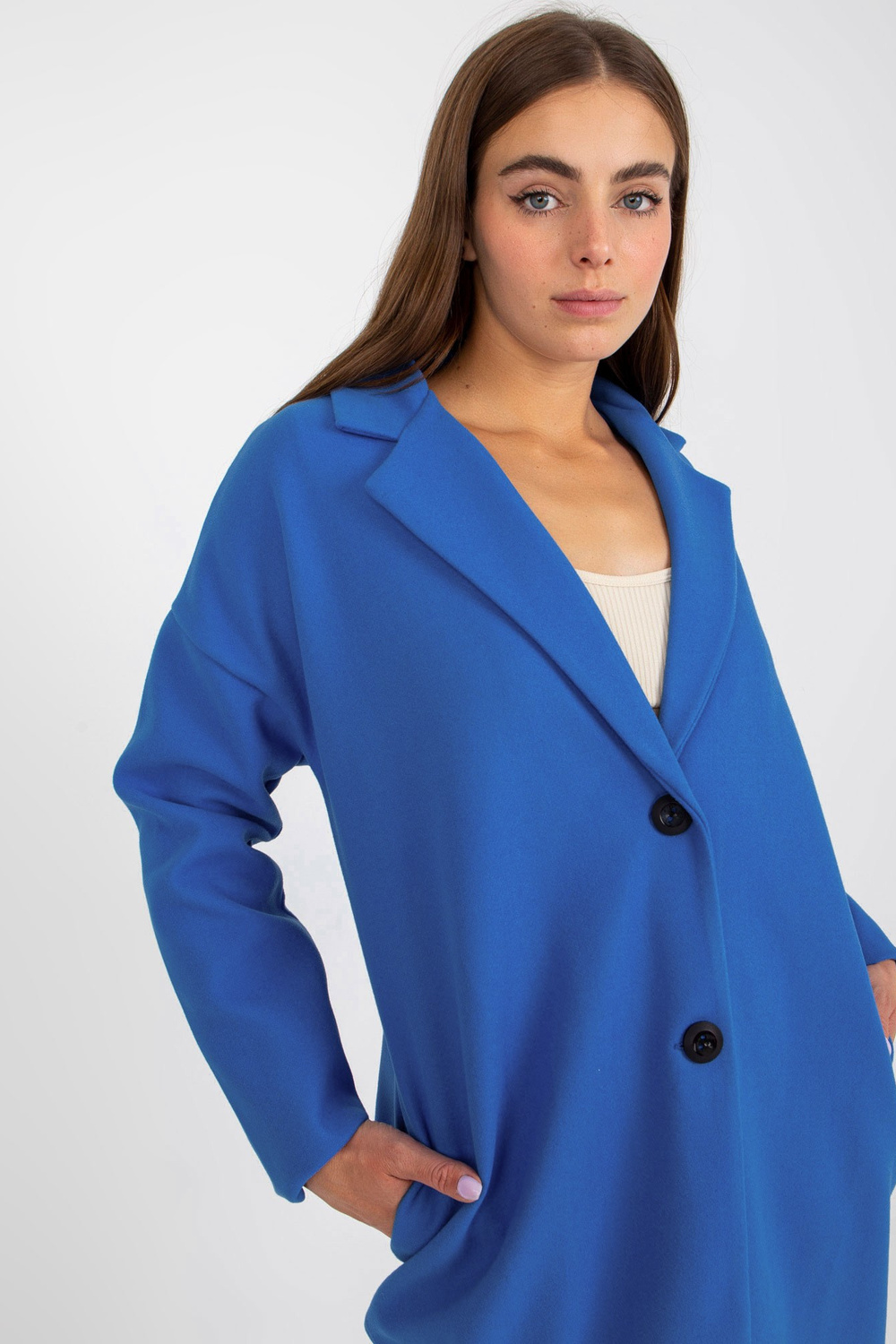 Tumši zils sieviešu mētelis ar pogas aizdari OCH BELLA.