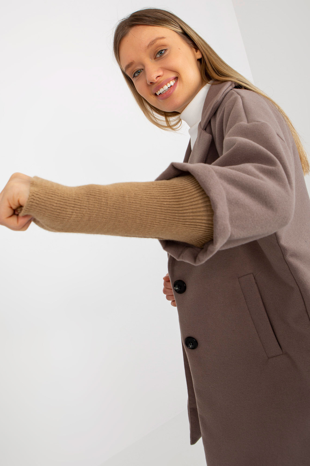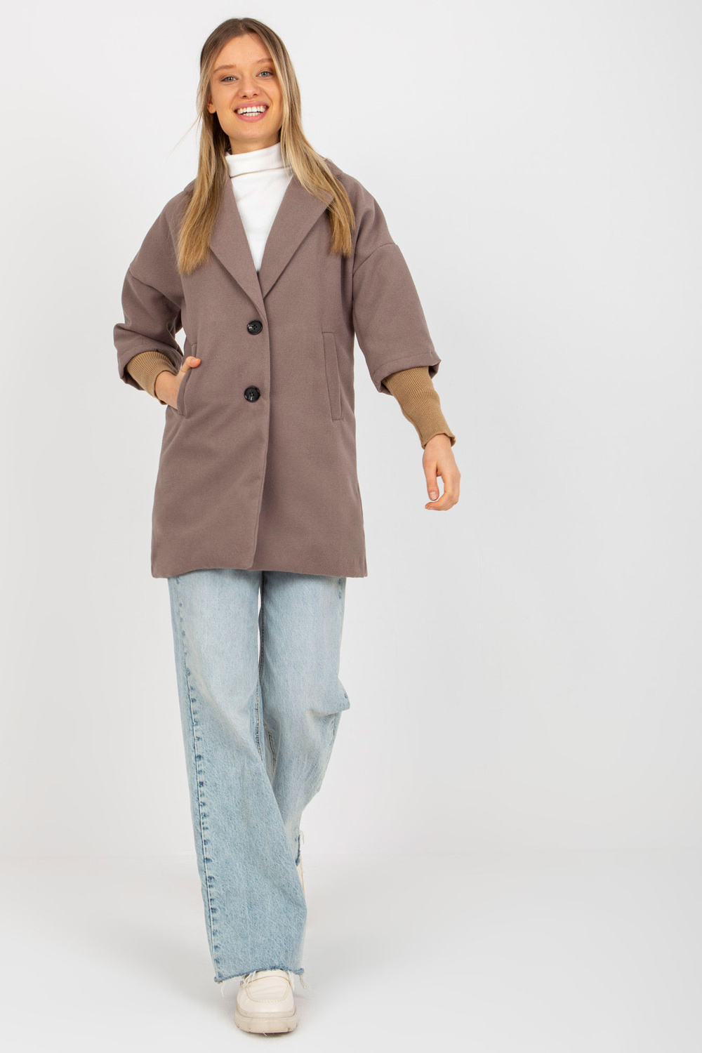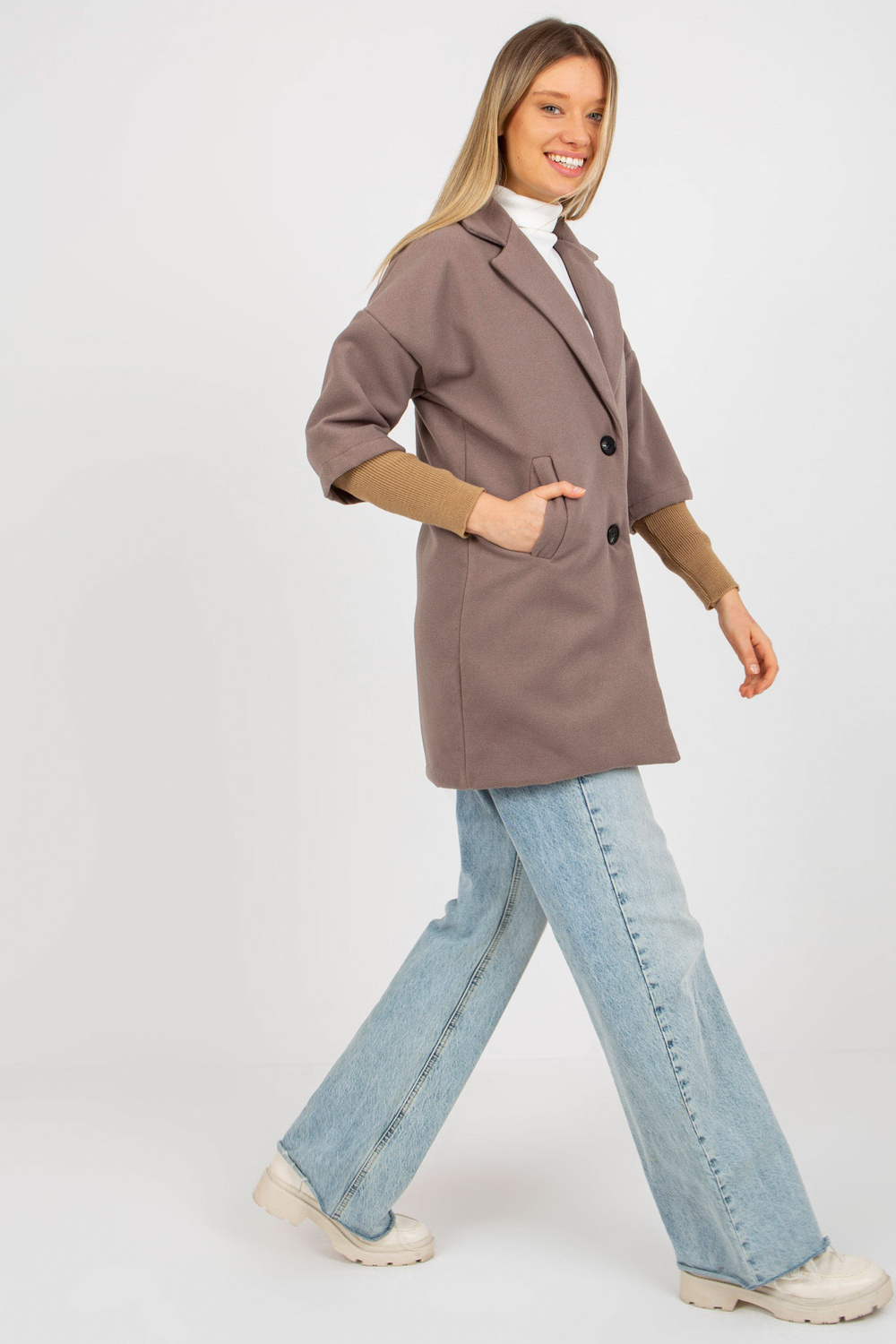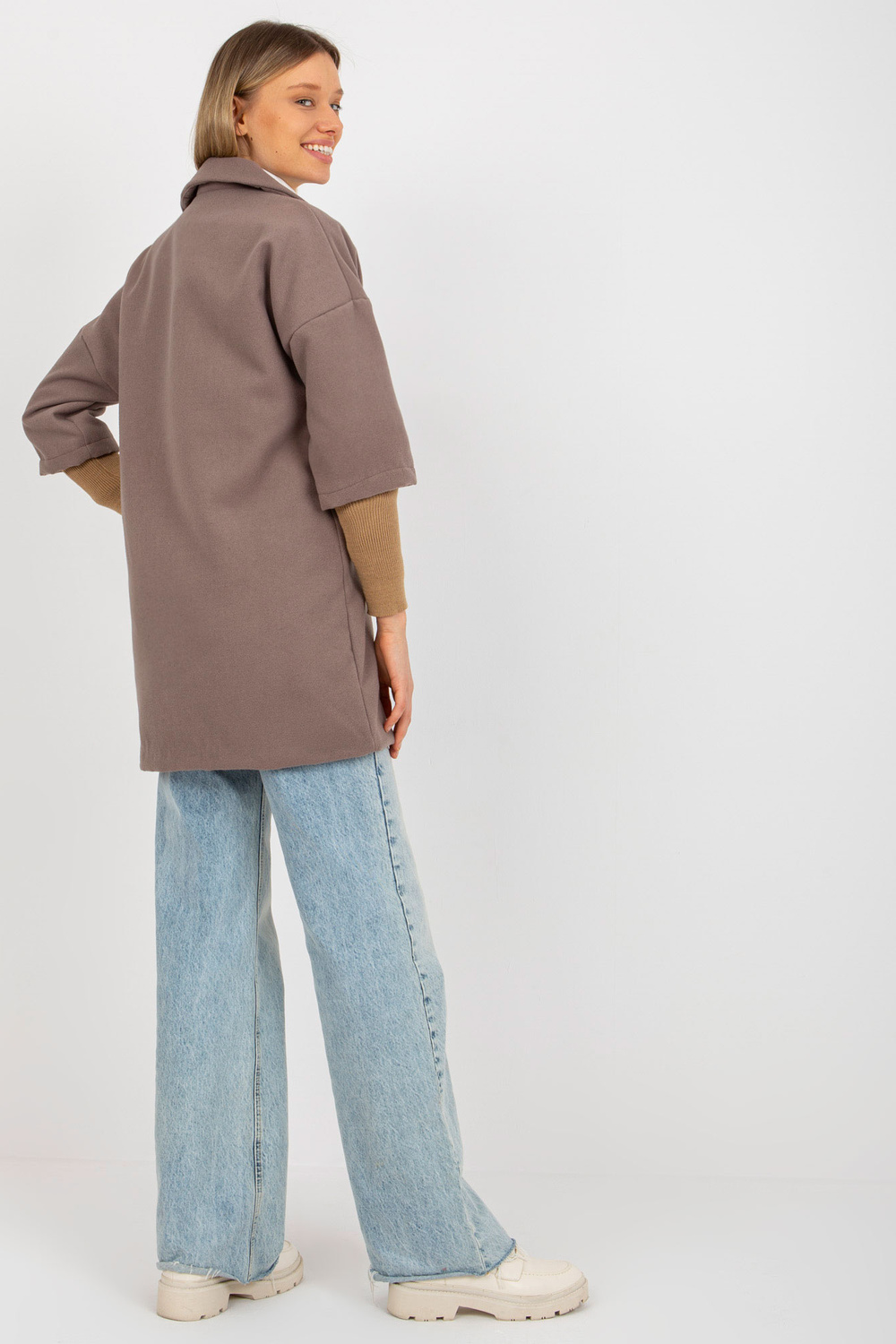 Brūns sieviešu mētelis ar kabatām OCH BELLA.