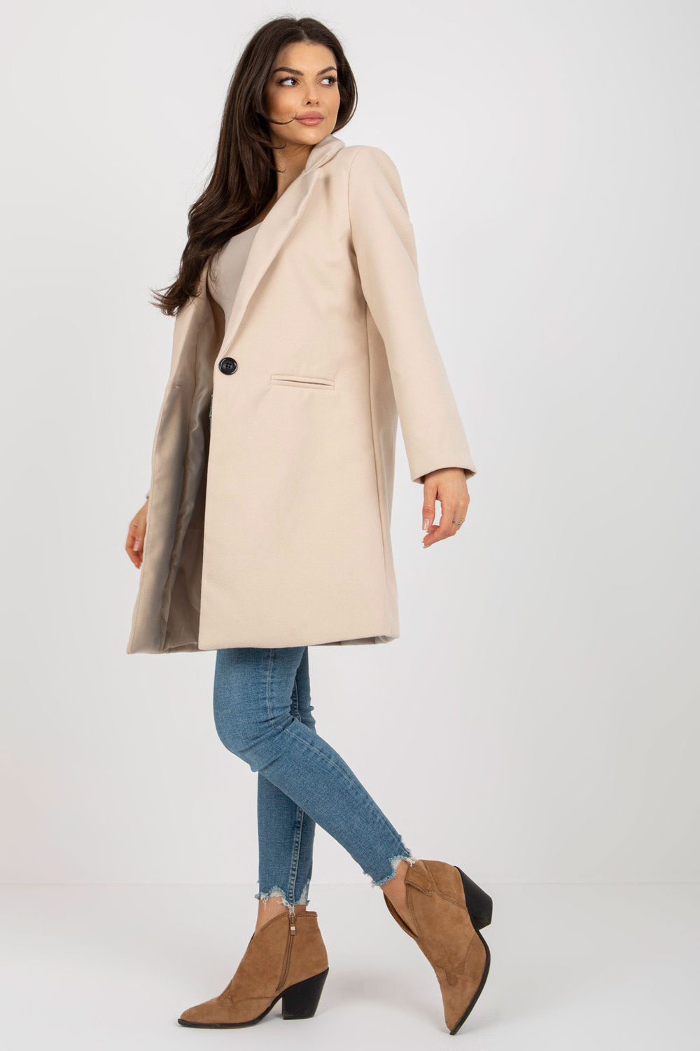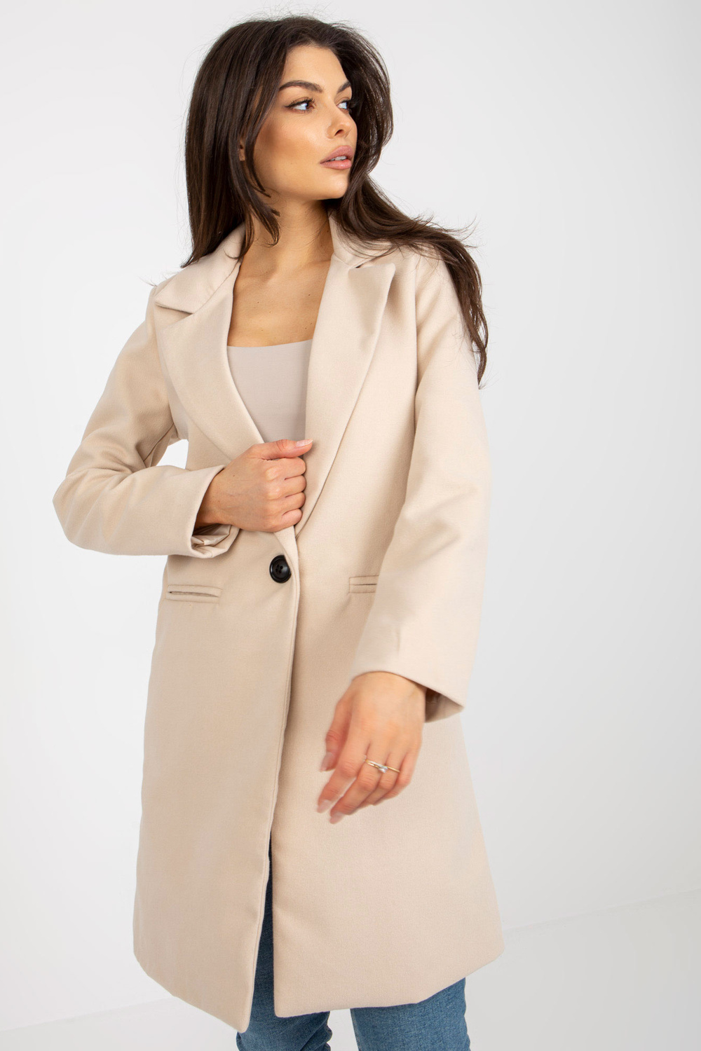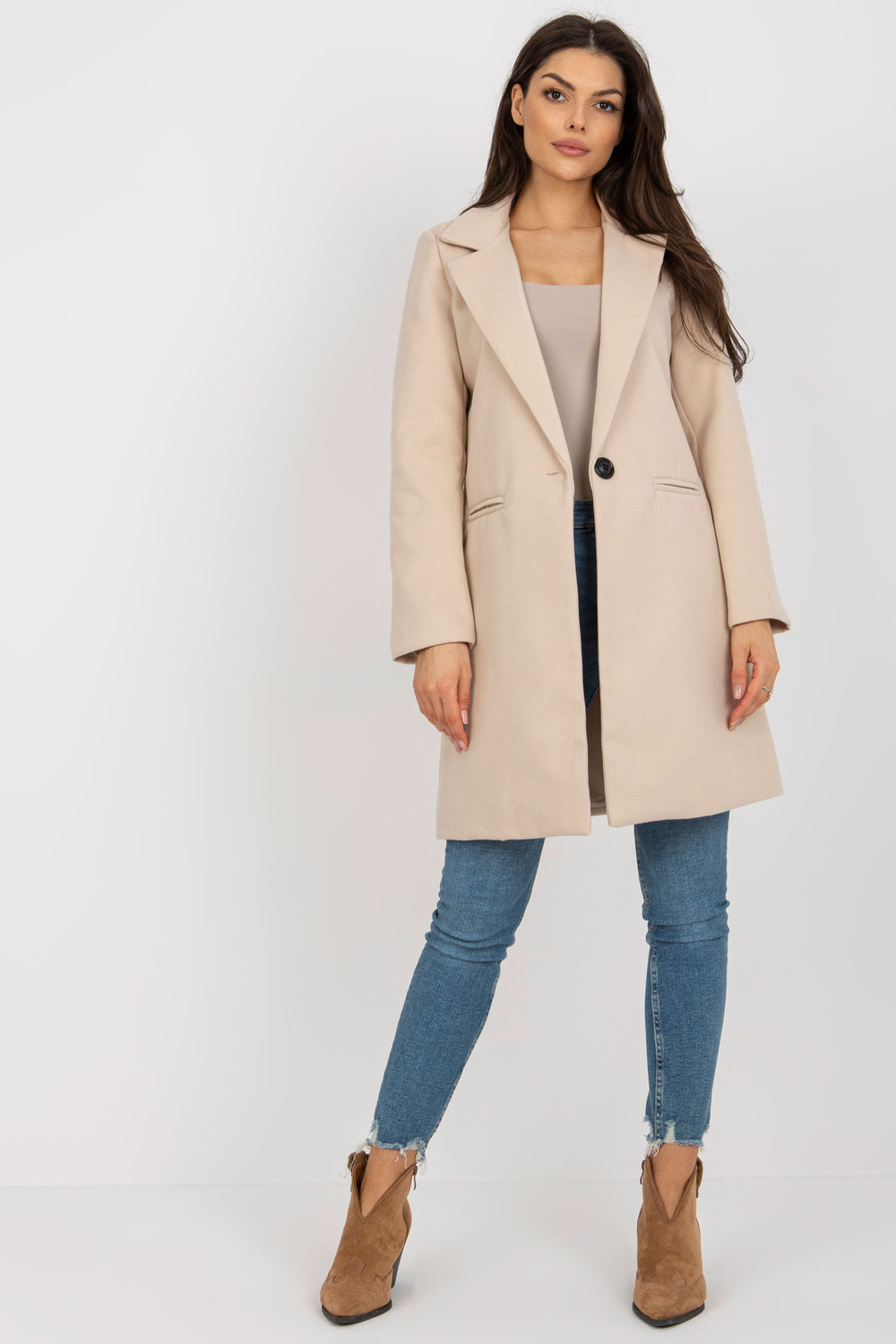 Bēšs elegants sieviešu mētelis ar viskozi OCH BELLA.