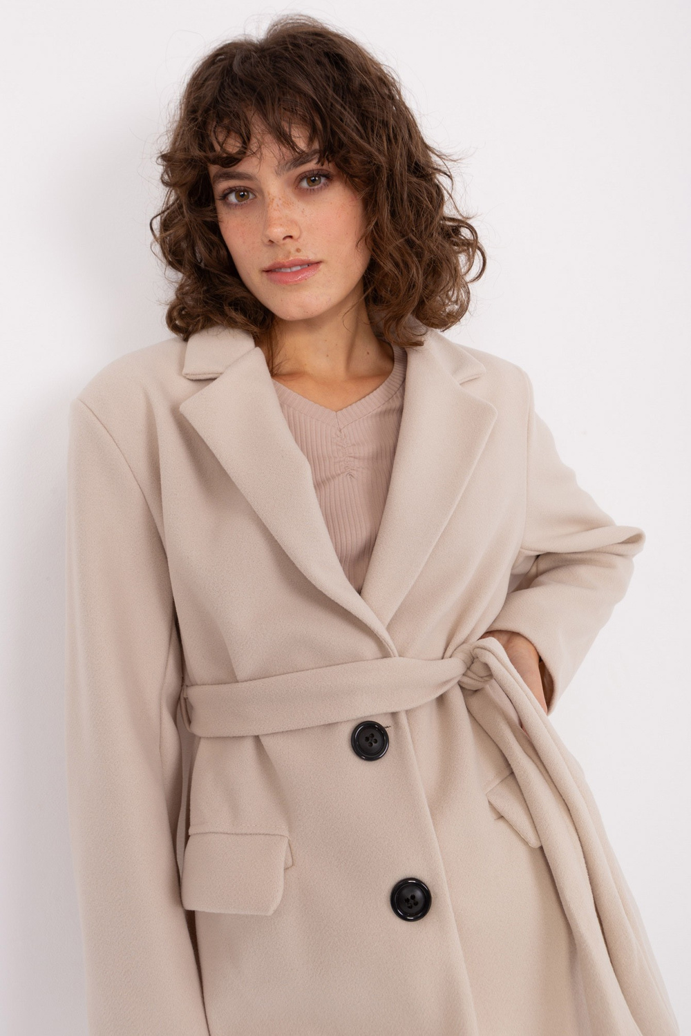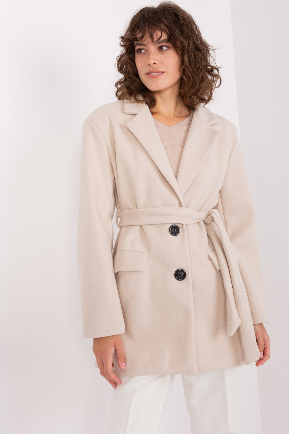 Gaiši bēšs īss mētelis ar jostu OCH BELLA .