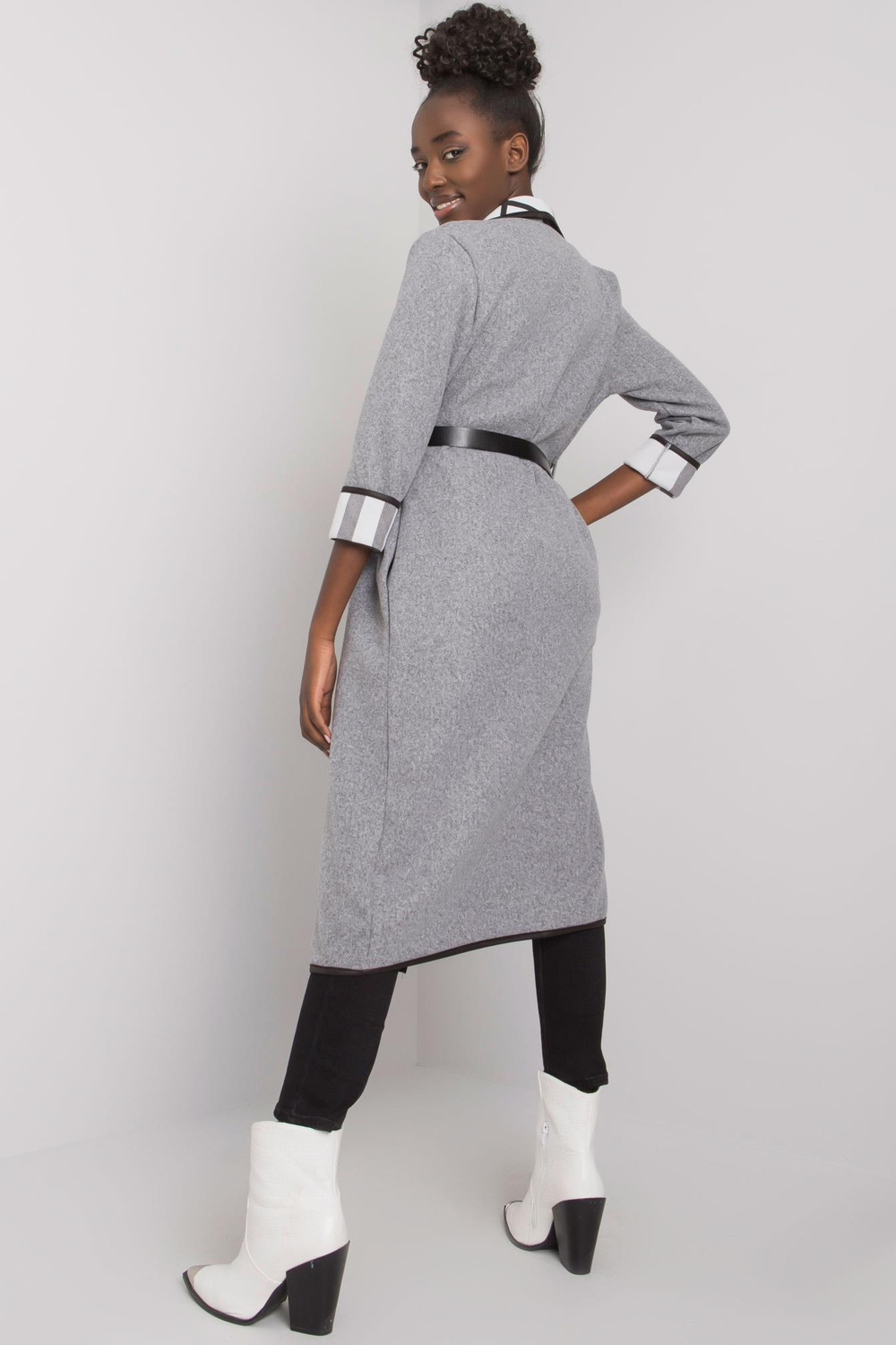 Graymelange mētelis ar Annis jostu. ekstras: siksniņa Materiālssastāvs: 100% poliesters mazgāšanas metode: veļas mašīna 30°C. Modelis valkā viena izmēra izmēru. Modeļa izmēri: augums 170 cm, krūtis 84 cm, viduklis 60 cm, gurni 93 cm. Viena izmēra mēteļa izmēri me