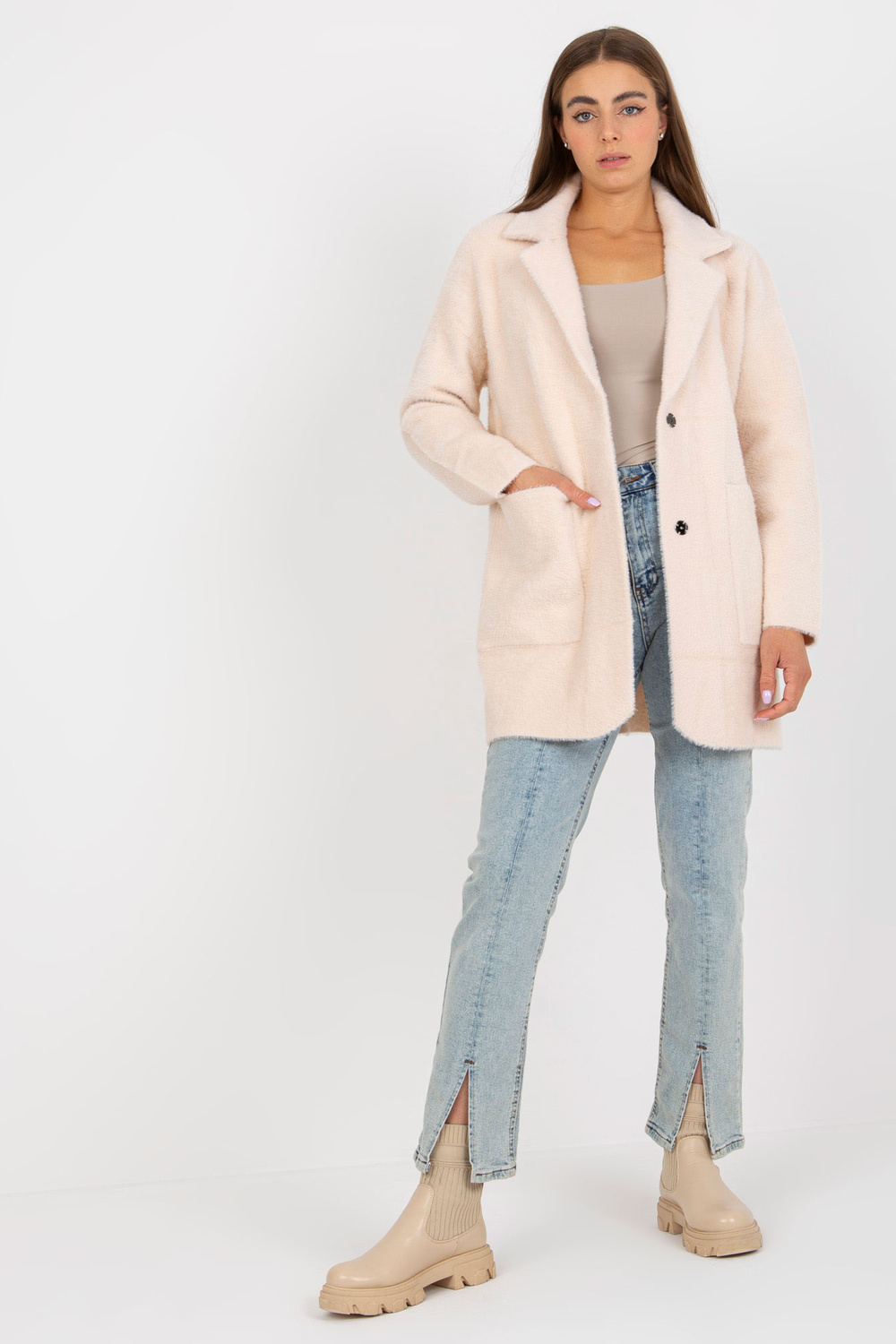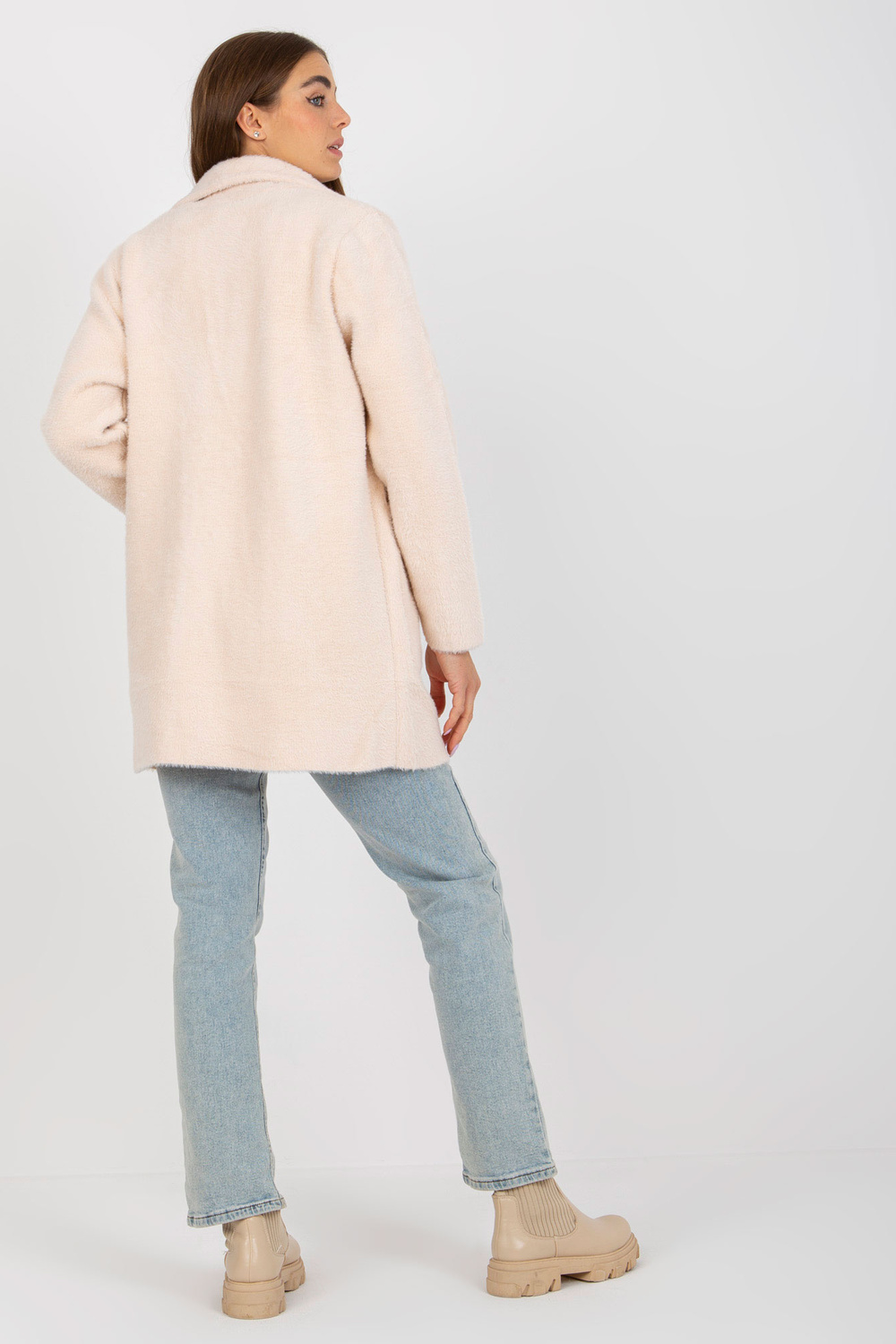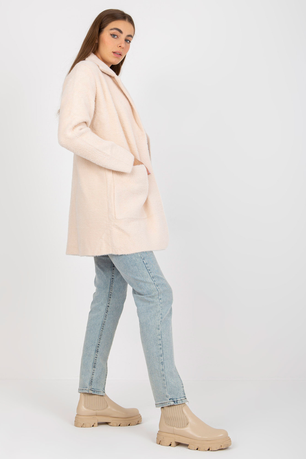 Gaiši rozā brīvs alpakas kažoks ar vilnas piedevu.