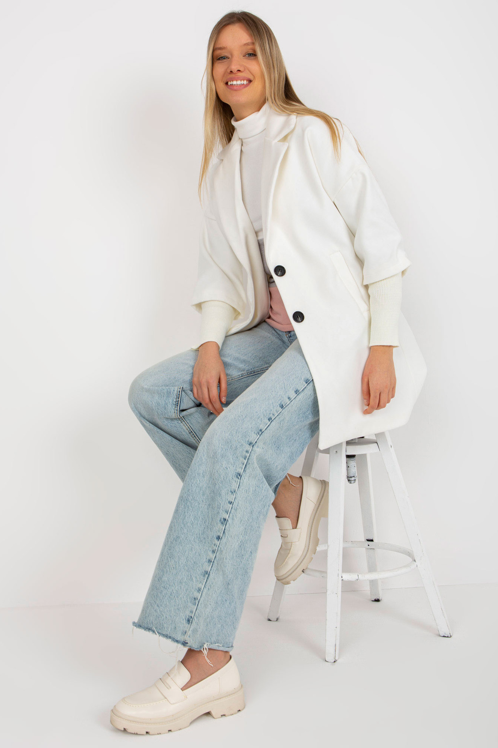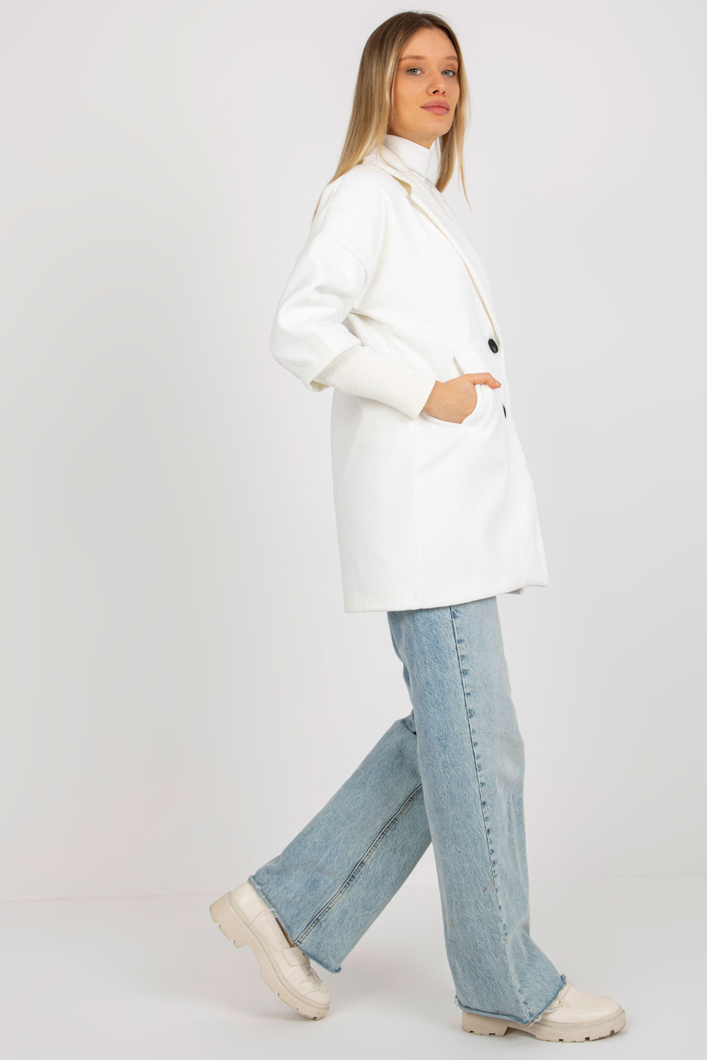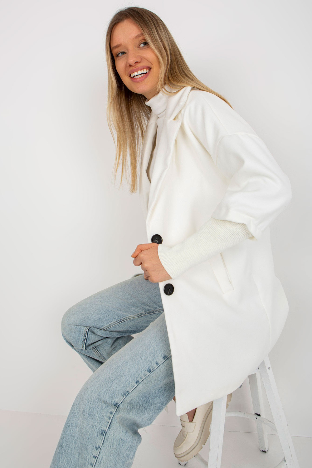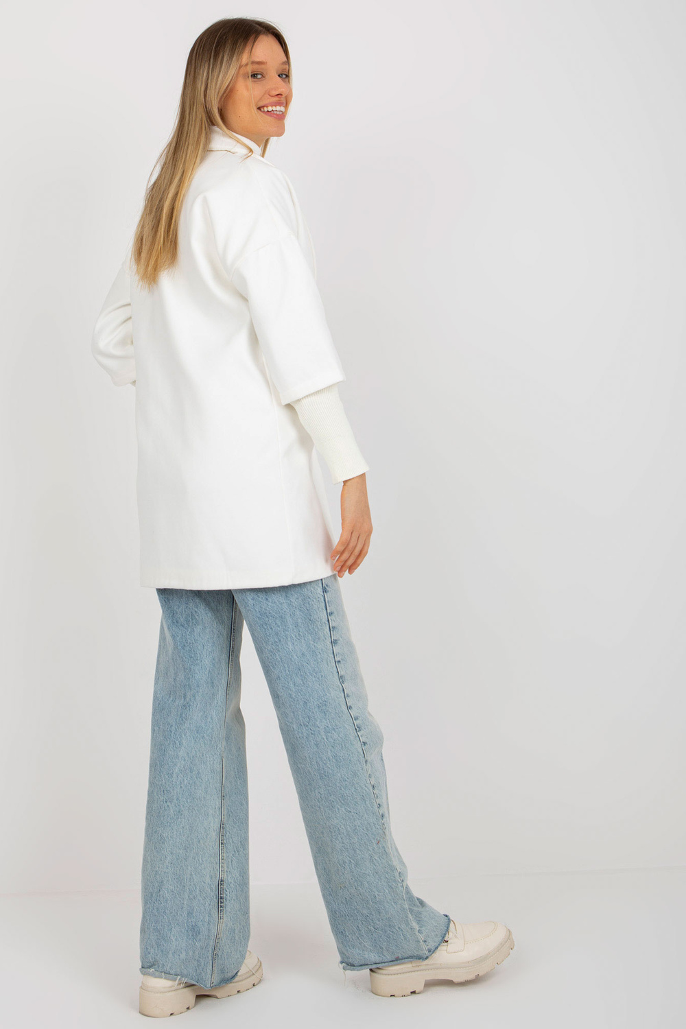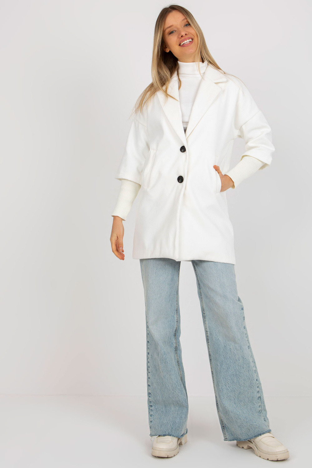Ecru sieviešu mētelis ar izgriezumiem piedurknēs OCH BELLA.