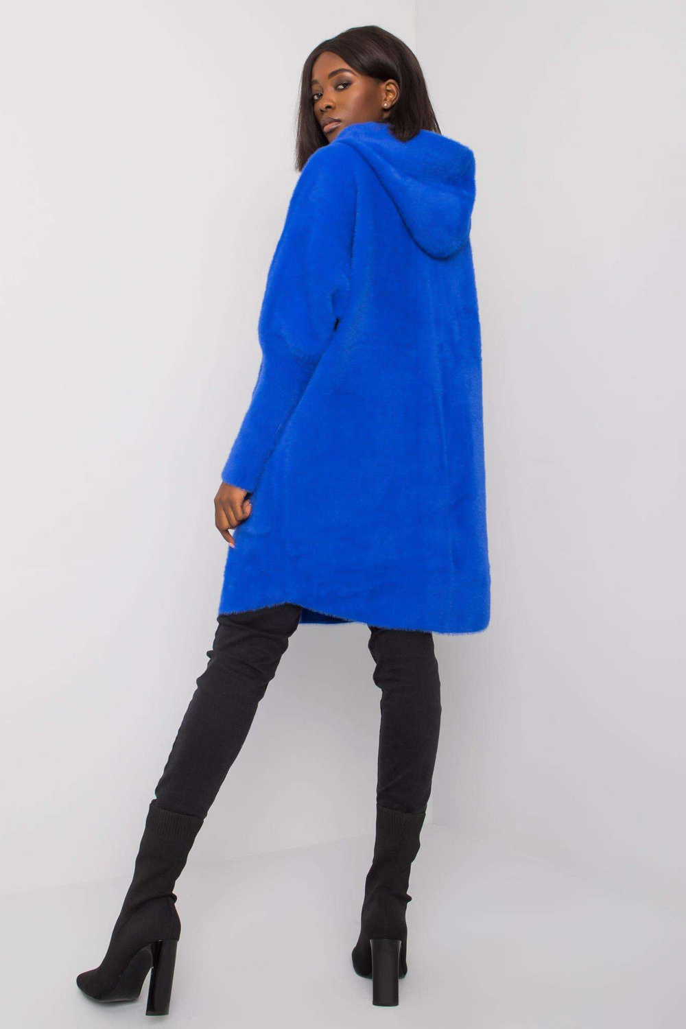 Kobalta alpaka mētelis ar kapuci.