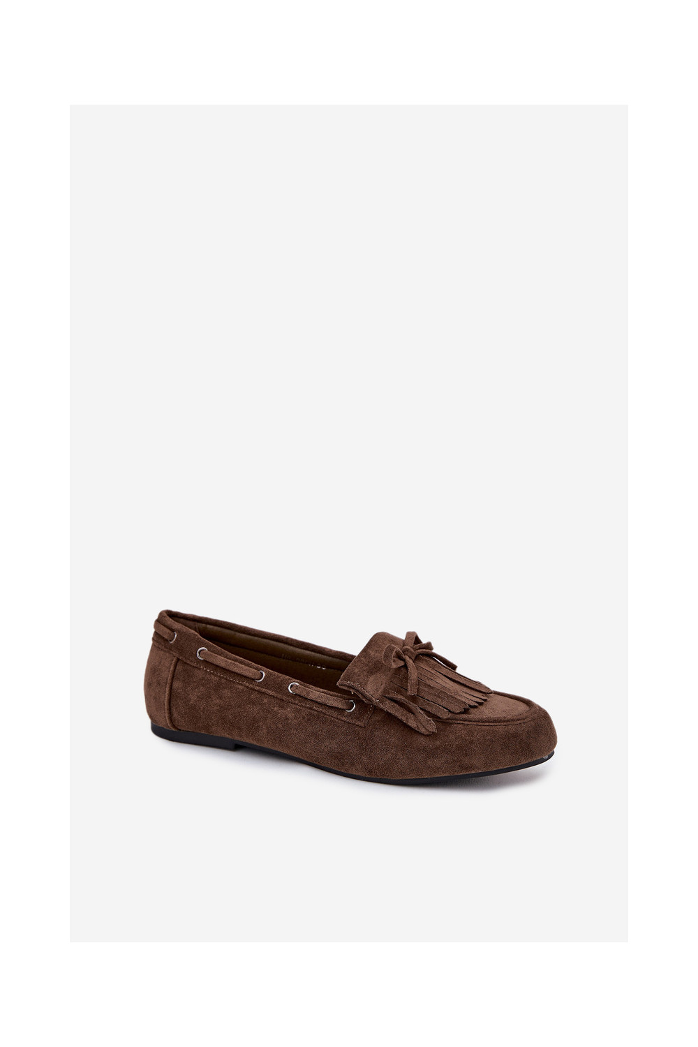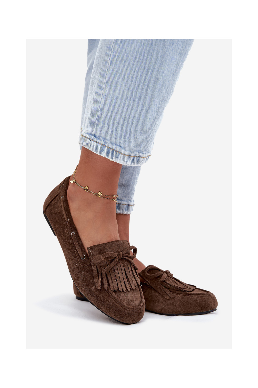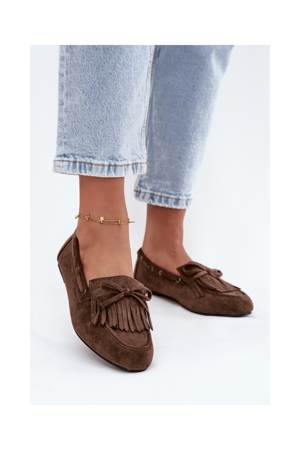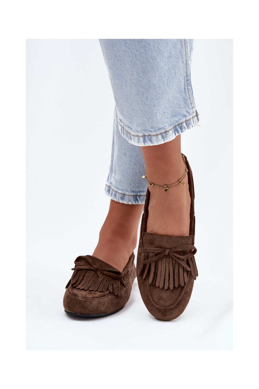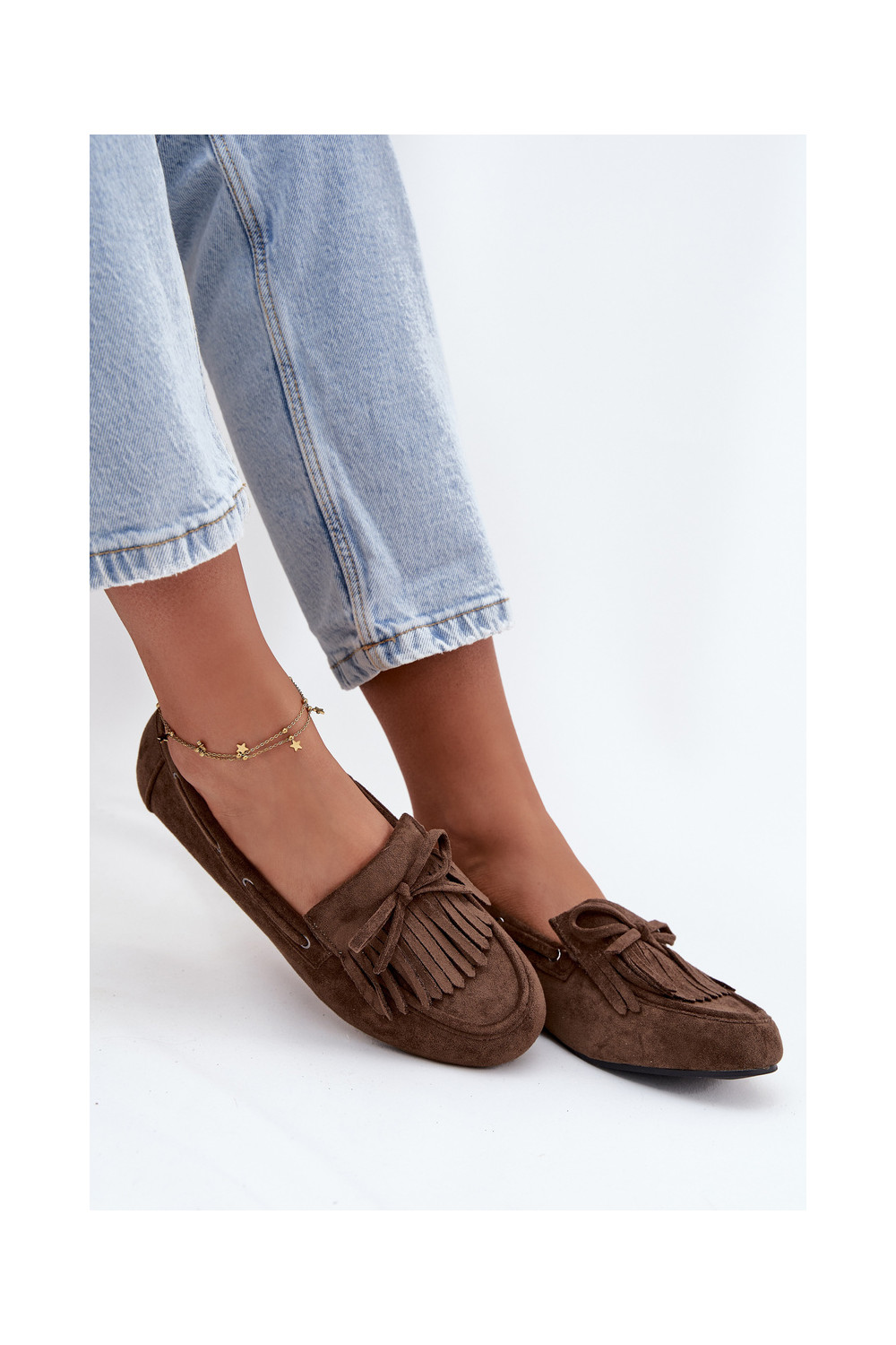 Sieviešu mokasīni ar bārkstīm un kokardu haki krāsā "Olivianne"