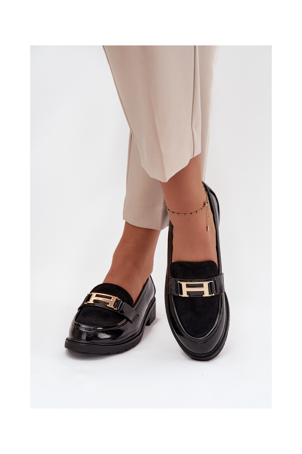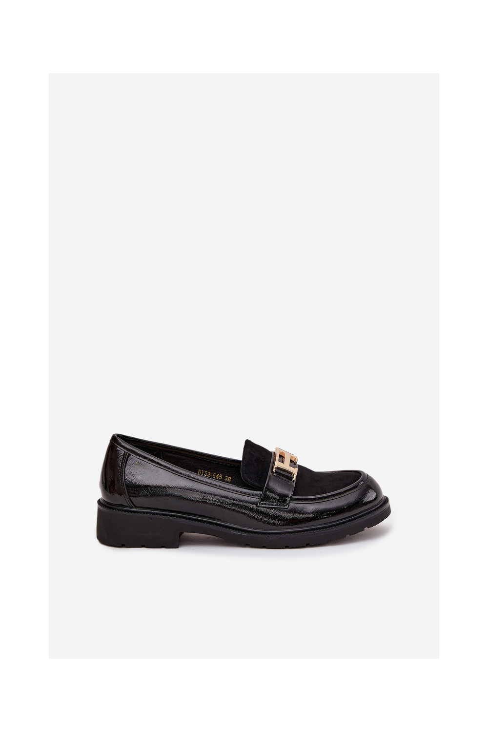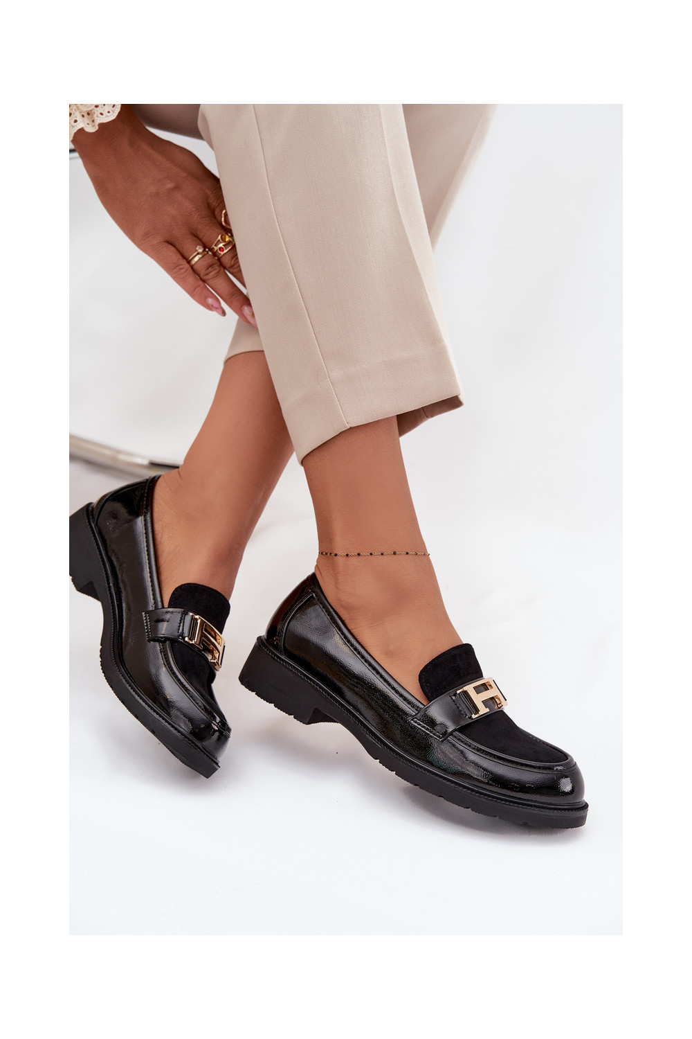 Lakuoti sieviešu mokasīni ar zelta krāsas detaļām S.Barski HY52-545 melnā krāsā