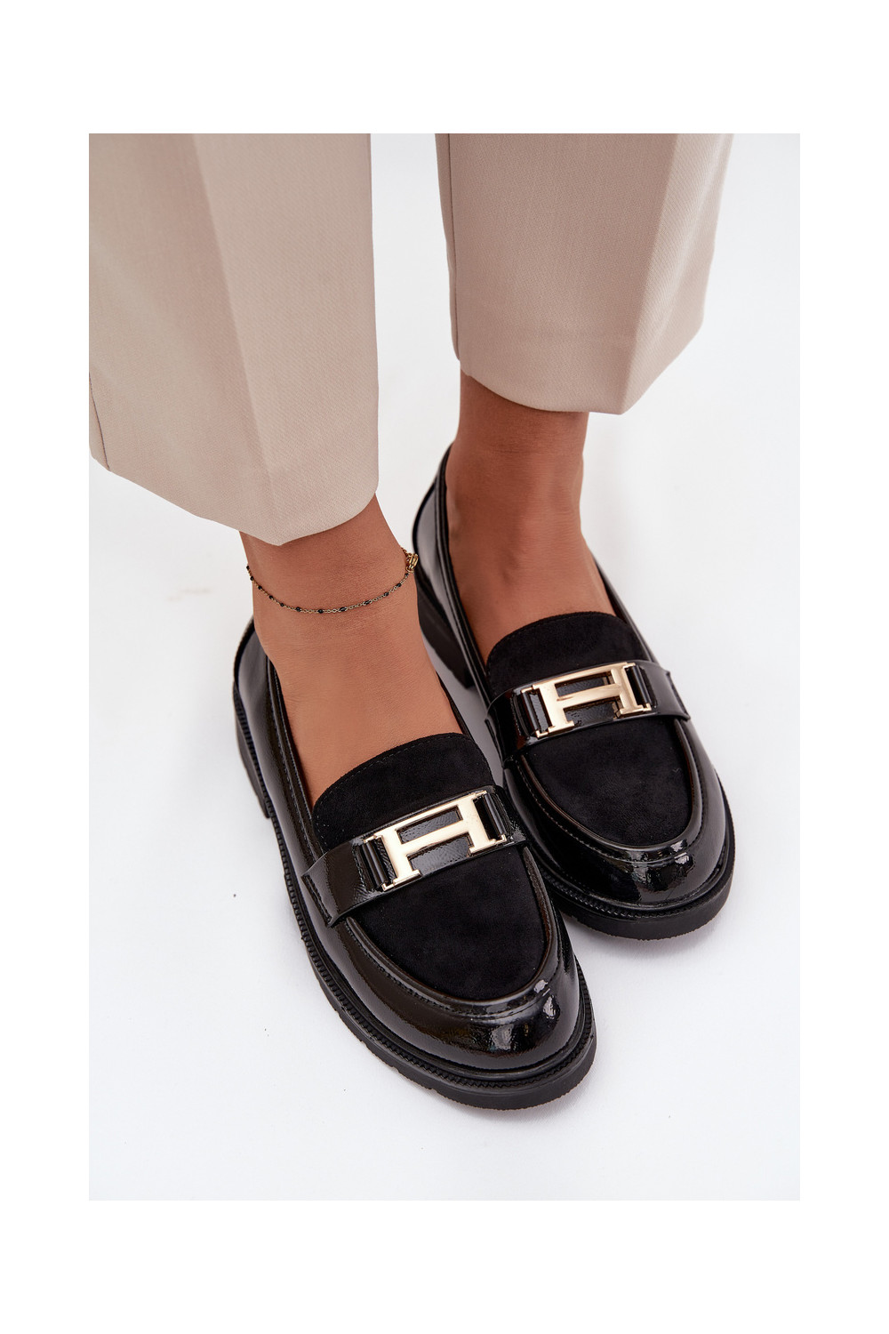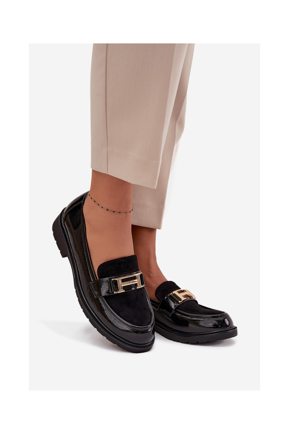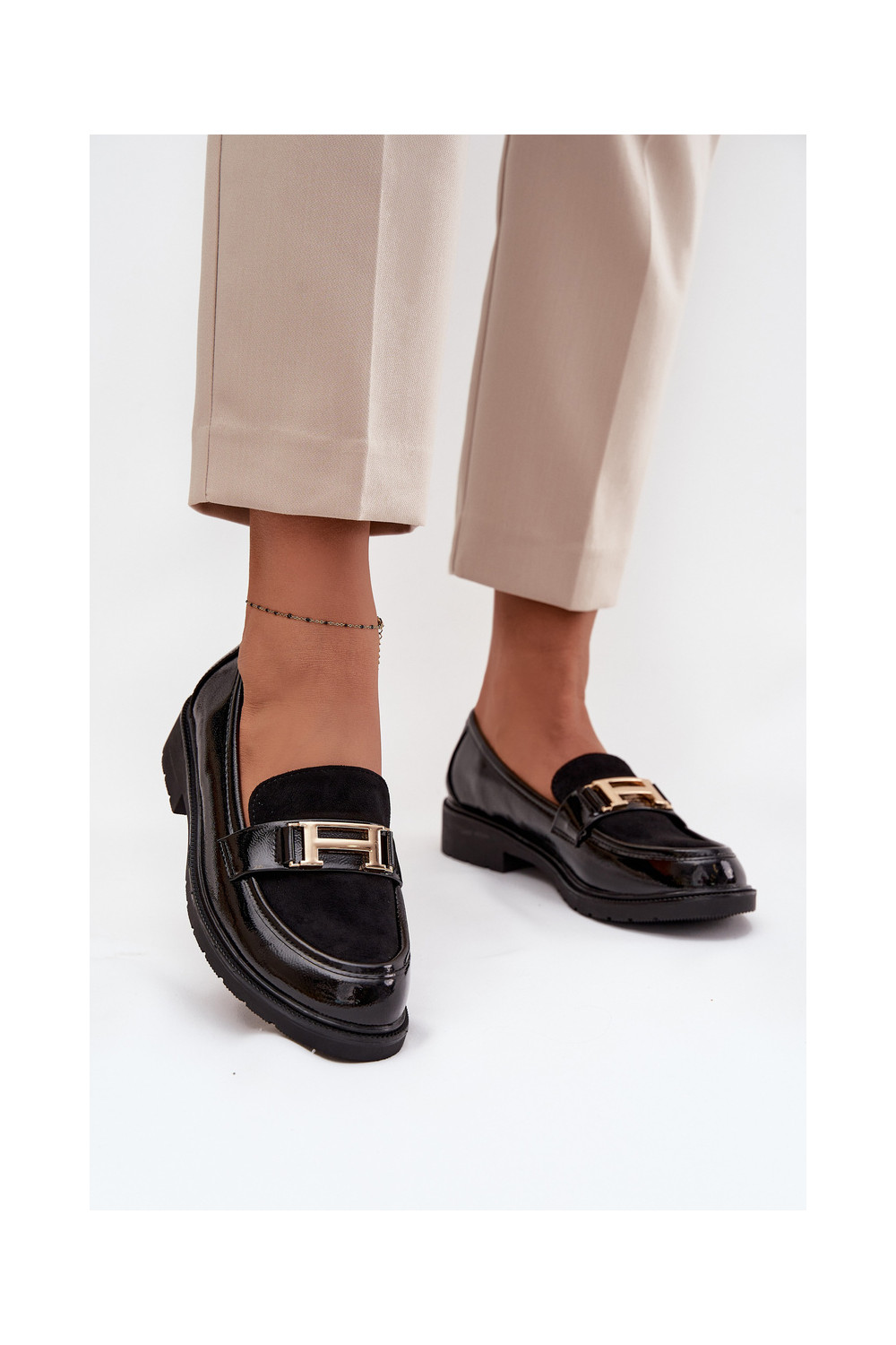 Lakuoti sieviešu mokasīni ar zelta krāsas detaļām S.Barski HY52-545 melnā krāsā