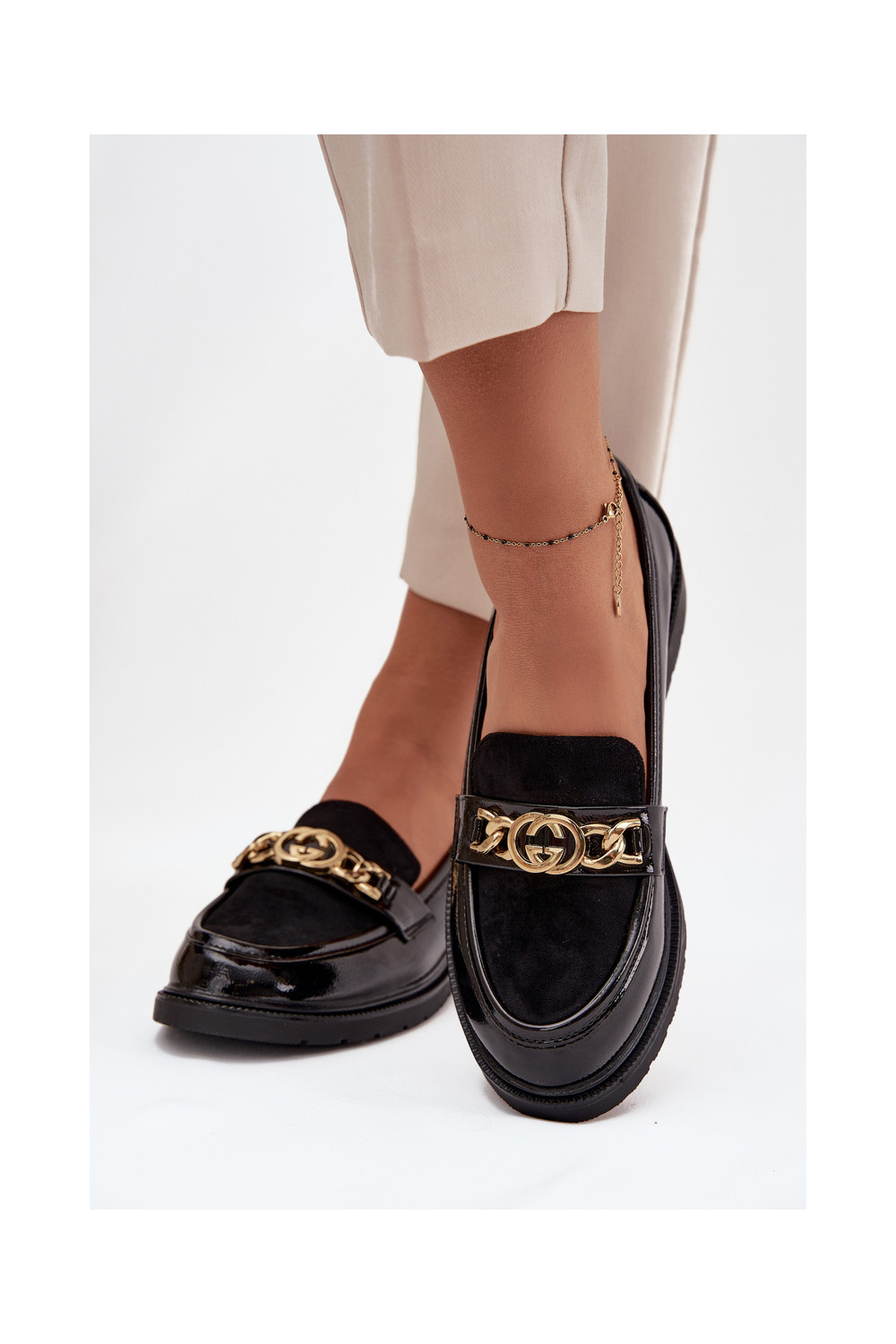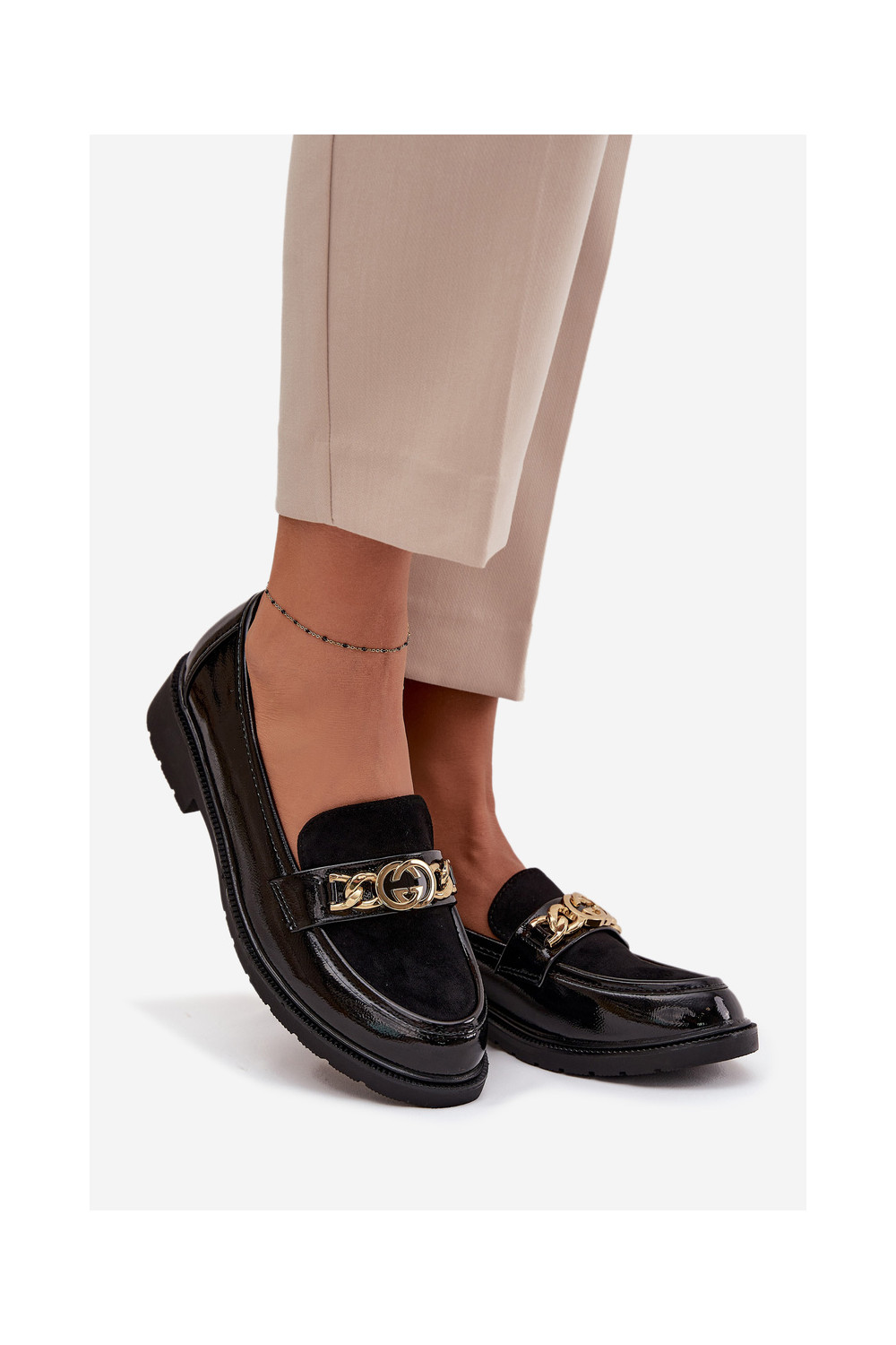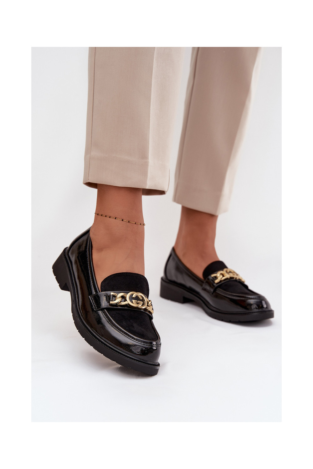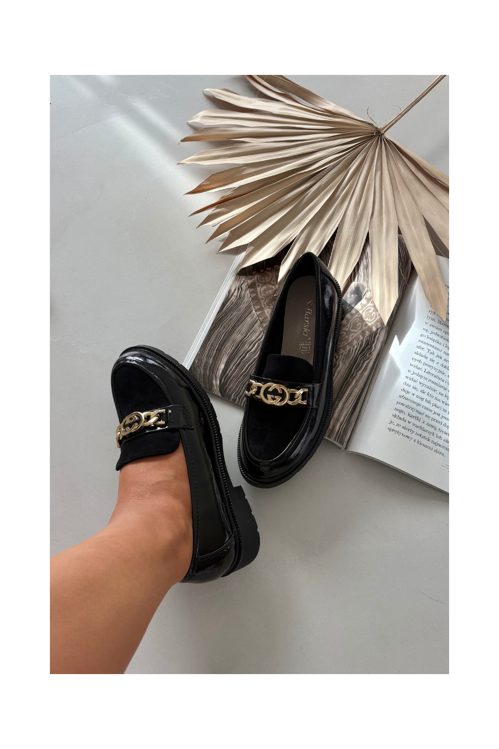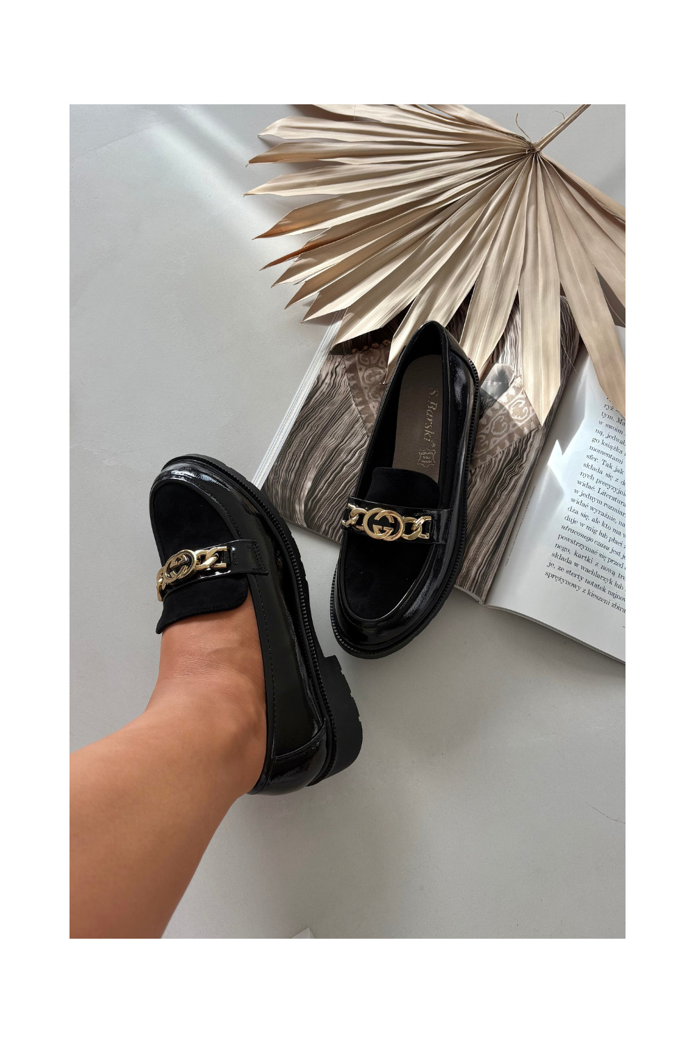 Lakuoti sieviešu mokasīni ar zelta krāsas detaļām S.Barski HY52-540 melnā krāsā