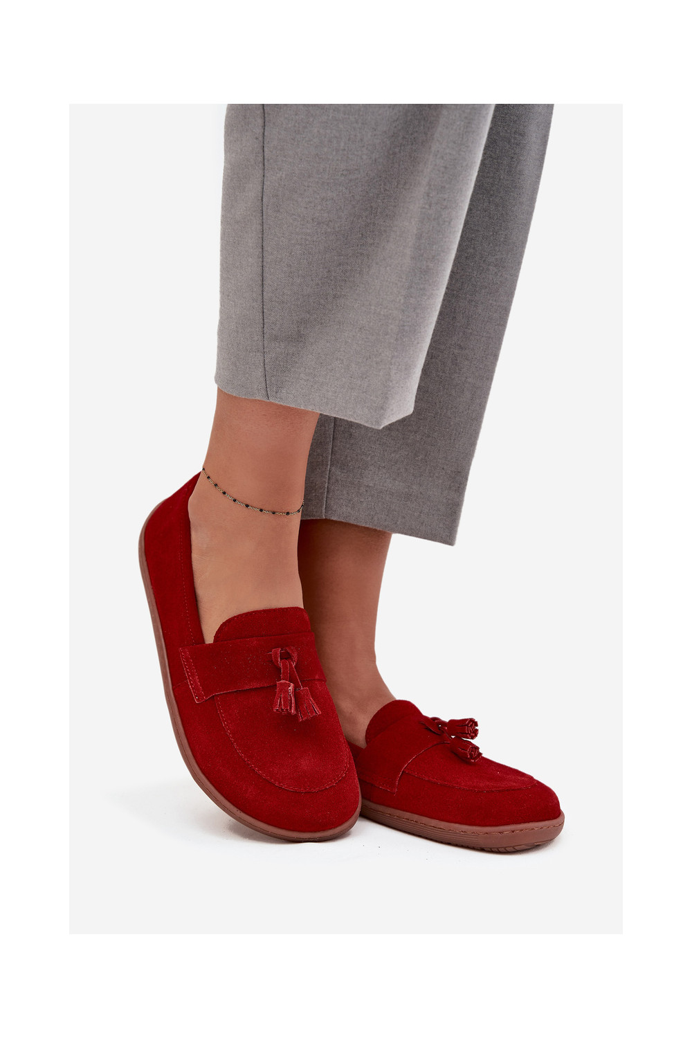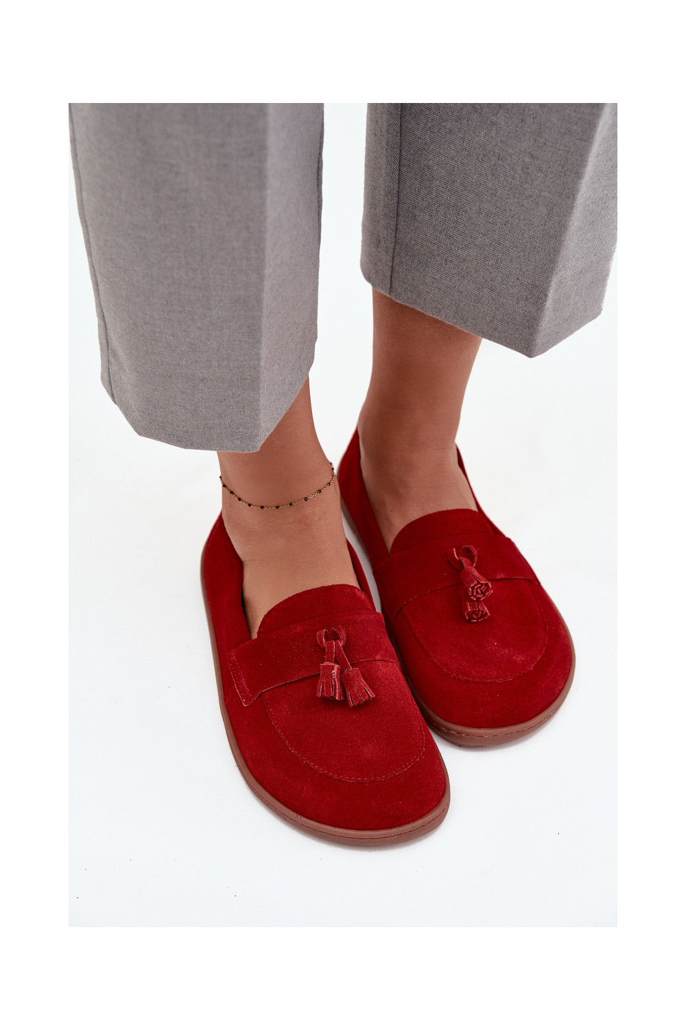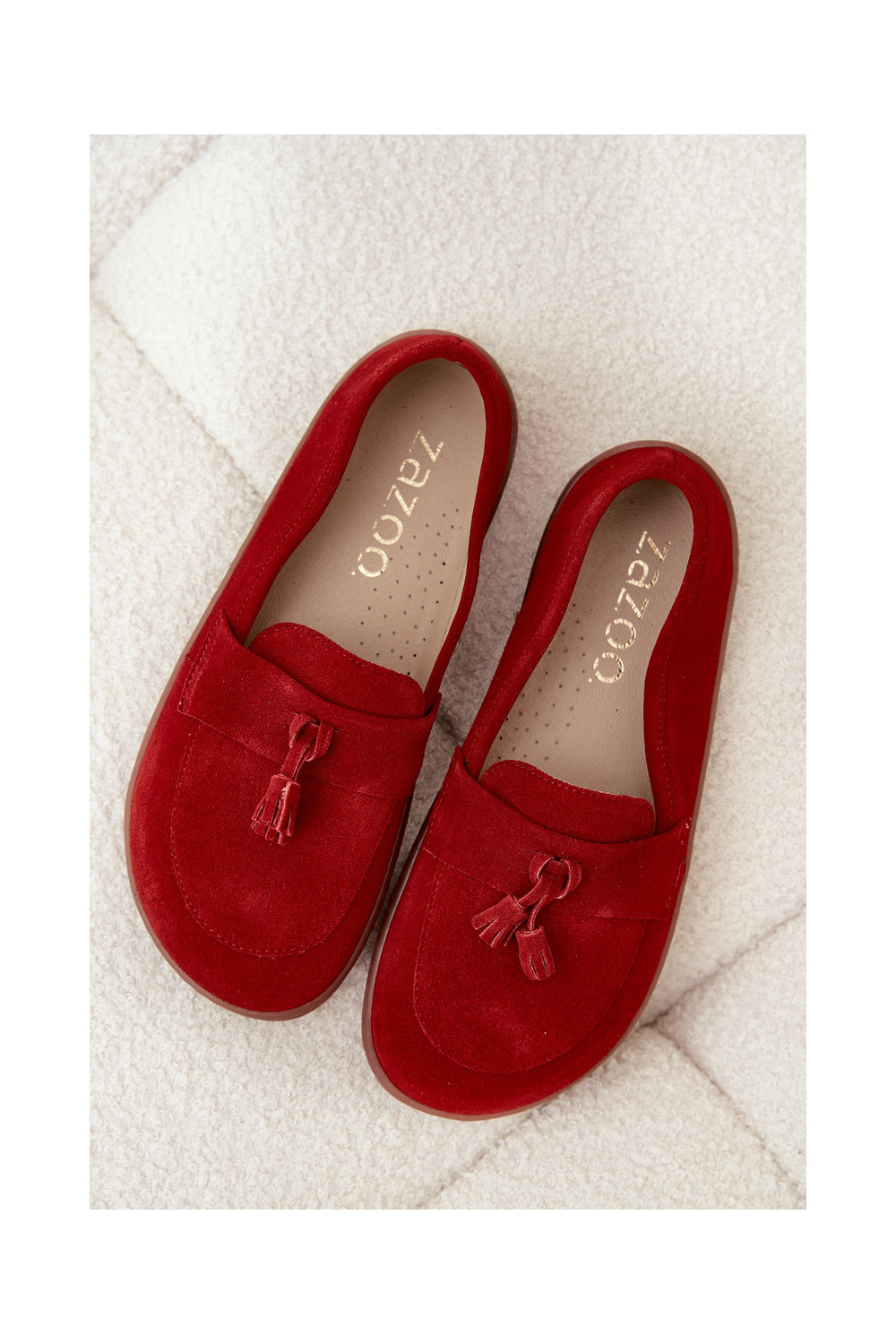 Ādas zamšas mokasīni "Barefoot" tipa Zazoo 322 sarkanas krāsā