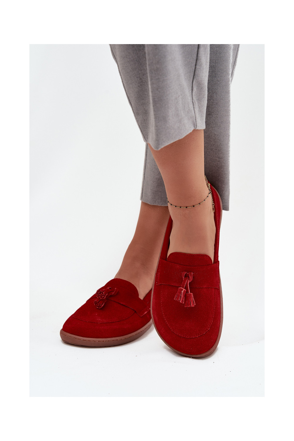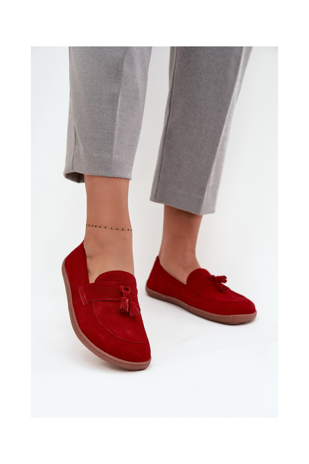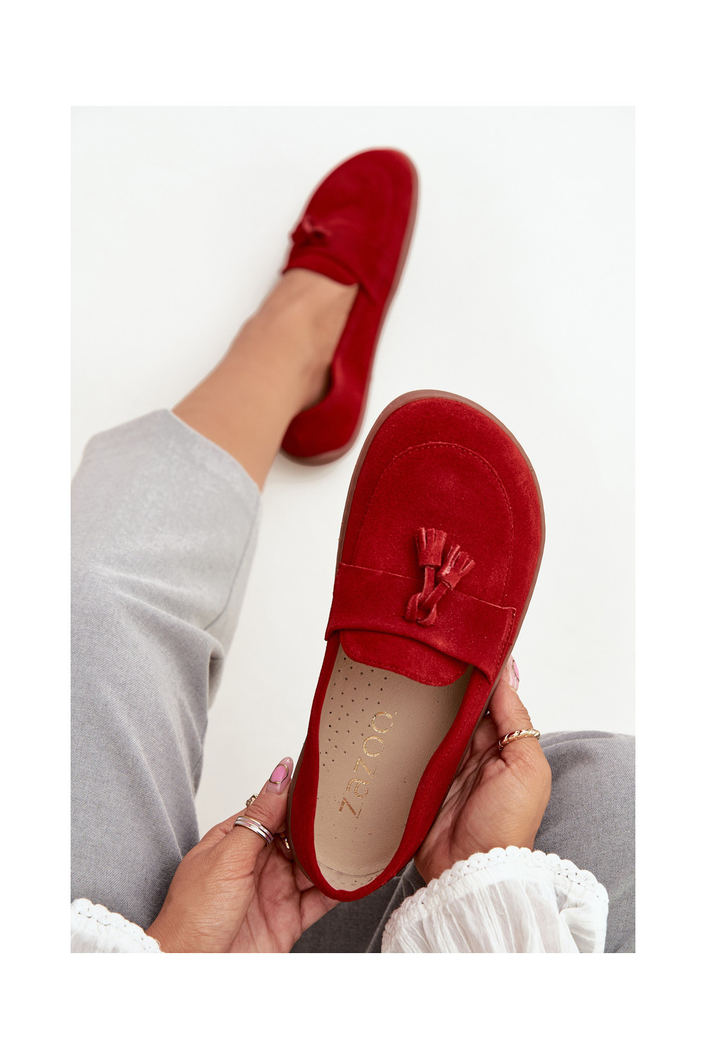 Ādas zamšas mokasīni "Barefoot" tipa Zazoo 322 sarkanas krāsā