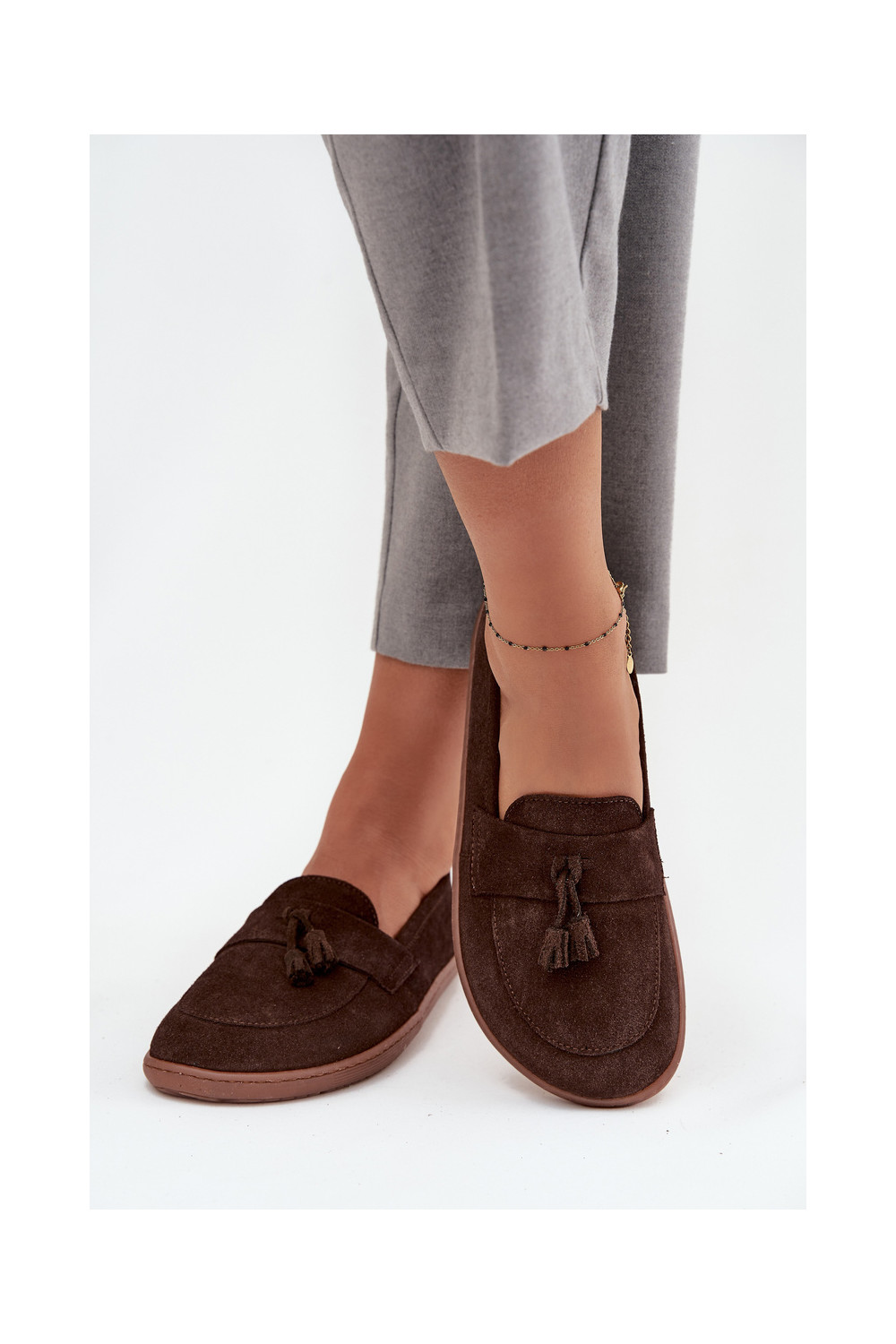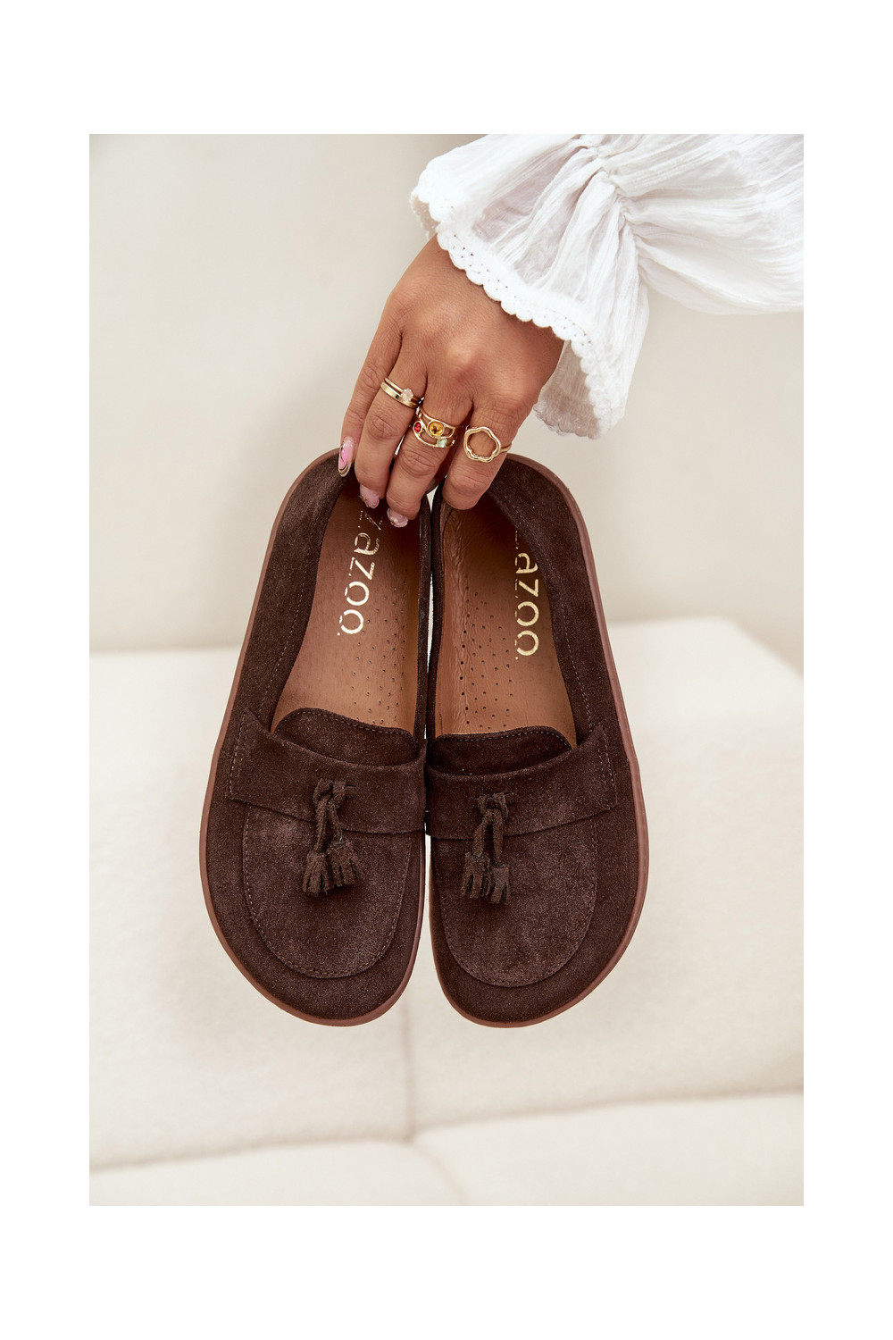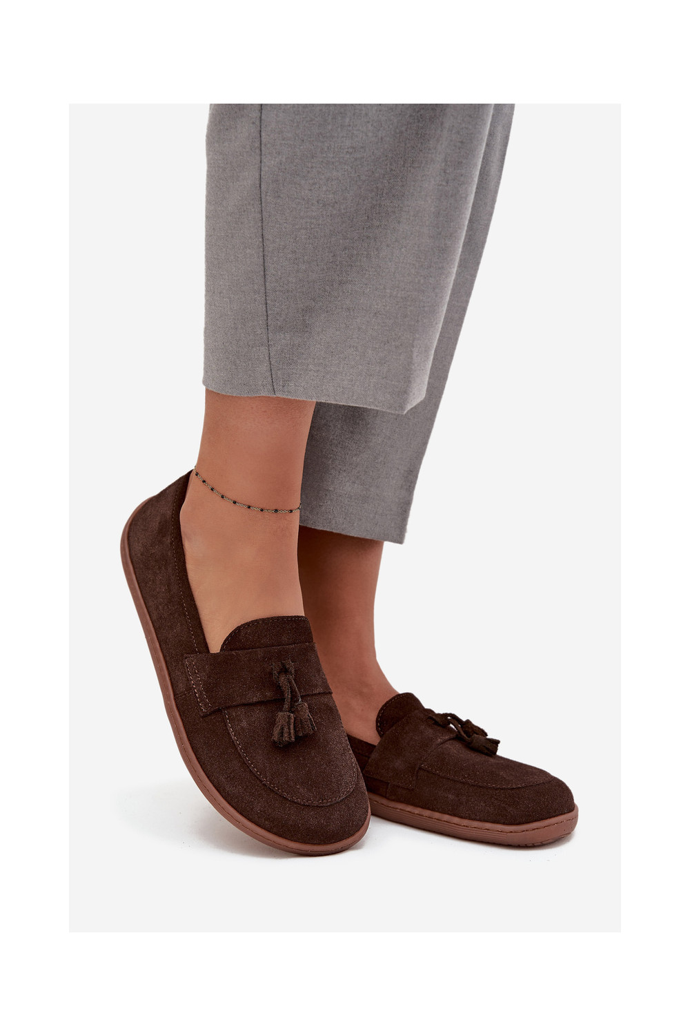 Ādas zamšas mokasīni "Barefoot" tipa Zazoo 322 šokolādes krāsā