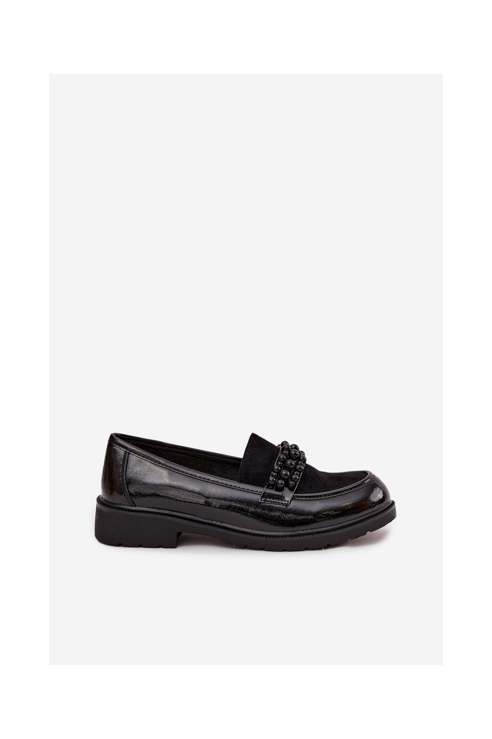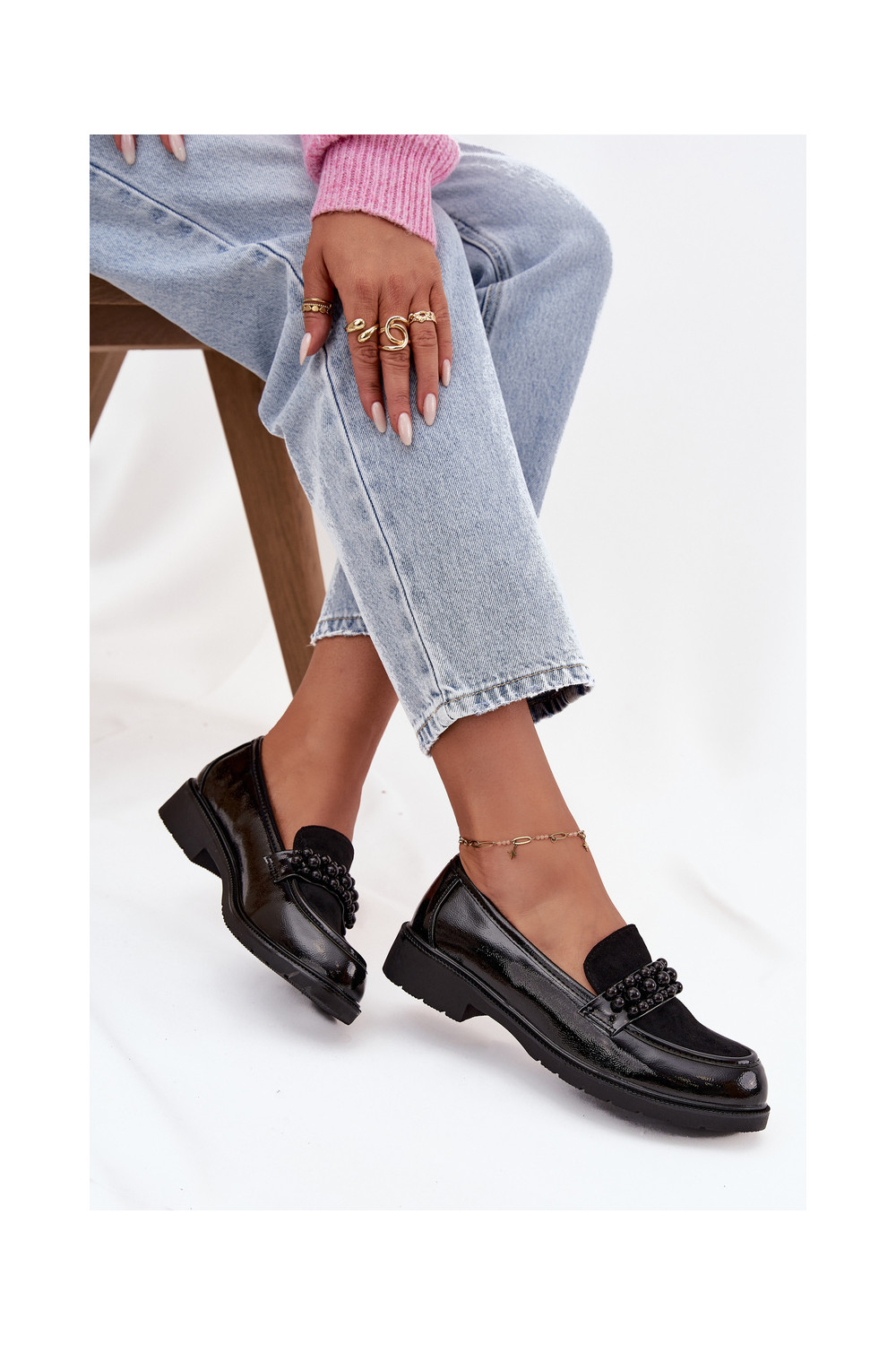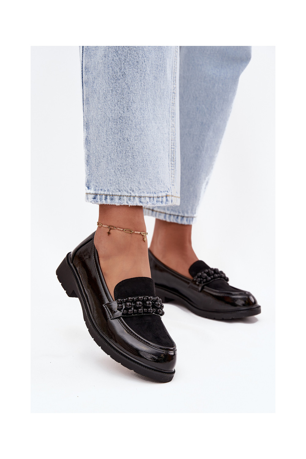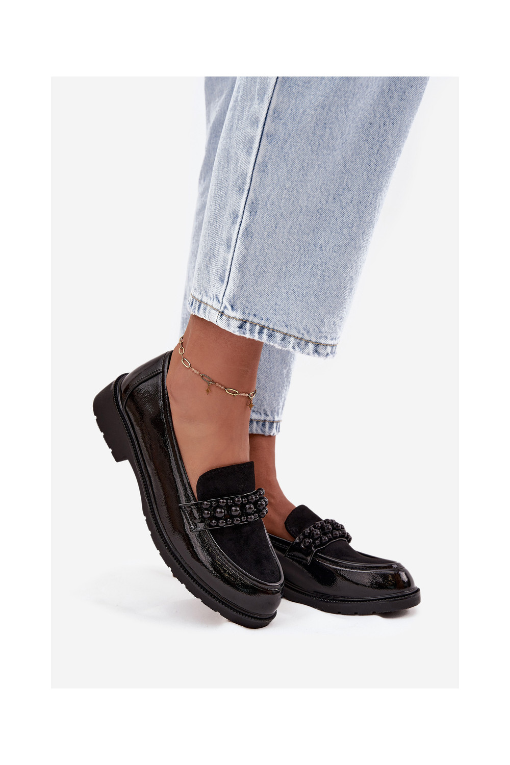 Sieviešu lakoti mokasīni ar pērlītēm S.Barski HY52-541 melnā krāsā