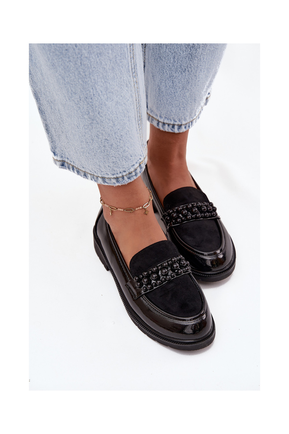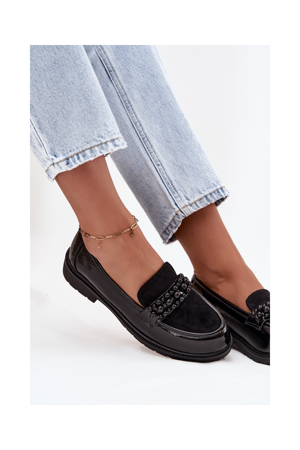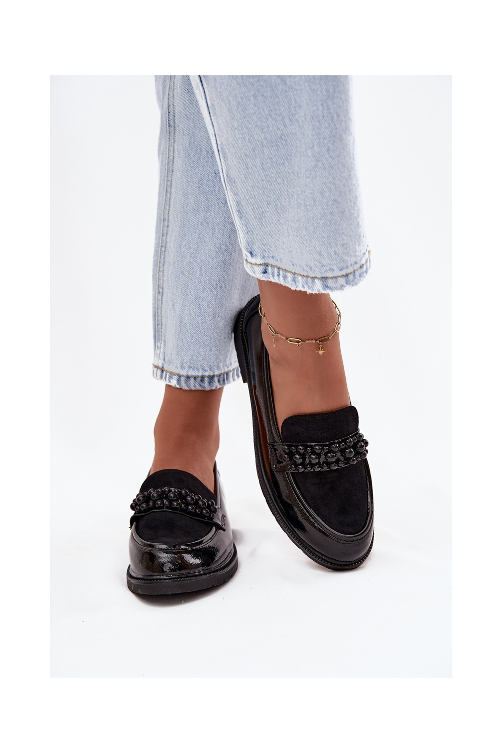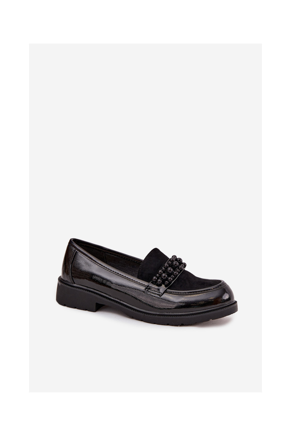 Sieviešu lakoti mokasīni ar pērlītēm S.Barski HY52-541 melnā krāsā