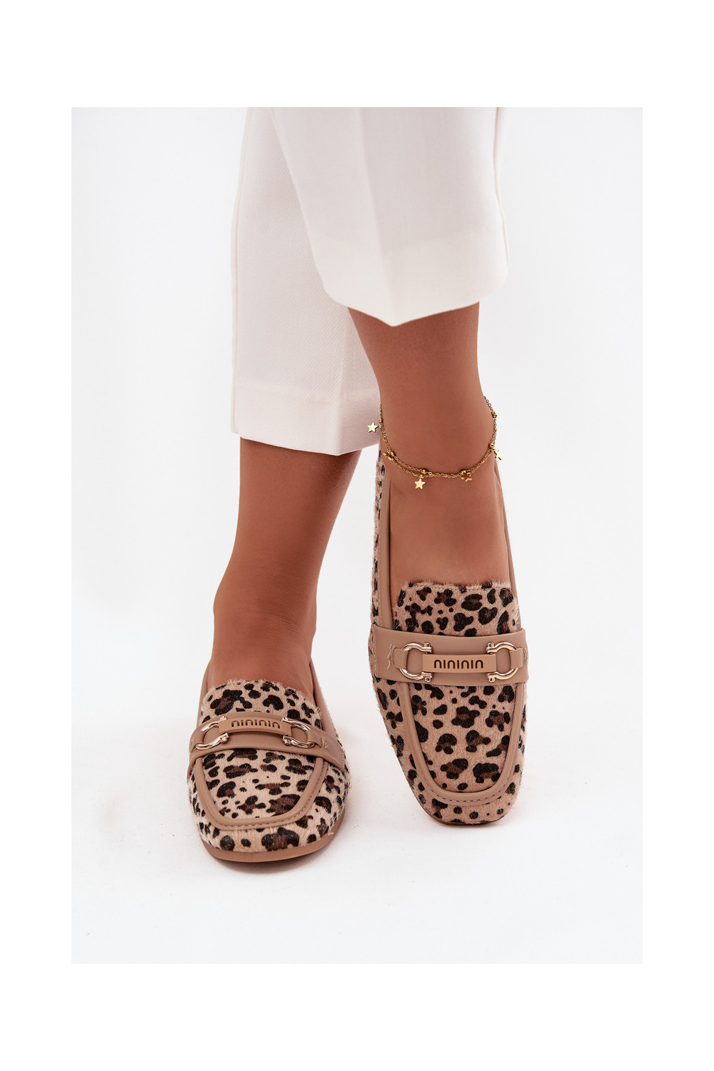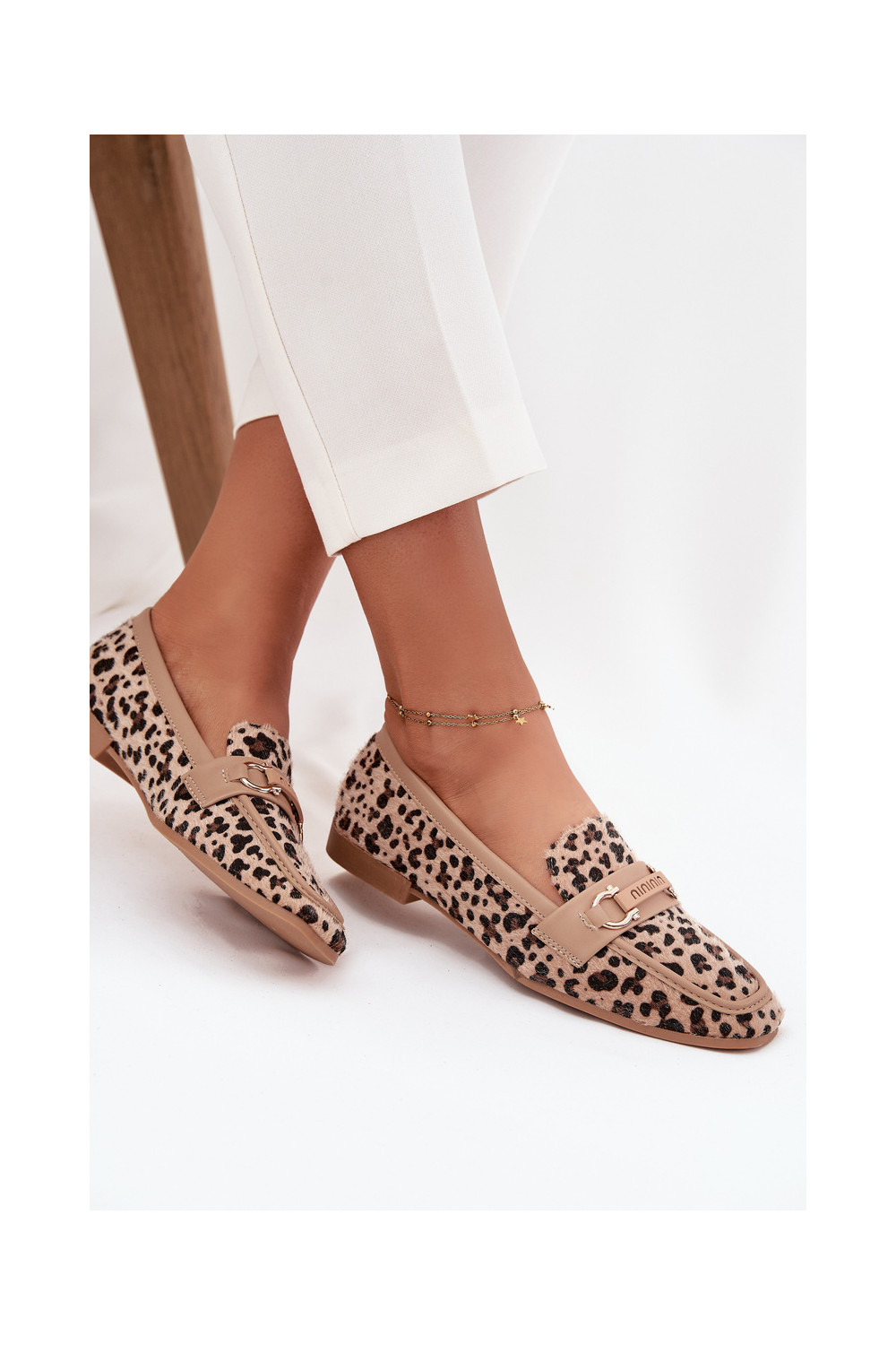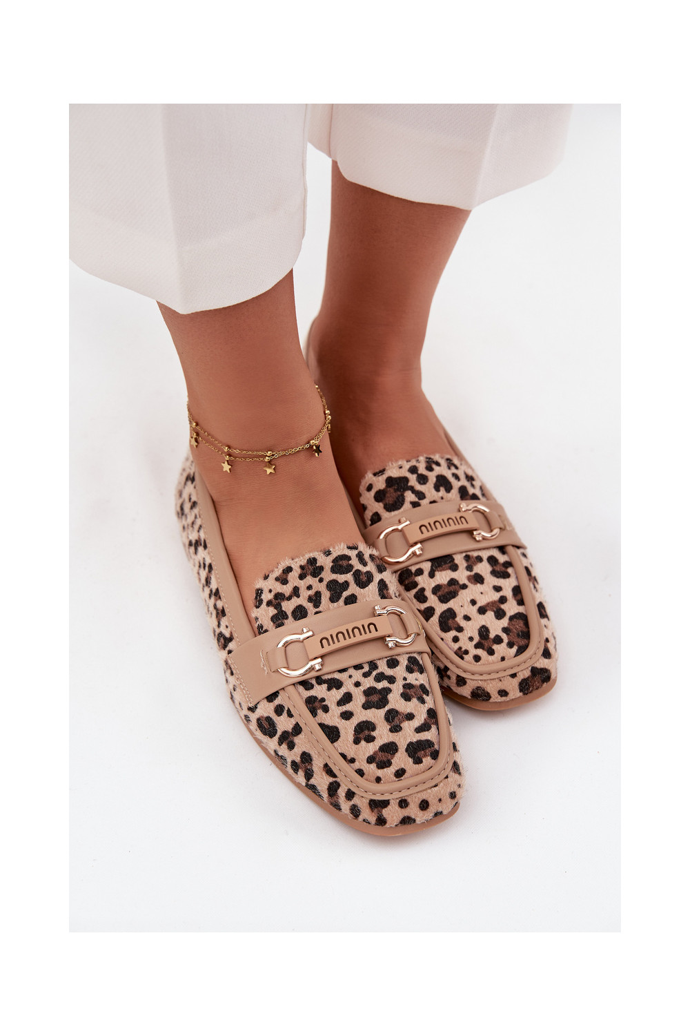 Mokasīni sievietēm ar izsmalcinātiem elementiem un leoparda kažokādas rakstiem, smilšu krāsā Evelora