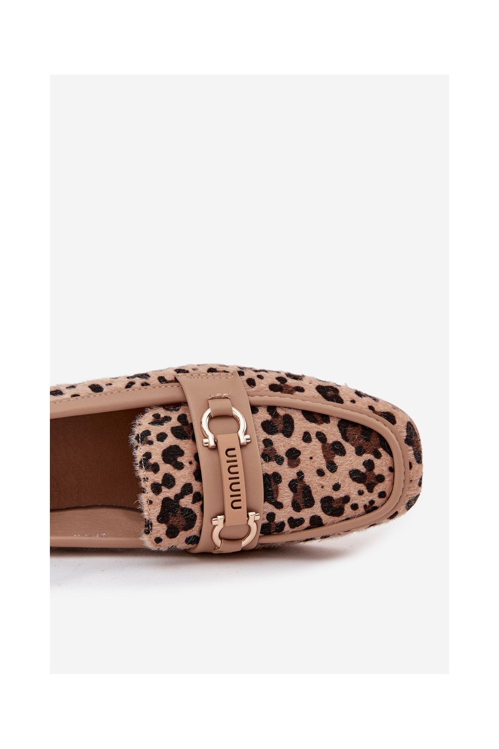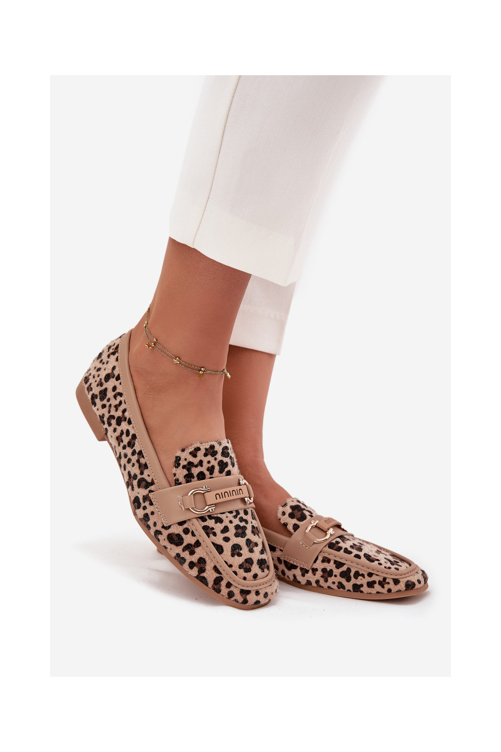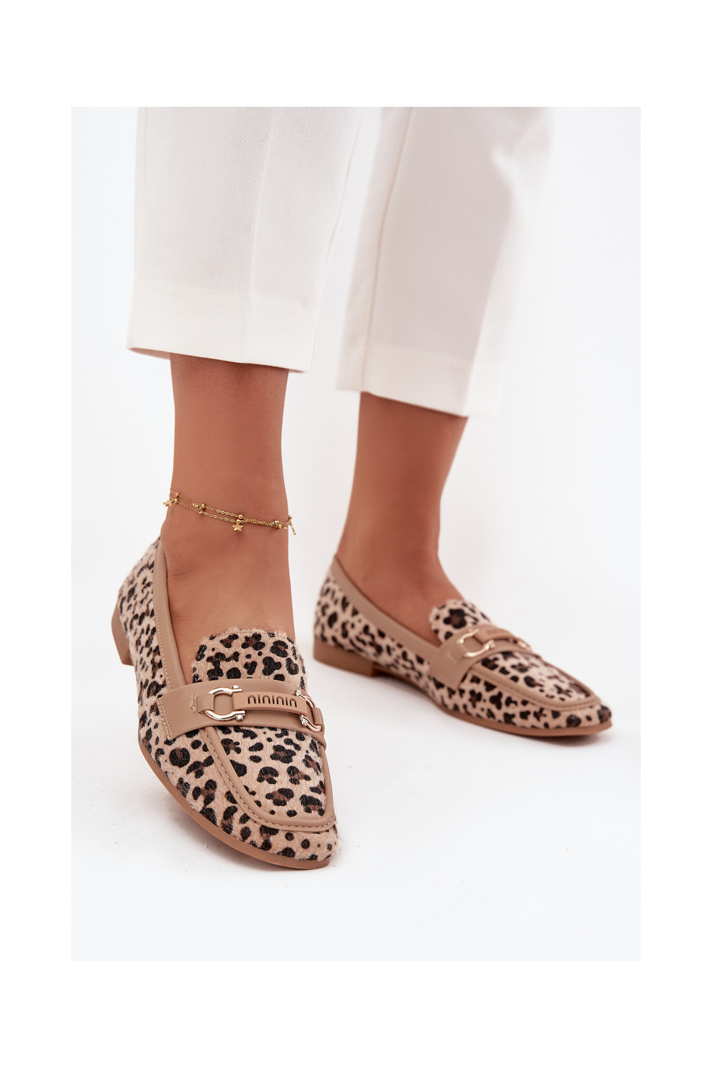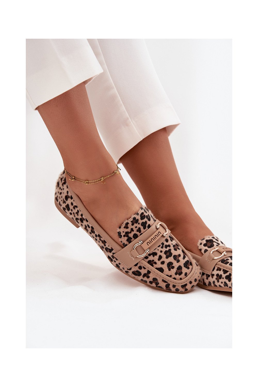 Mokasīni sievietēm ar izsmalcinātiem elementiem un leoparda kažokādas rakstiem, smilšu krāsā Evelora