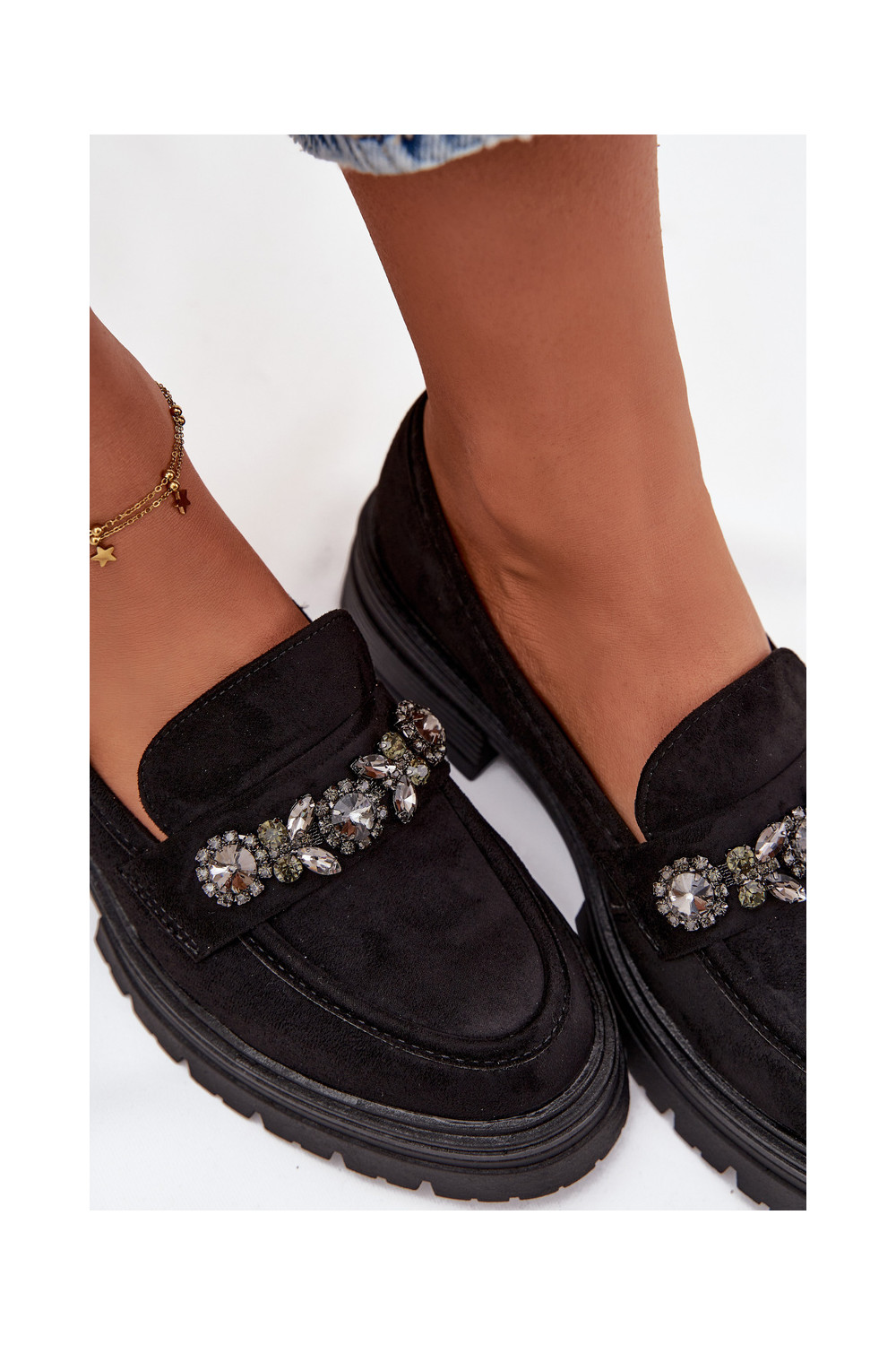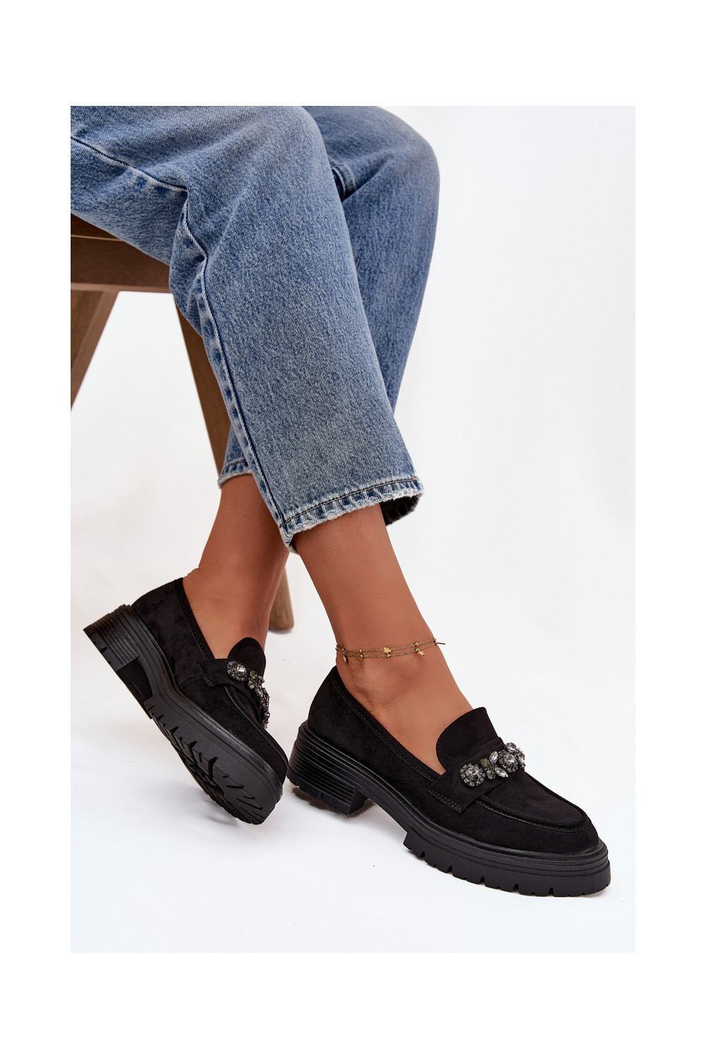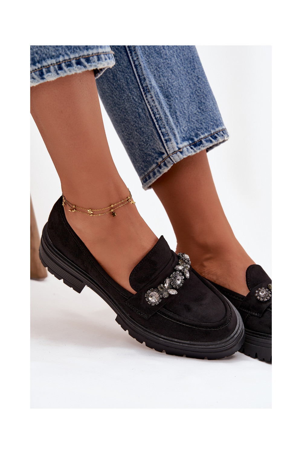 sieviešu mokasīni ar mirdzošiem spīdumiem Eko zamšādaoIne melnas krāsas Lavisse