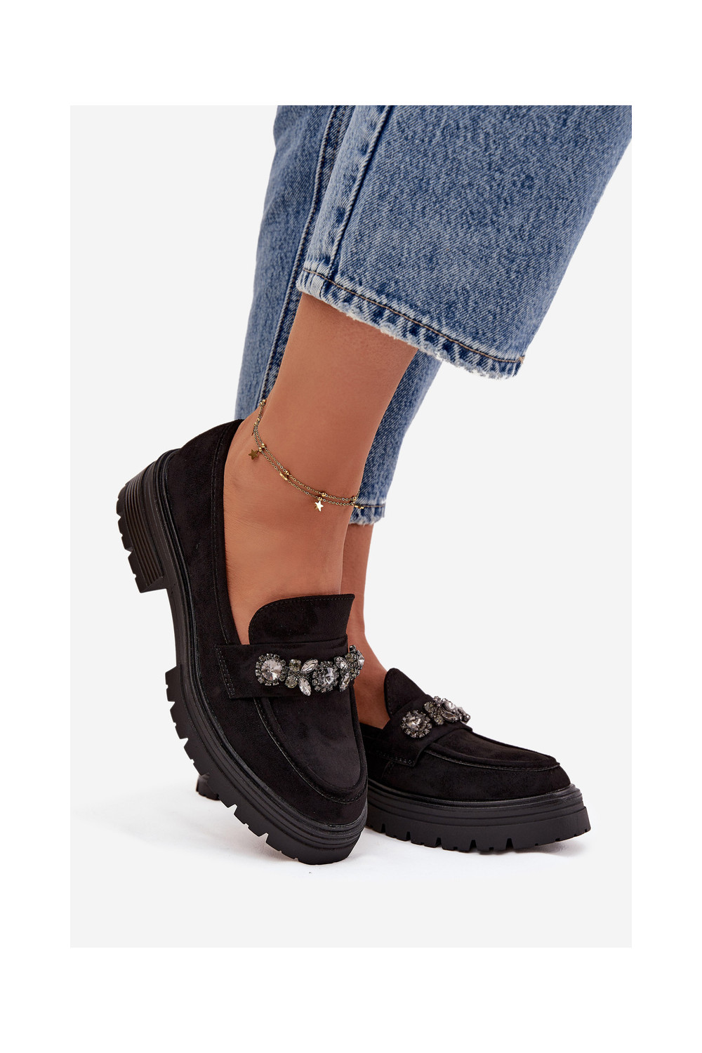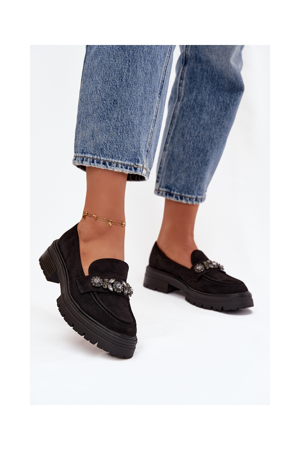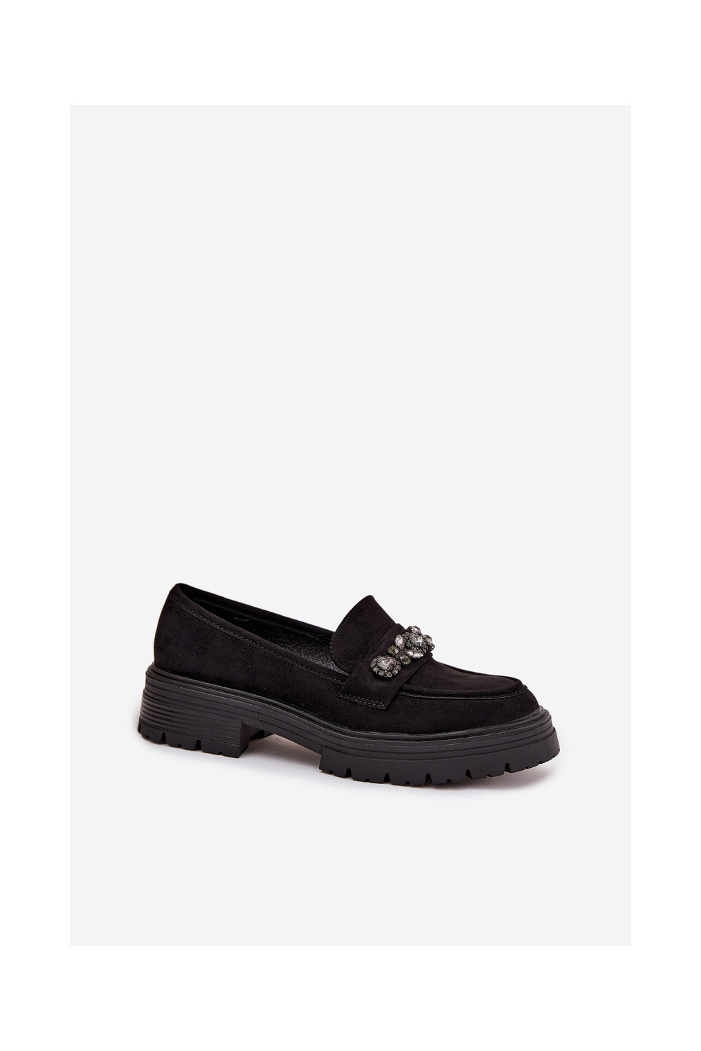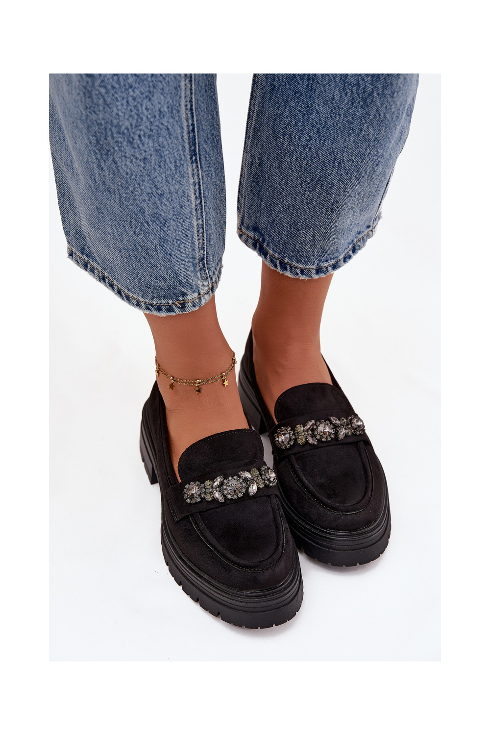sieviešu mokasīni ar mirdzošiem spīdumiem Eko zamšādaoIne melnas krāsas Lavisse