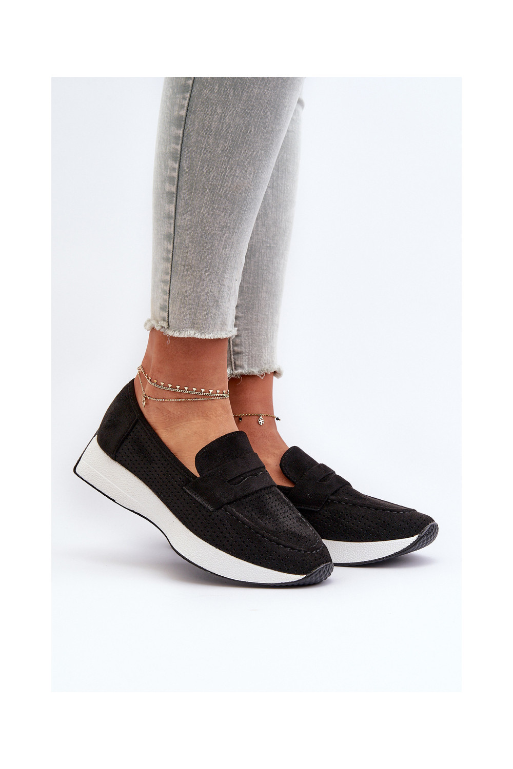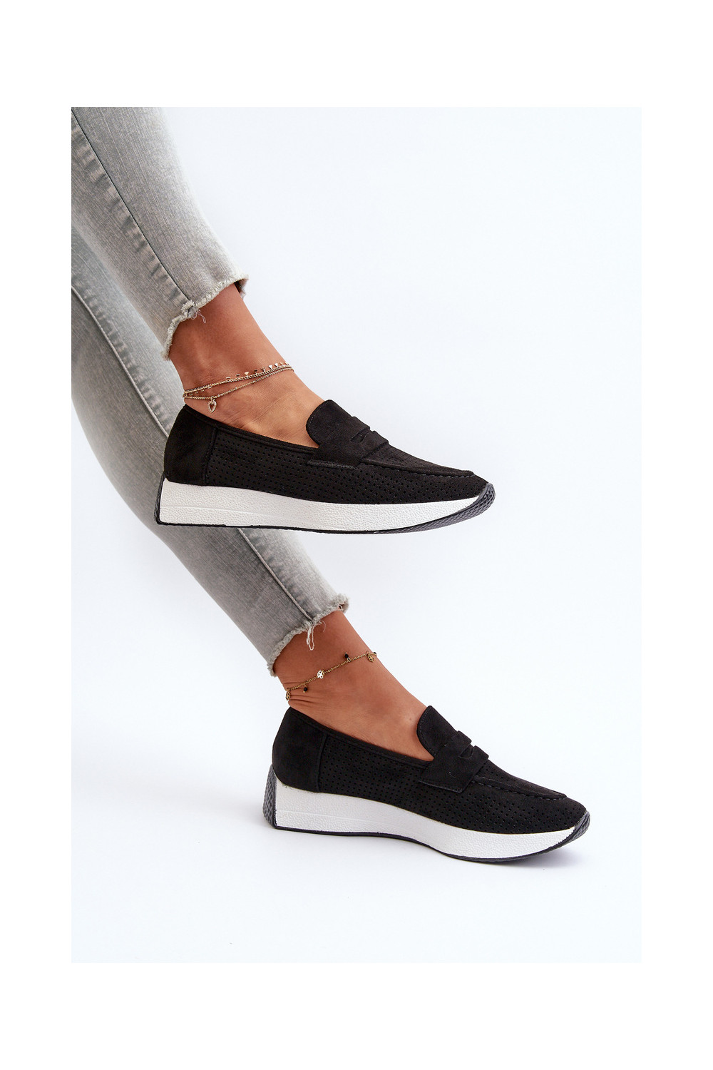 Sieviešu mokasīni uz platformas no mākslīgā zamšā melnā krāsā Inesqua